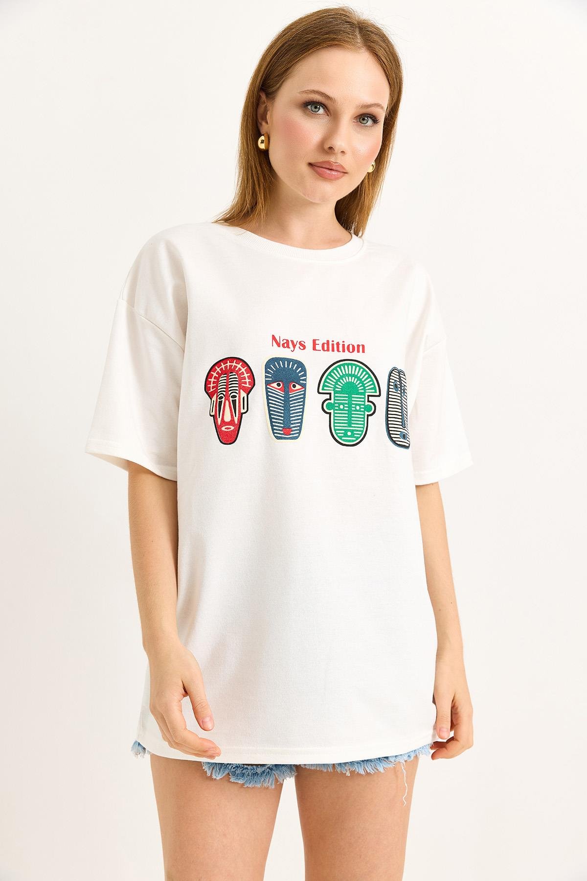 Baskılı Oversize Tshirt Beyaz (500190TSHXBYZ)