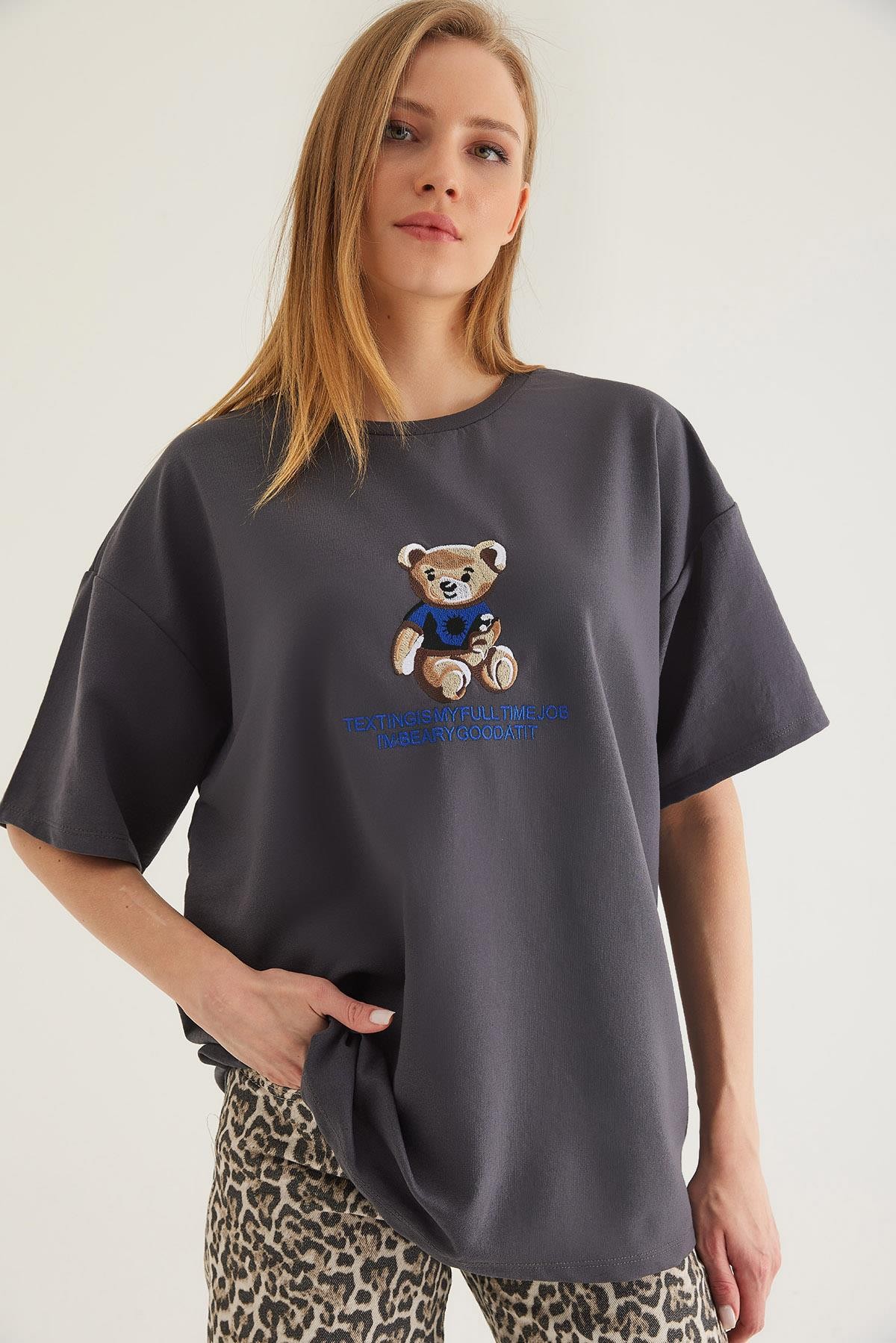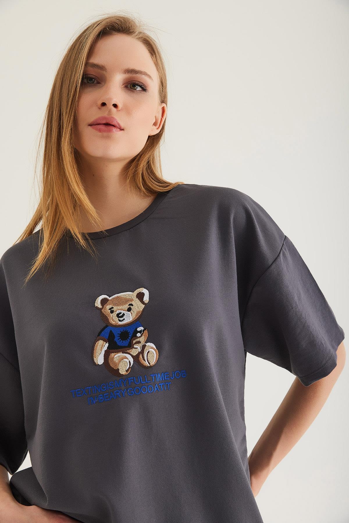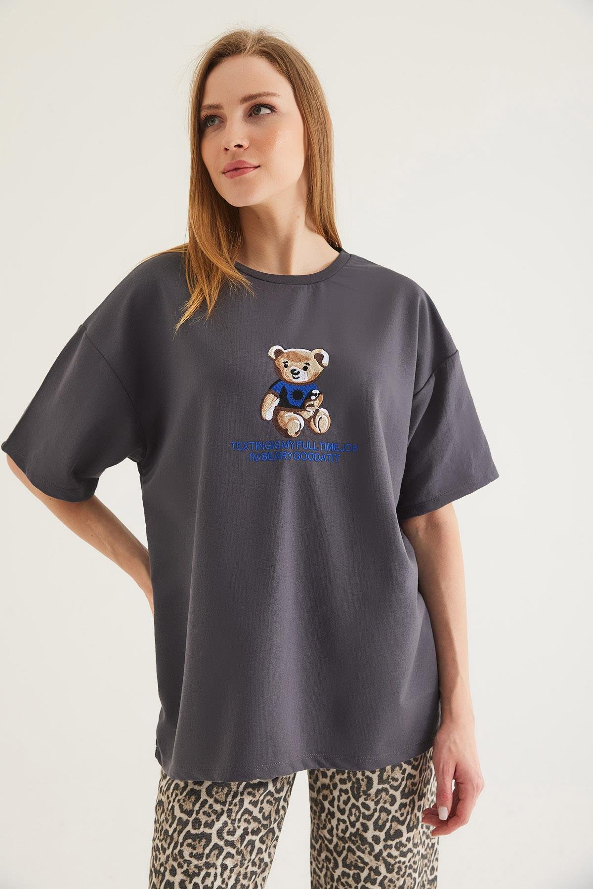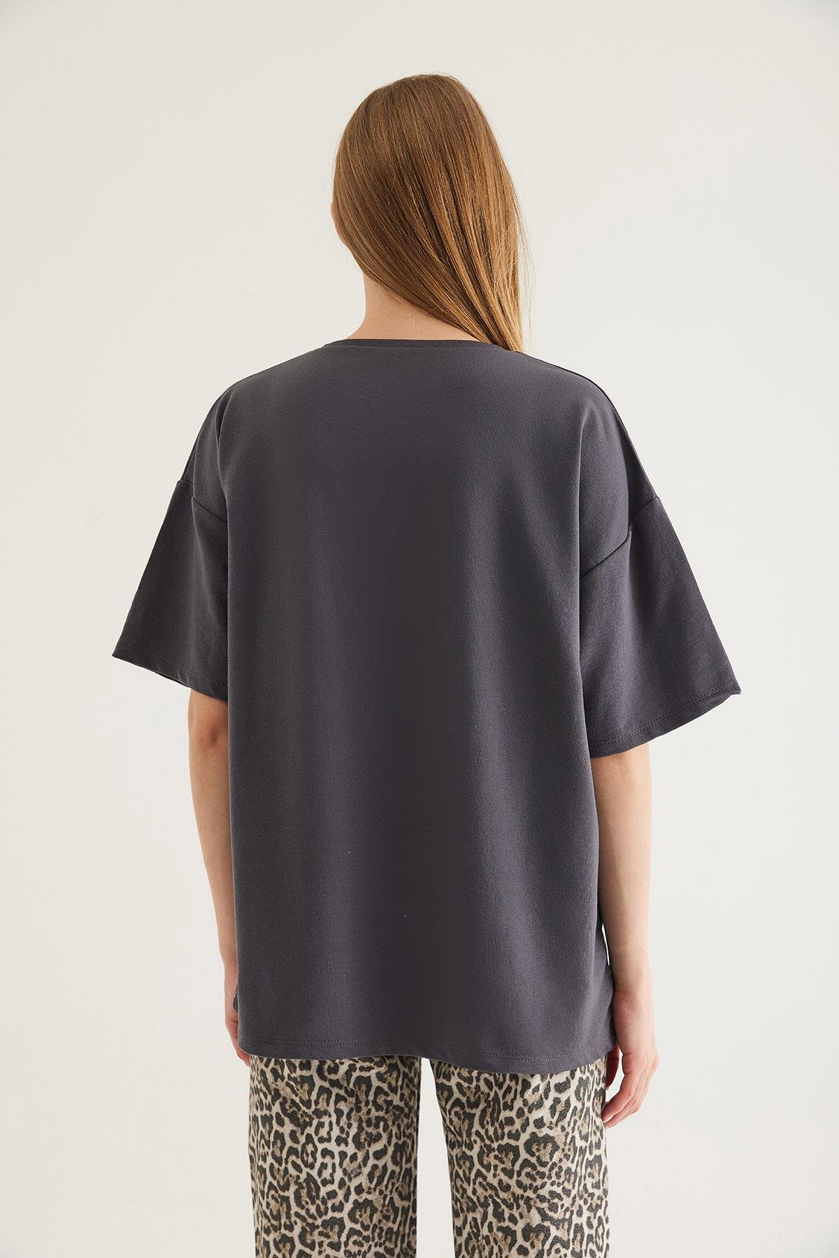 Baskılı Oversize Tshirt Füme (250458TSHXFME)