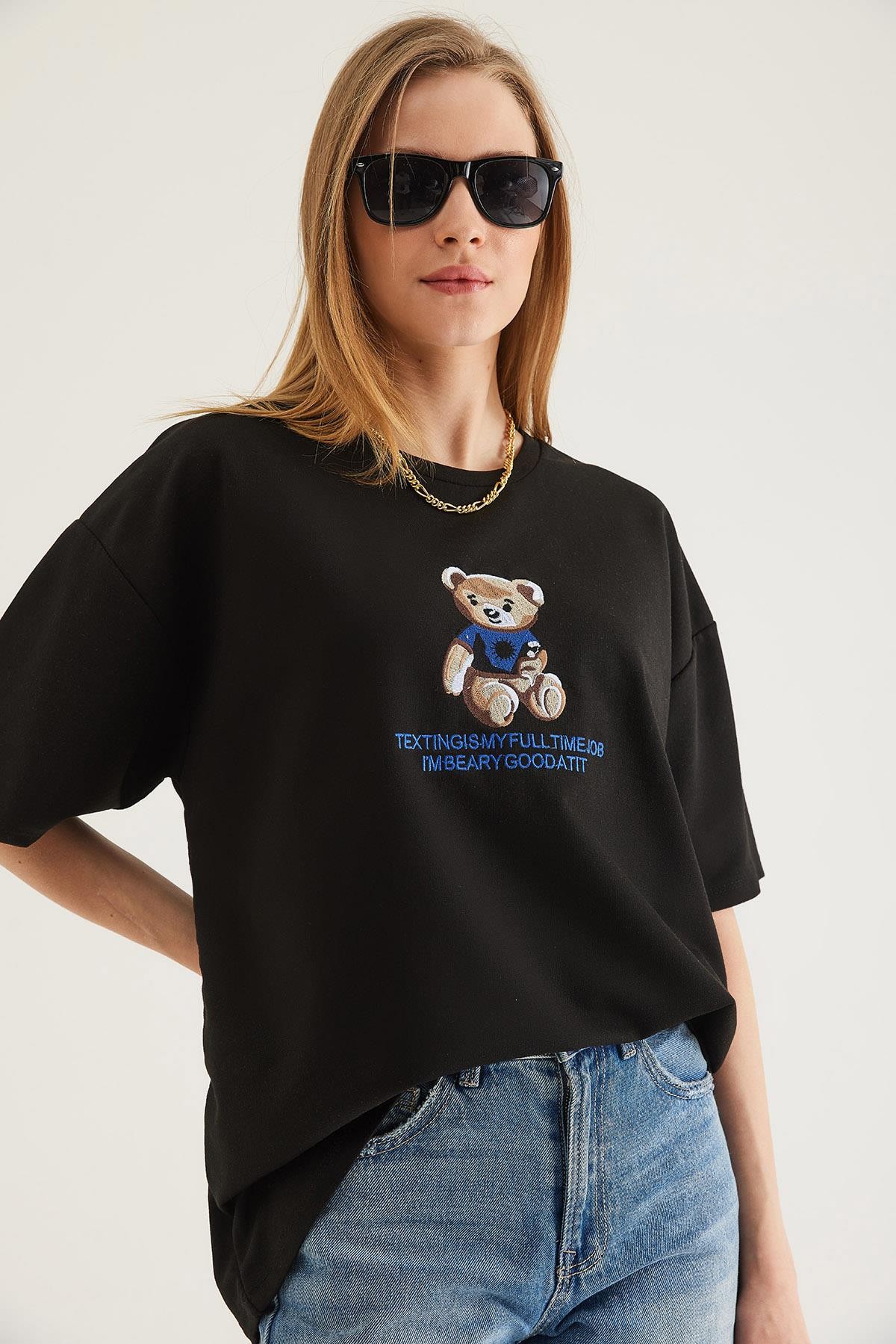 Baskılı Oversize Tshirt Siyah (250458TSHXSYH)