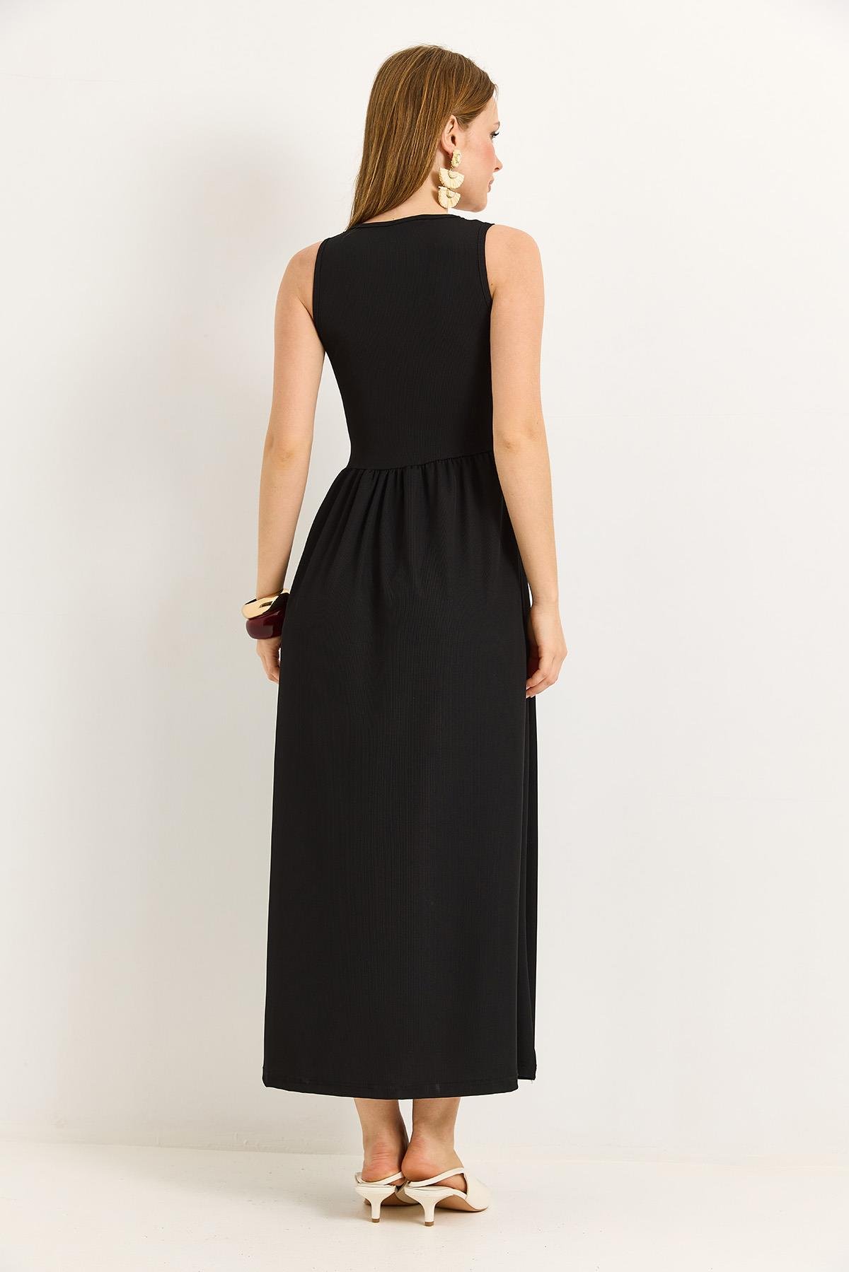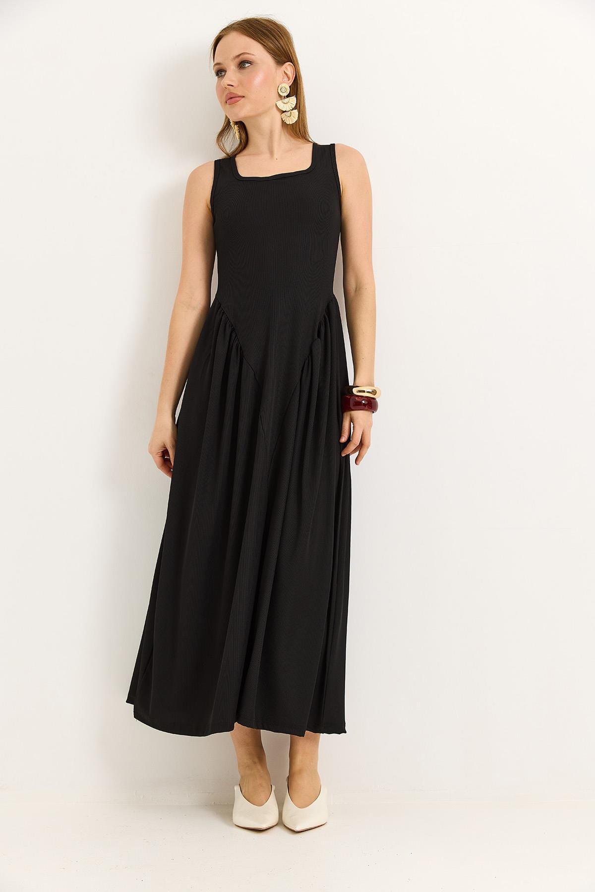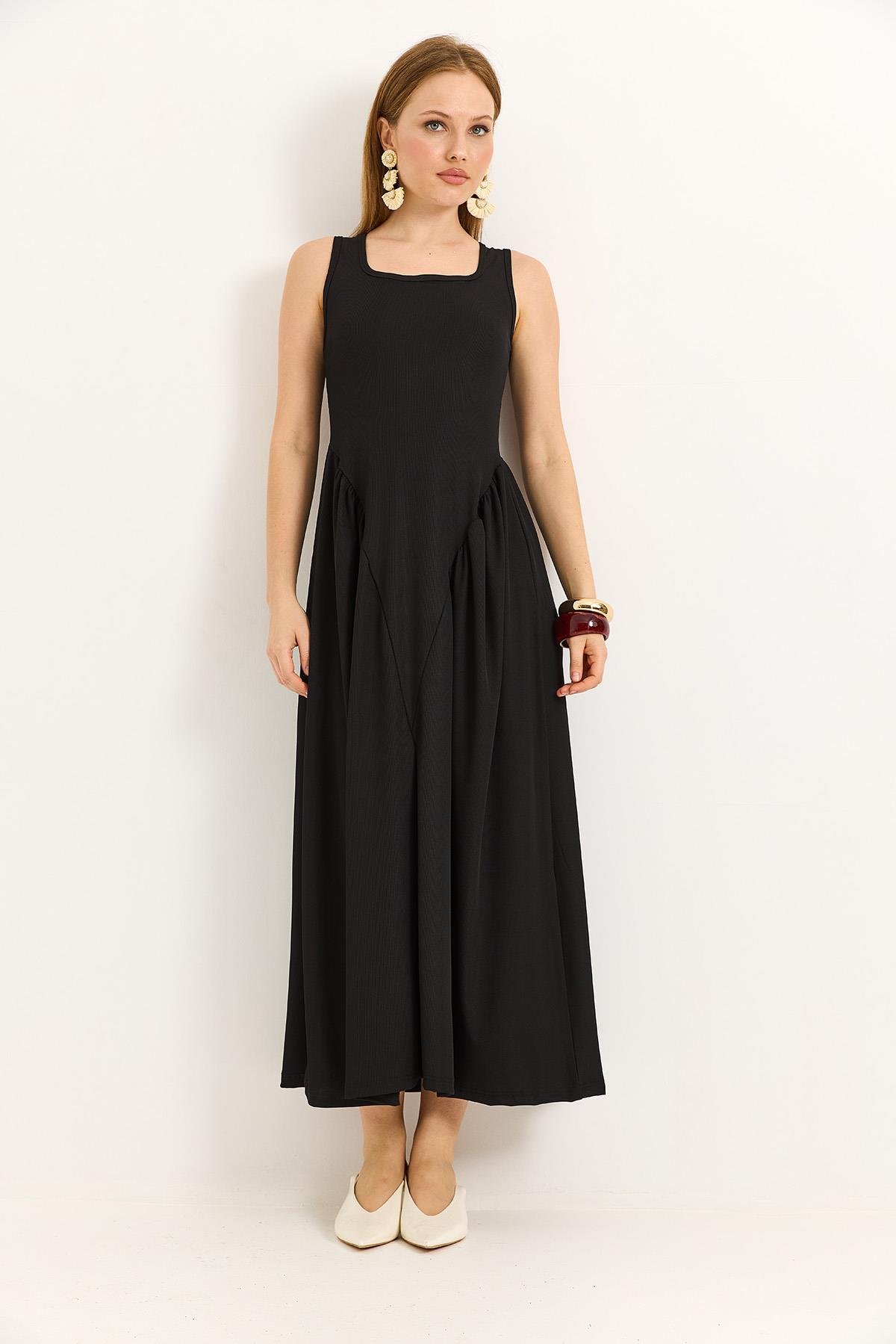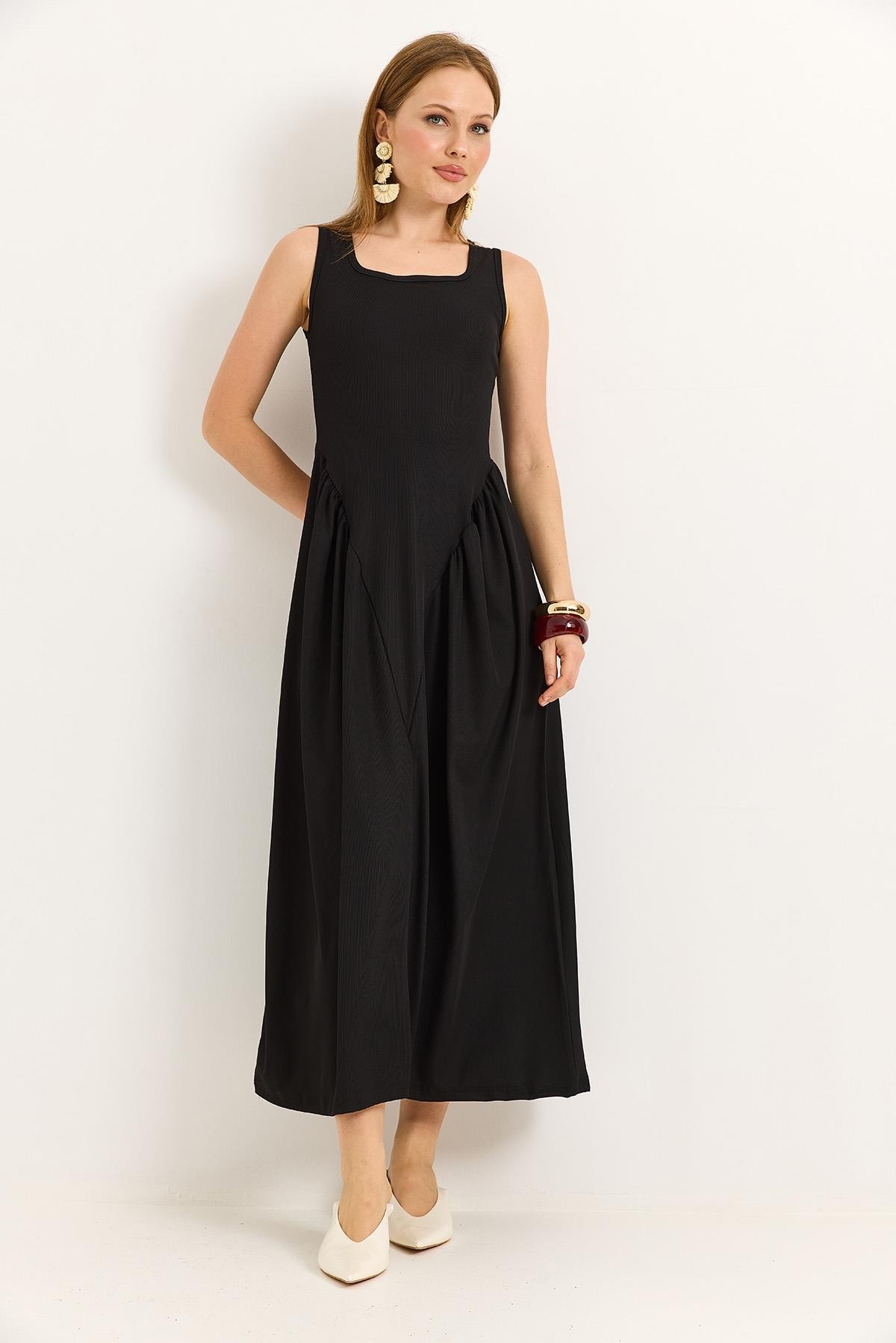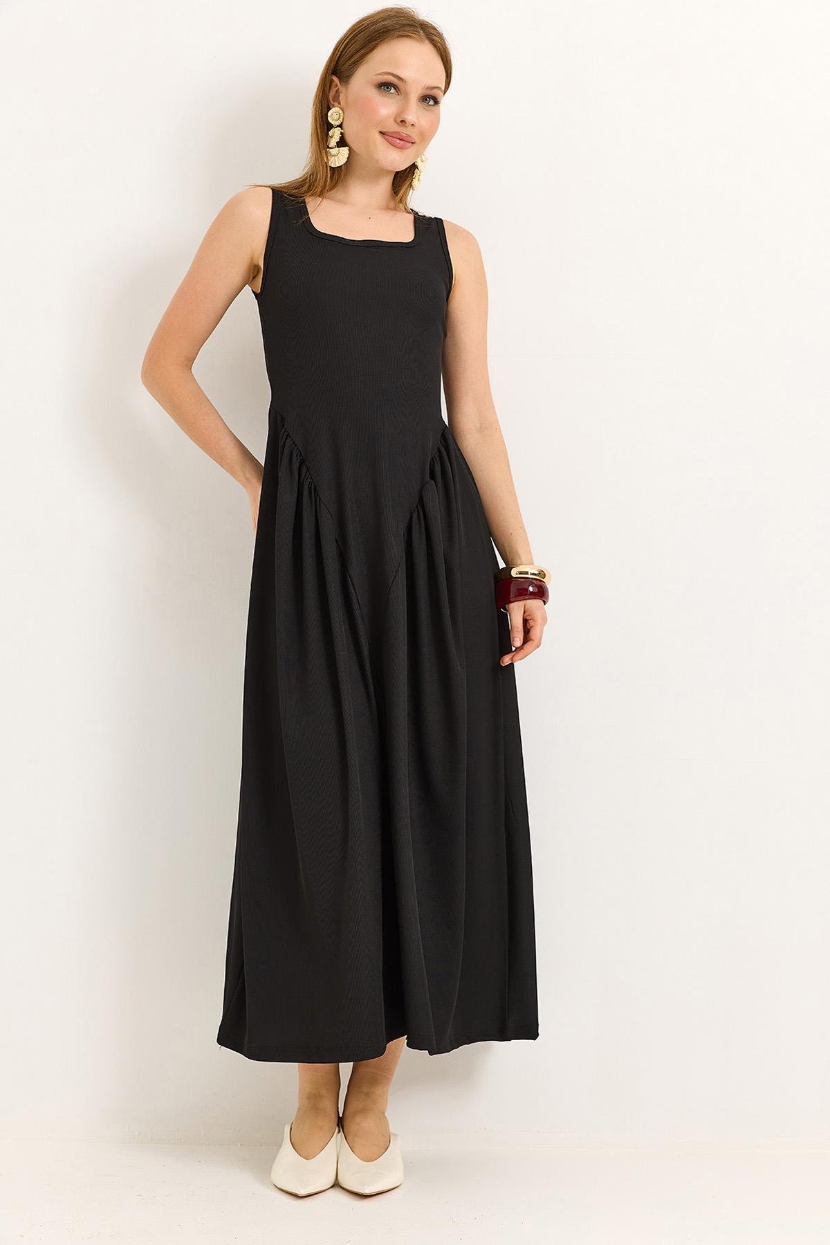 Bel Büzgülü Kalın Askılı Elbise Siyah (252020ELBXSYH)