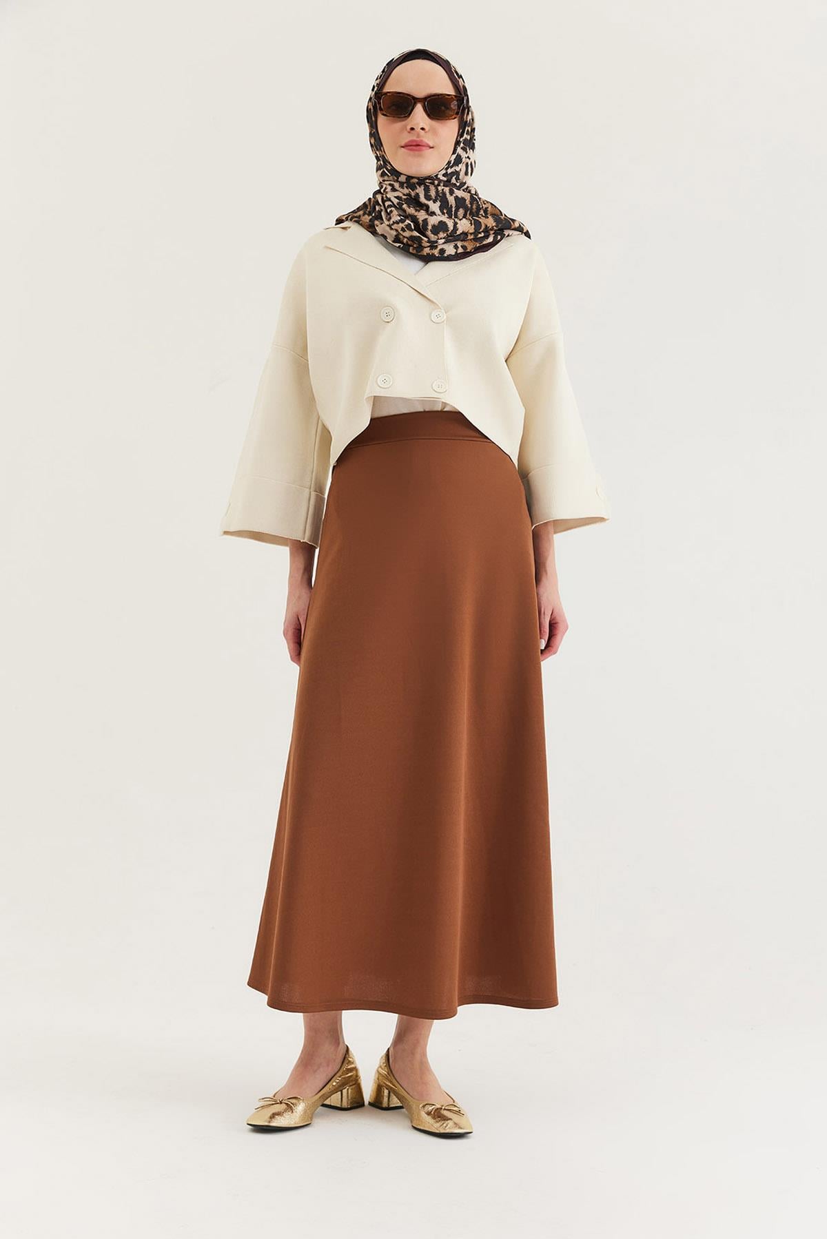 Beli Lastikli Kadın Kloş Etek Taba (250416ETKXTBA)