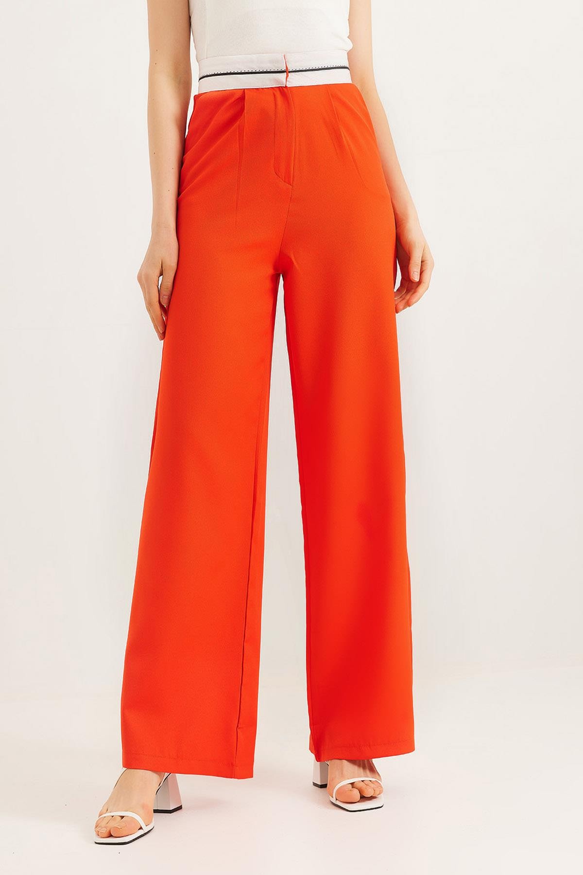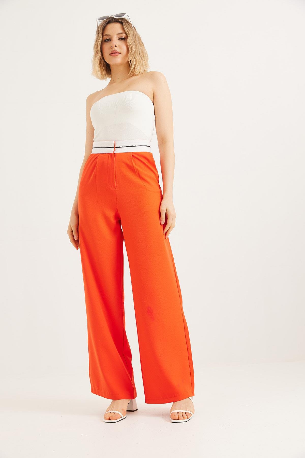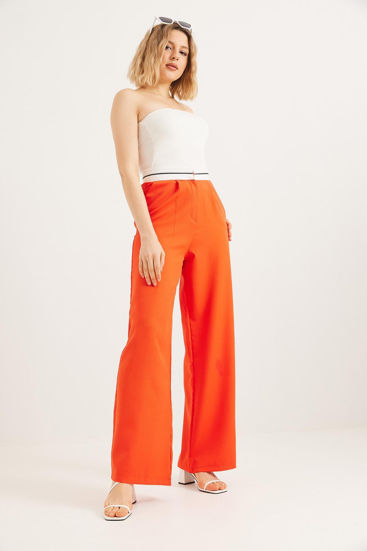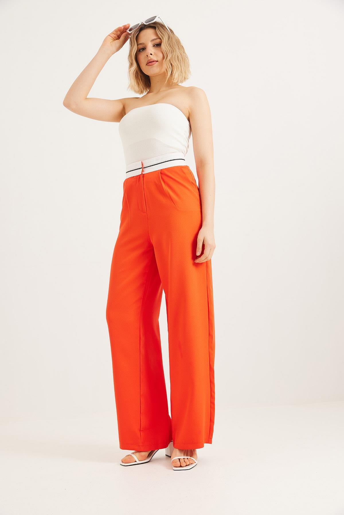 Beli Şeritli Bol Paça Pantolon Turuncu (250549PNTXTRC)