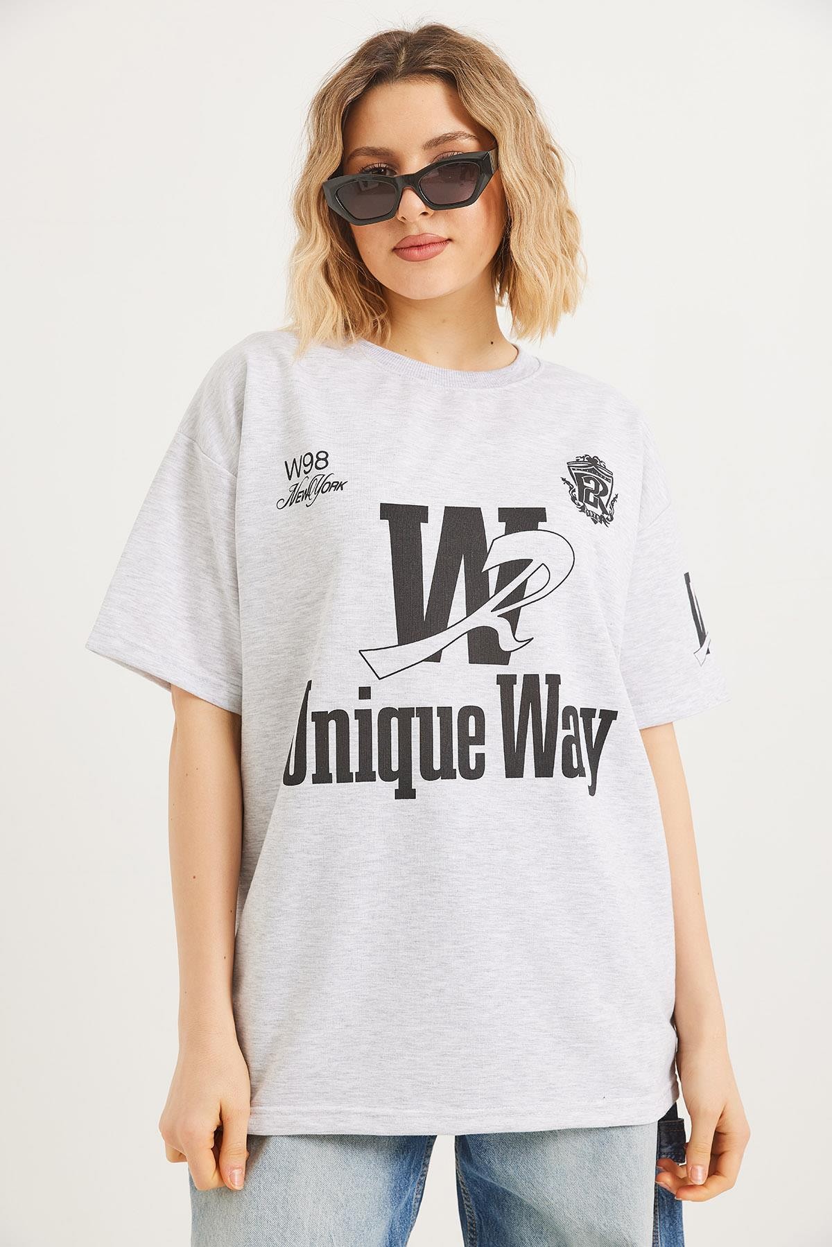 Bisiklet Yaka Baskılı Tshirt Açık Gri (250580TSHXAGRİ)