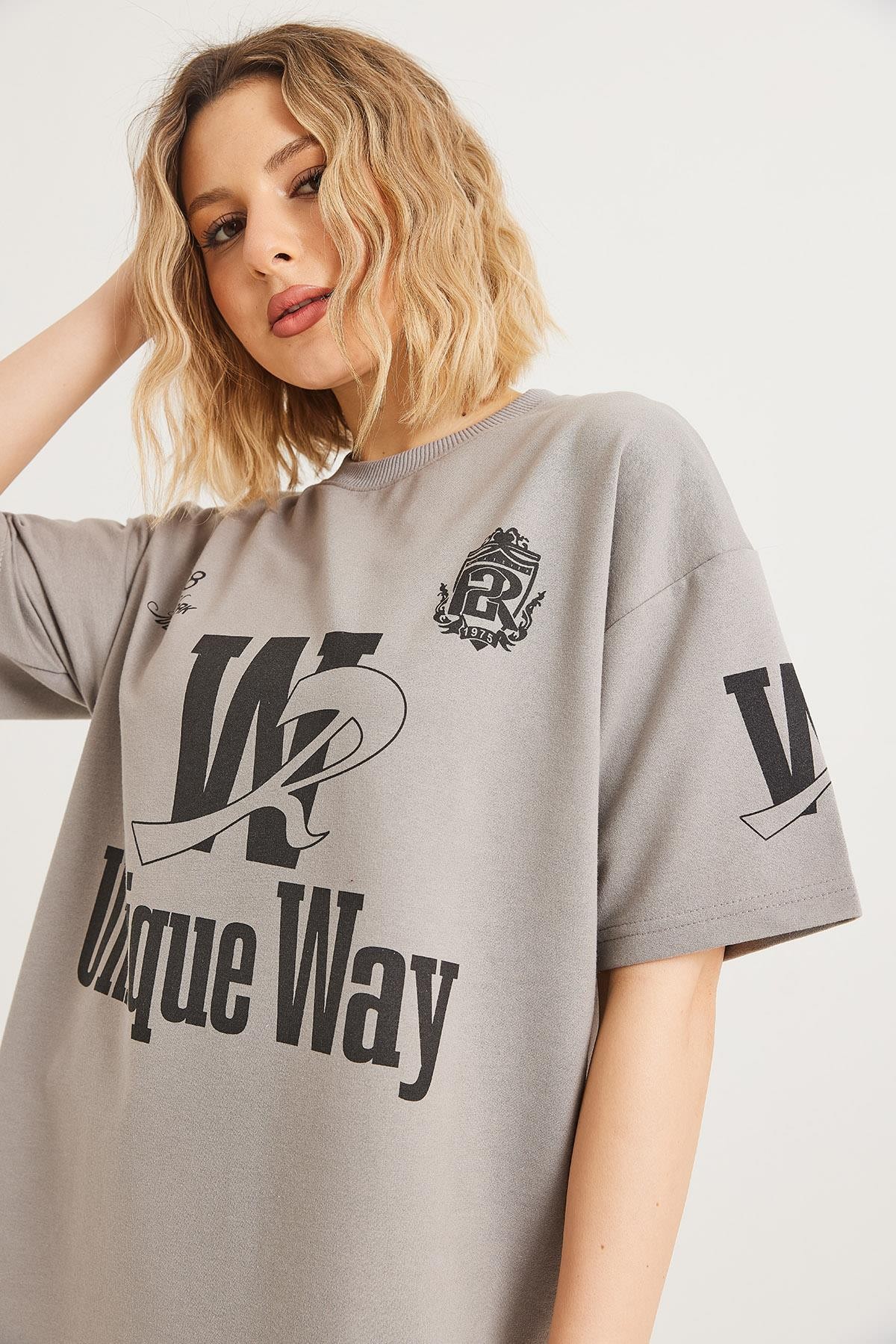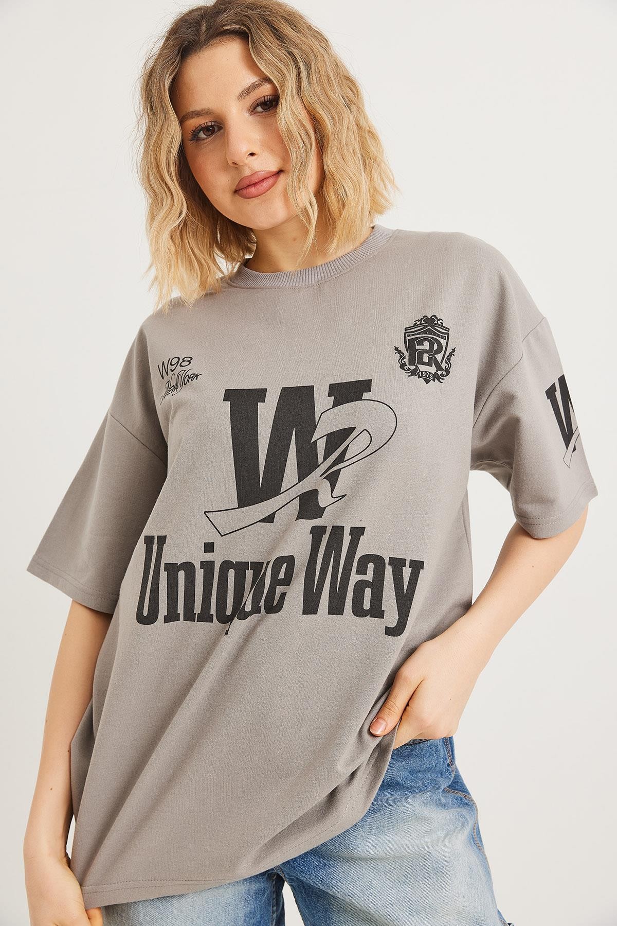 Bisiklet Yaka Baskılı Tshirt Gri (250580TSHXGRİ)