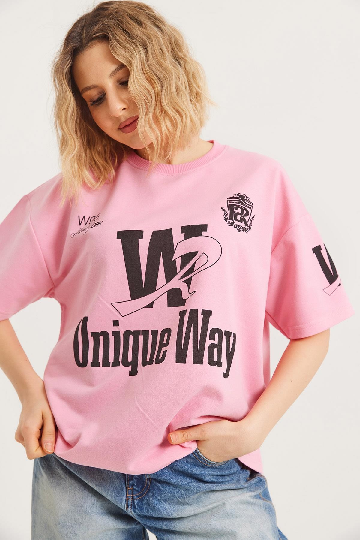Bisiklet Yaka Baskılı Tshirt Pembe (250580TSHXPMB)