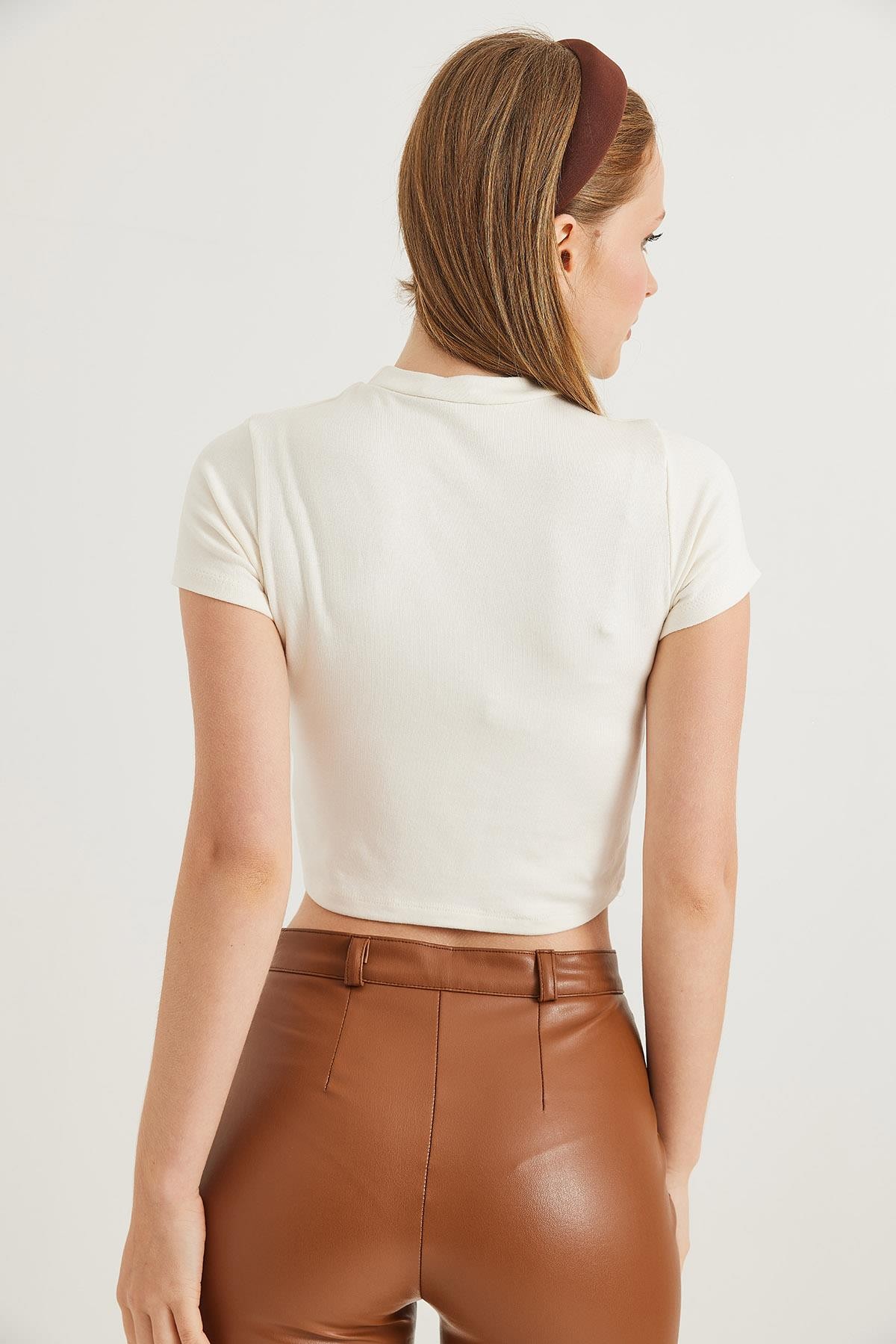 Bisiklet Yaka Esnek Crop Bluz Ekru (250582BLZXEKR)