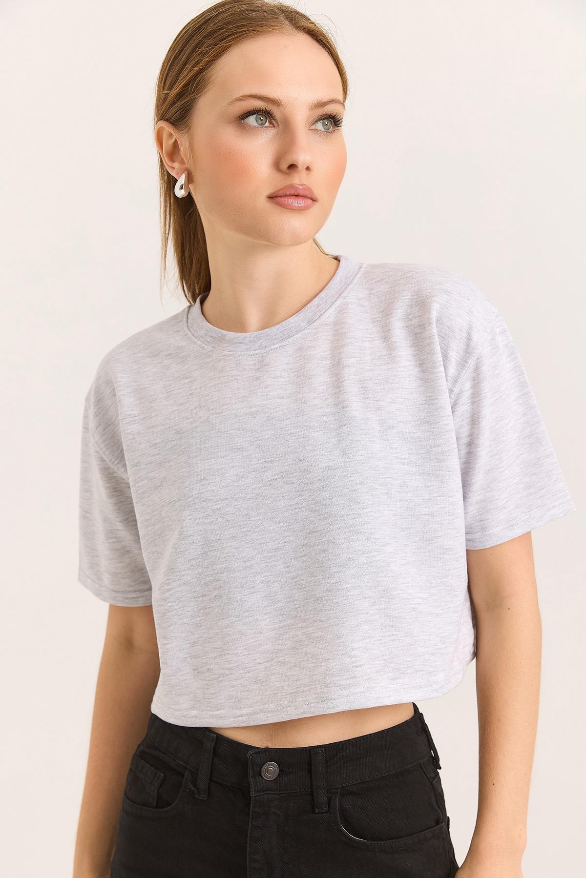 Bisiklet Yaka Havalı Crop İki İp Tshirt Gri (500017CRPXGRİ)