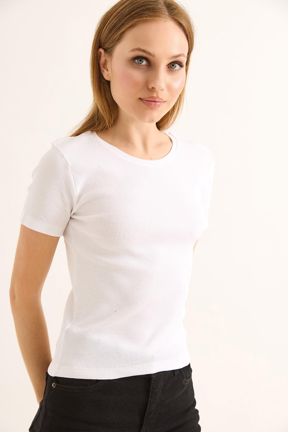 Bisiklet Yaka Kaşkorse Kadın Bluz Beyaz (251079BLZXBYZ)