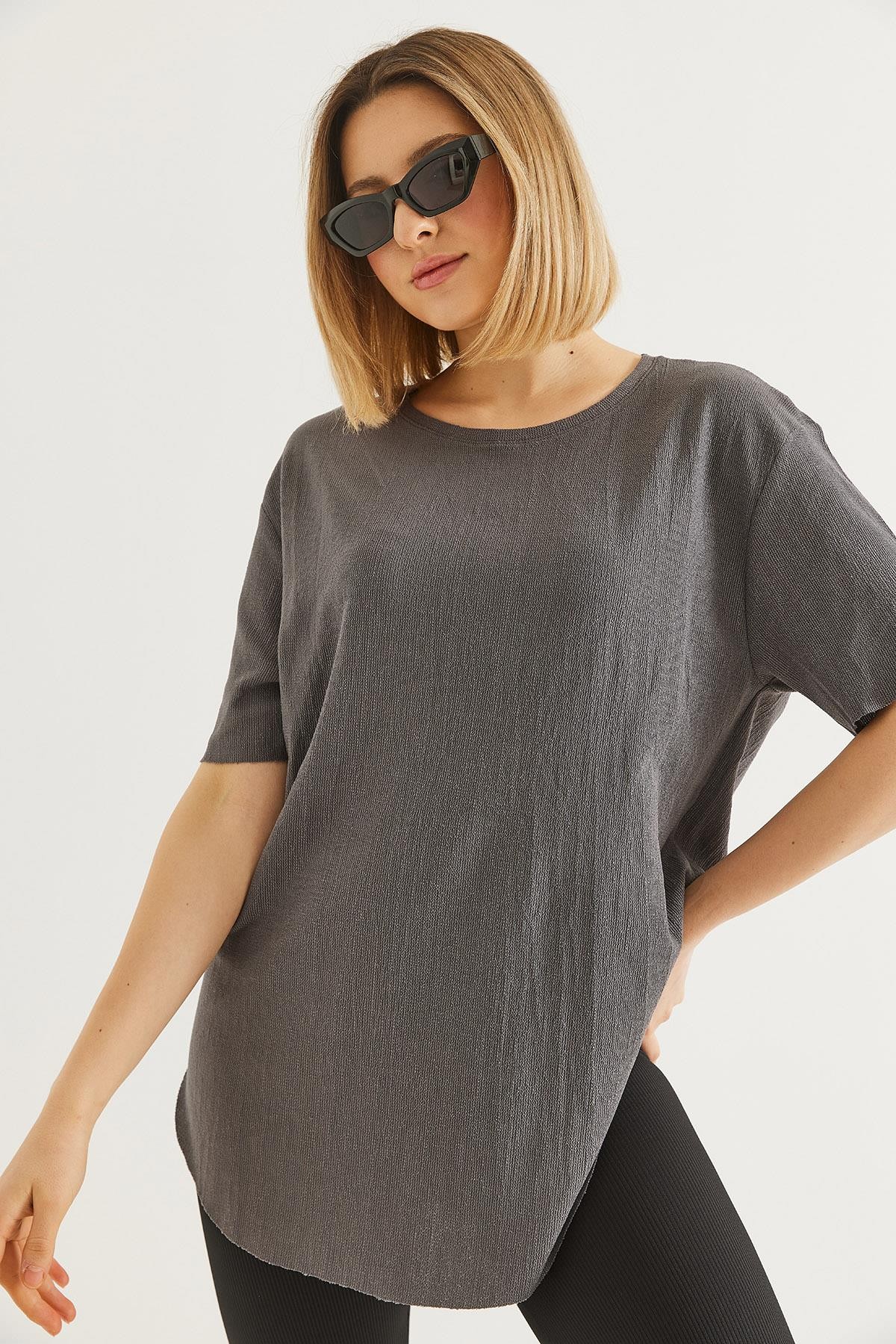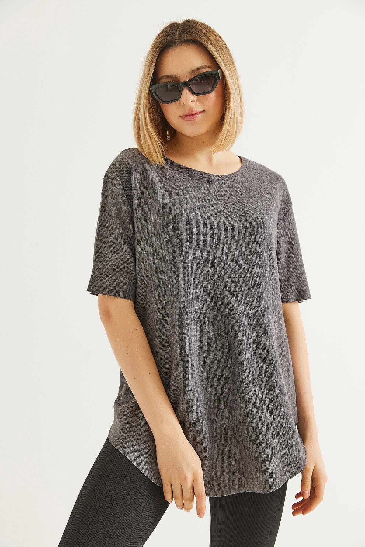 Bisiklet Yaka Kısa Kol Basic Tshirt Gri (250477TSHXGRİ)