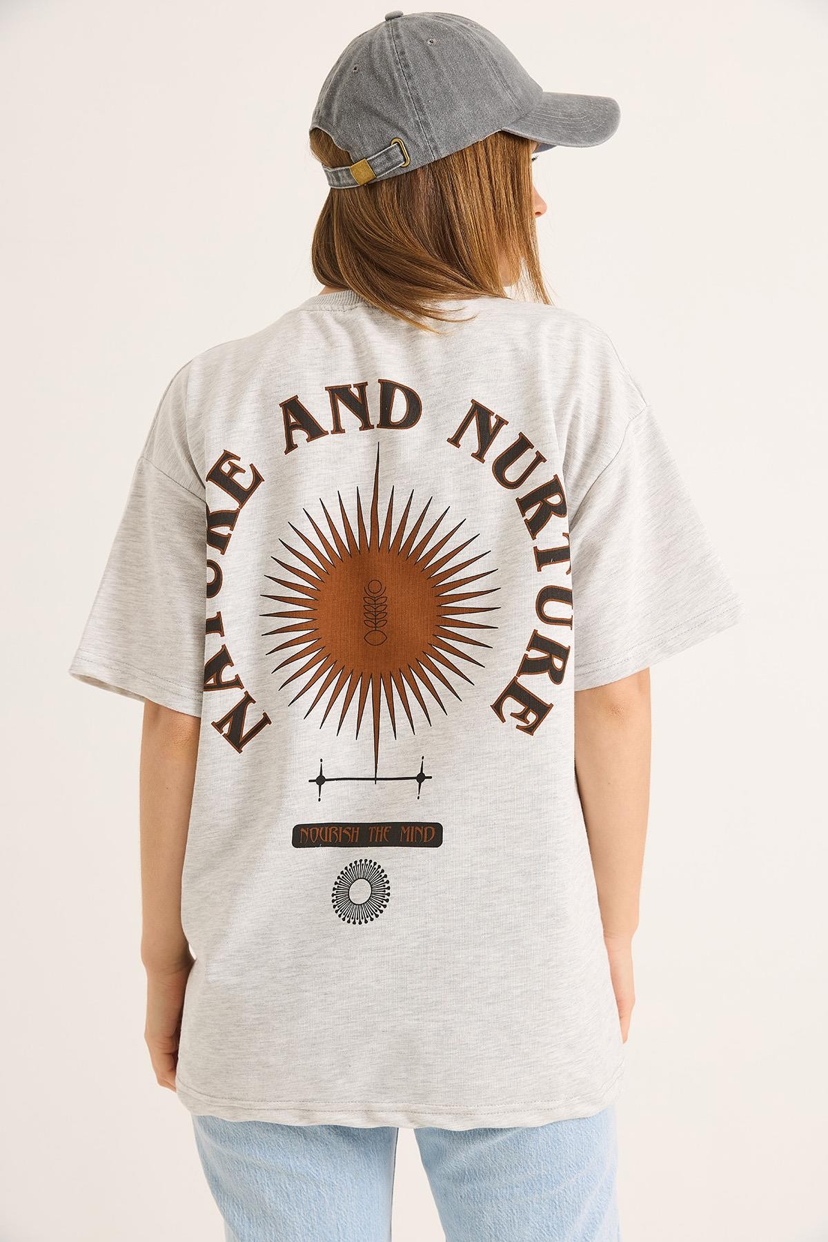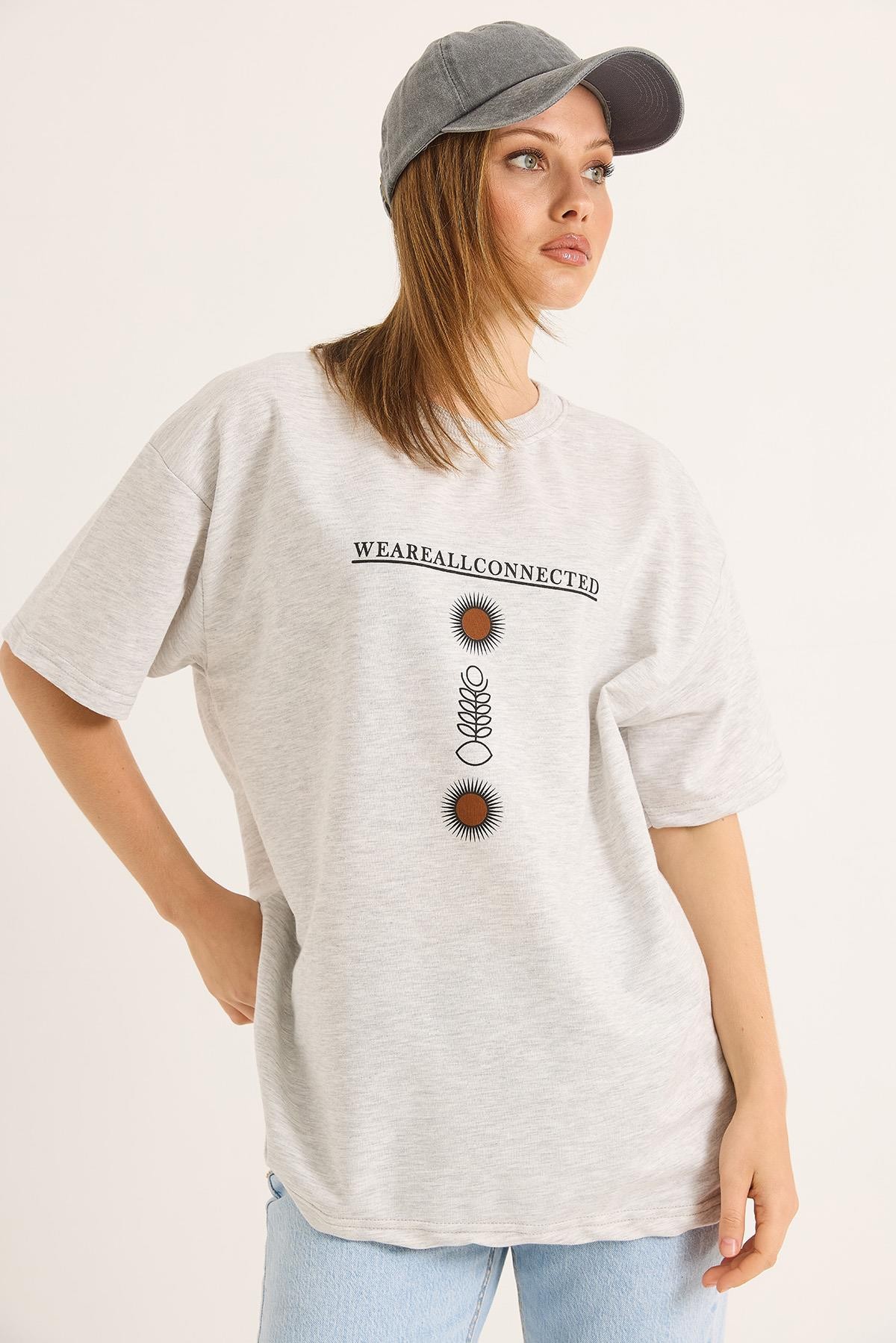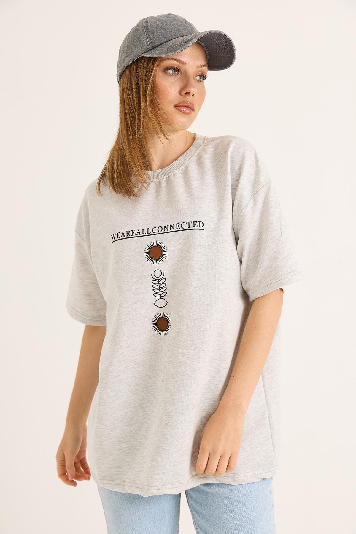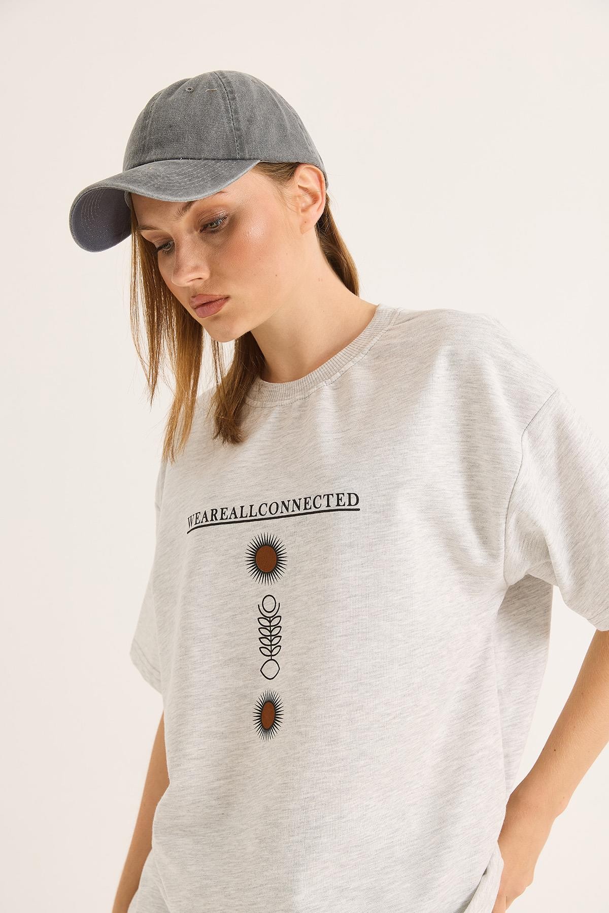 Bisiklet Yaka Kısa Kol Baskılı Tshirt Gri (250585TSHXGRİ)