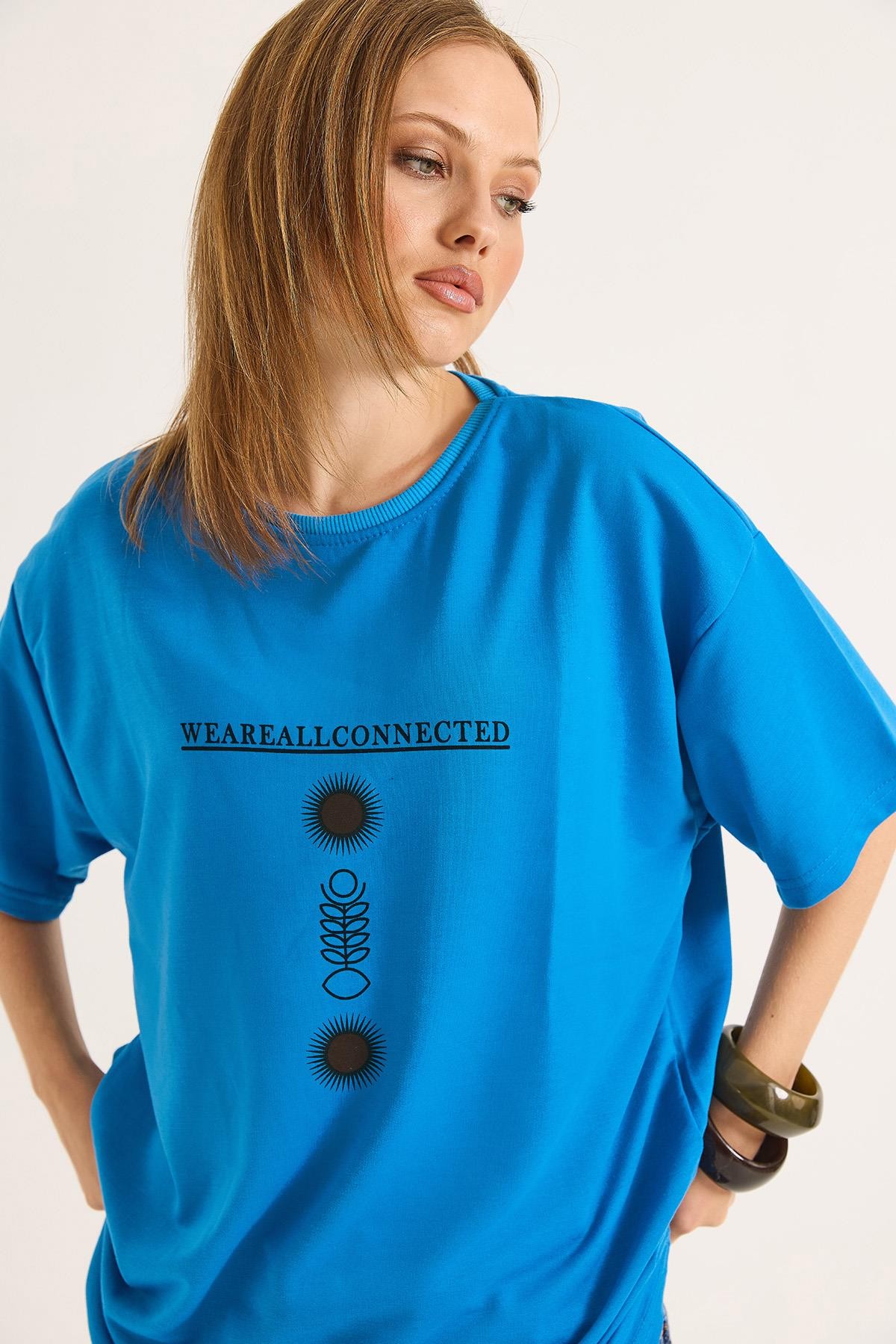 Bisiklet Yaka Kısa Kol Baskılı Tshirt Mavi (250585TSHXMVİ)