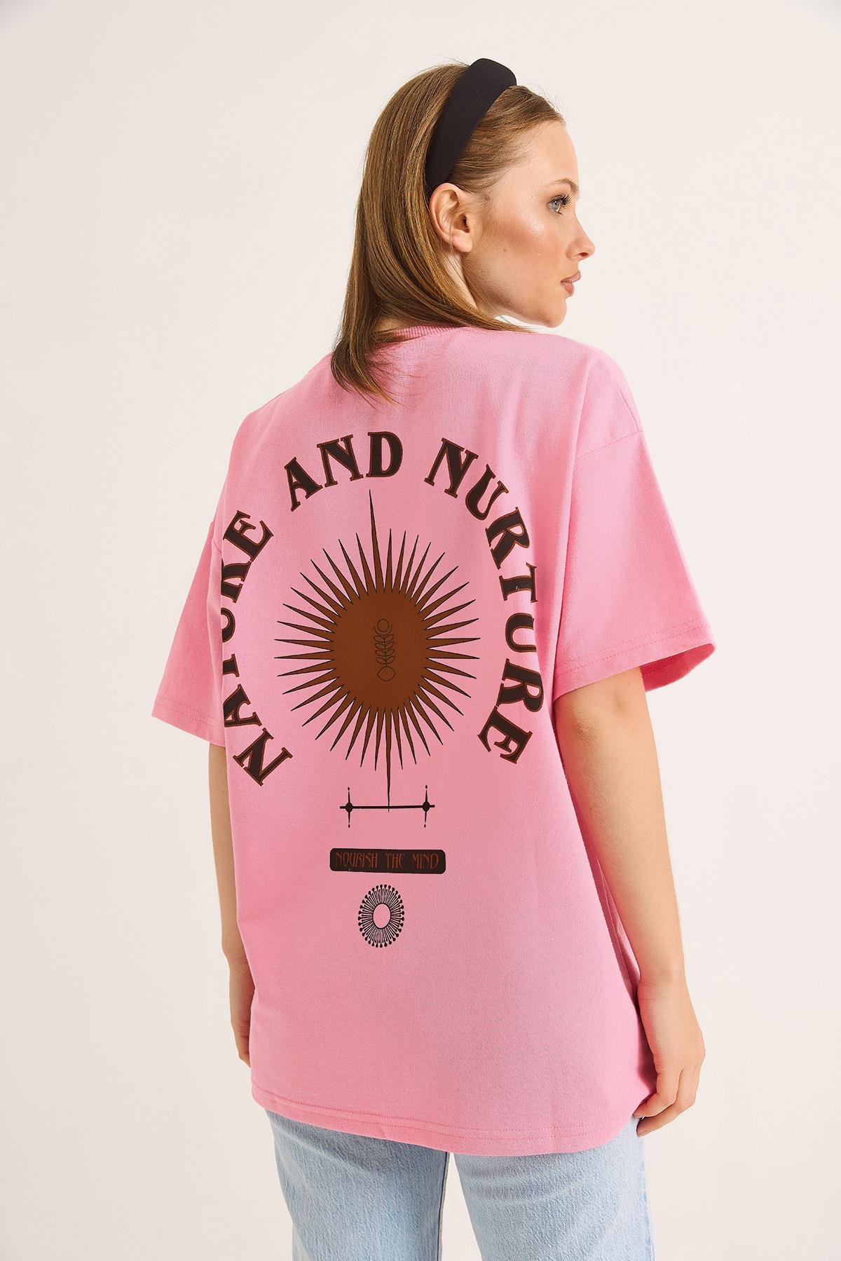 Bisiklet Yaka Kısa Kol Baskılı Tshirt Pembe (250585TSHXPMB)
