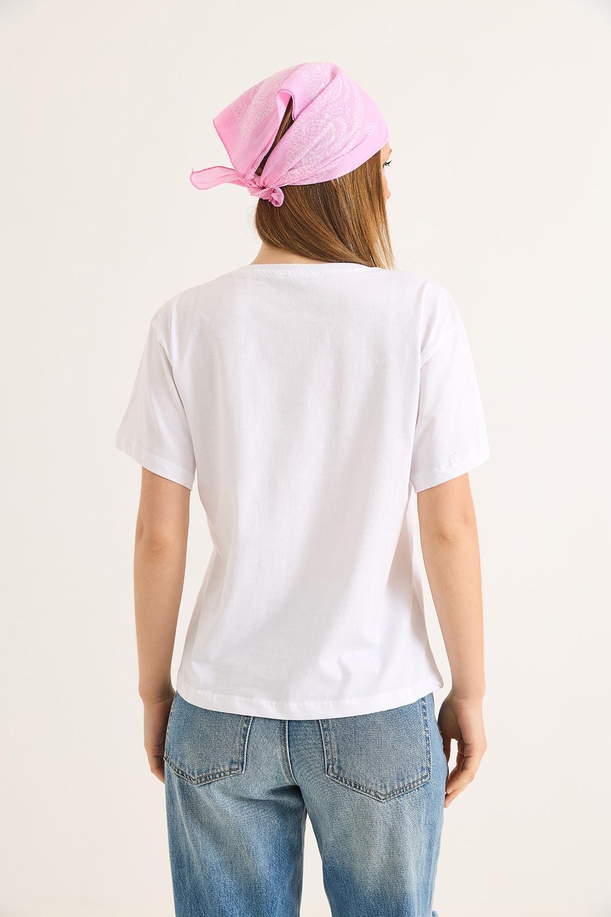 Bisiklet Yaka Kısa Kollu Fit Tshirt Beyaz