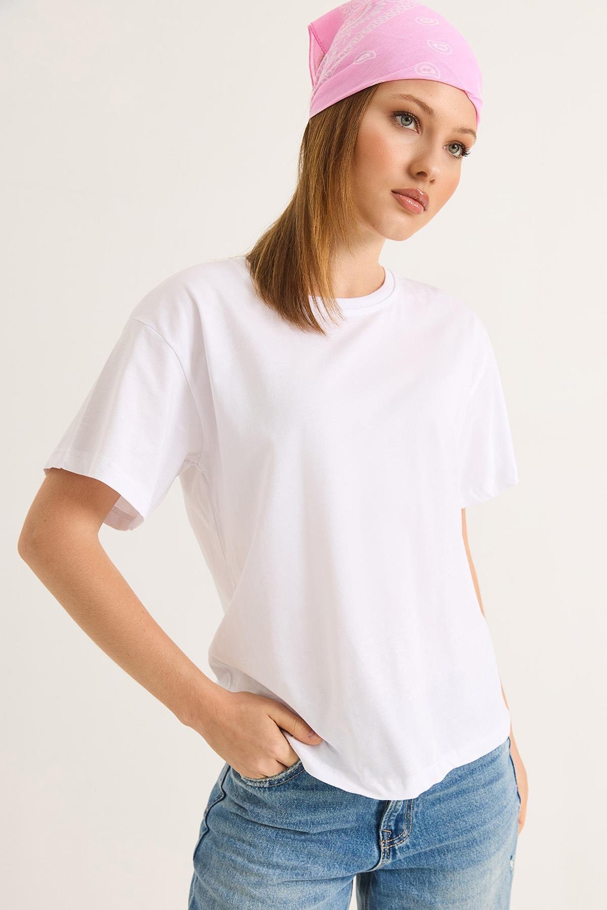 Bisiklet Yaka Kısa Kollu Fit Tshirt Beyaz (250698TSHXBYZ)
