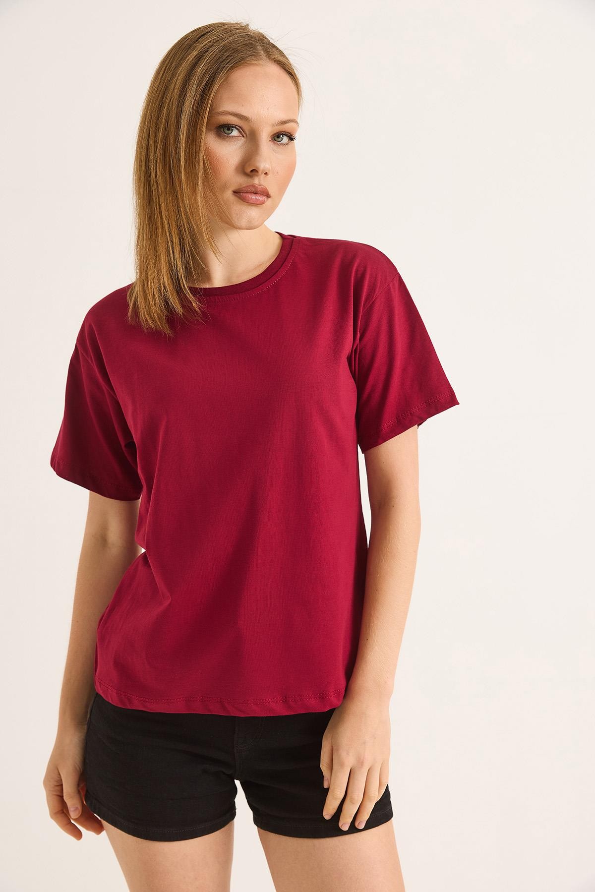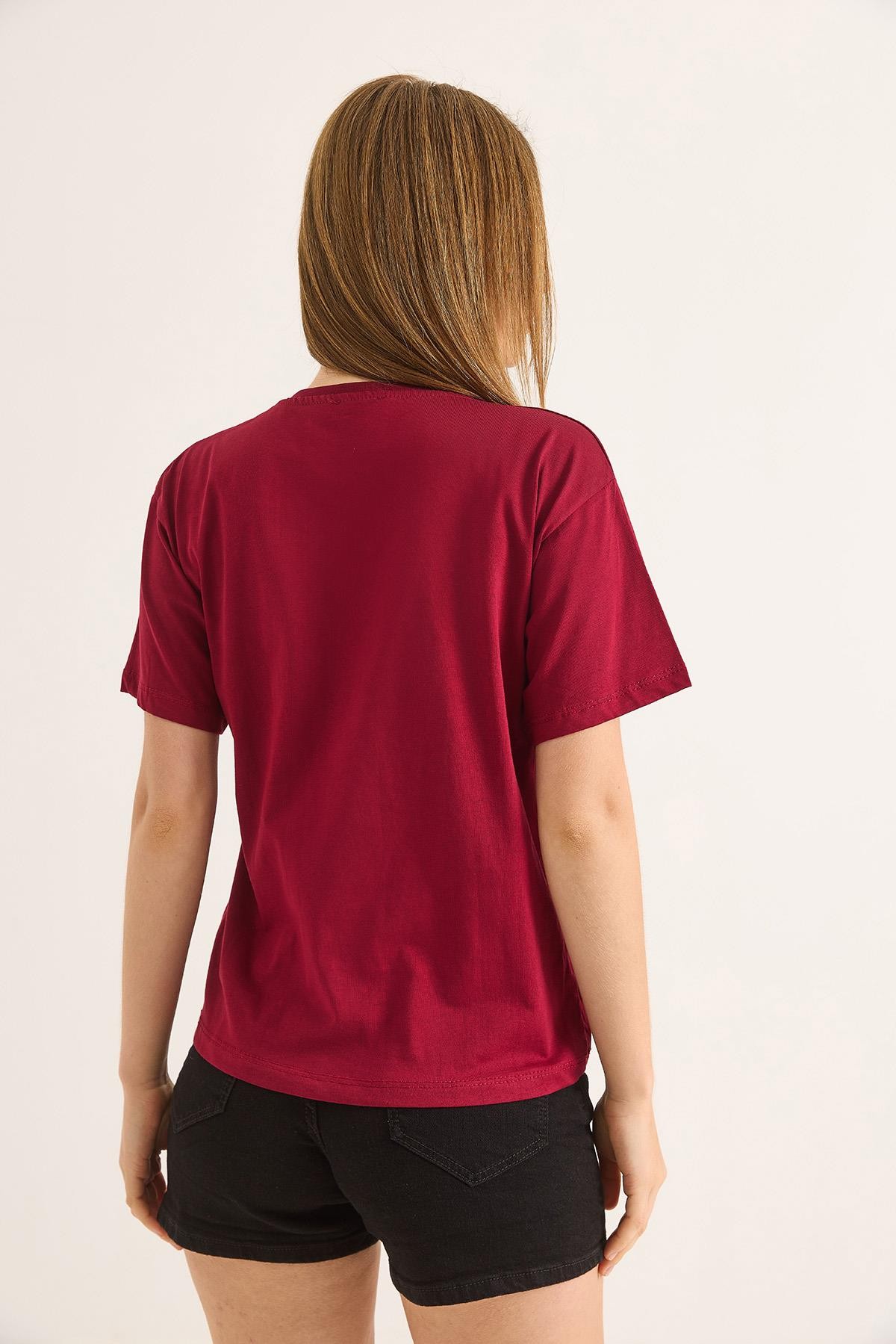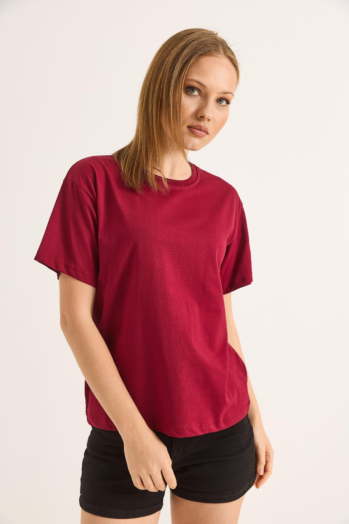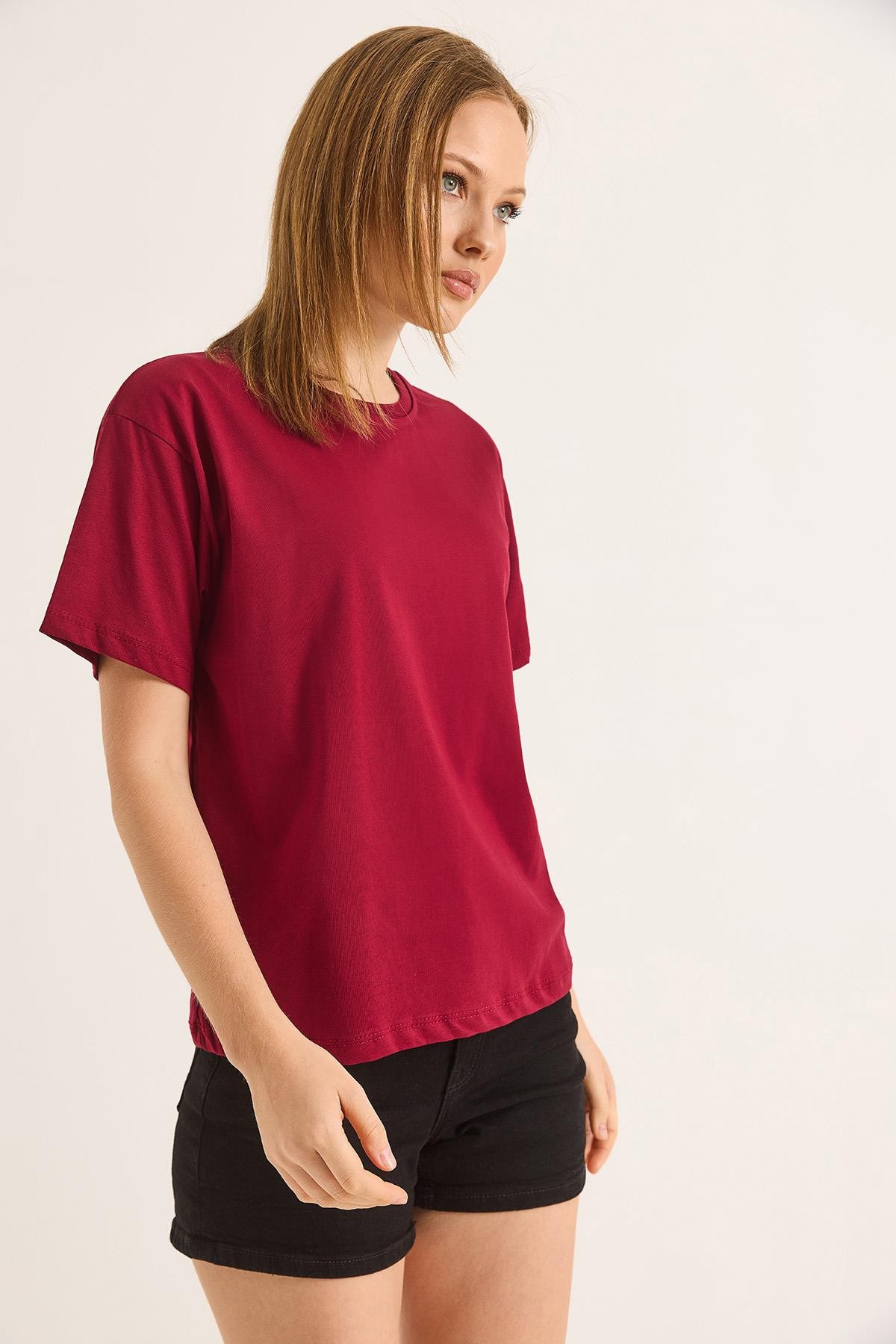 Bisiklet Yaka Kısa Kollu Fit Tshirt Bordo (250698TSHXBRD)
