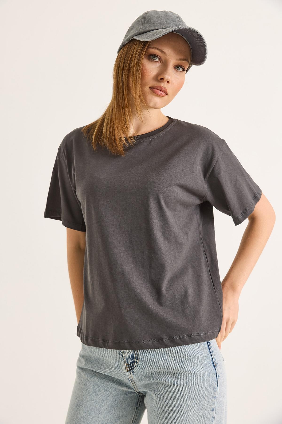 Bisiklet Yaka Kısa Kollu Fit Tshirt Füme (250698TSHXFME)