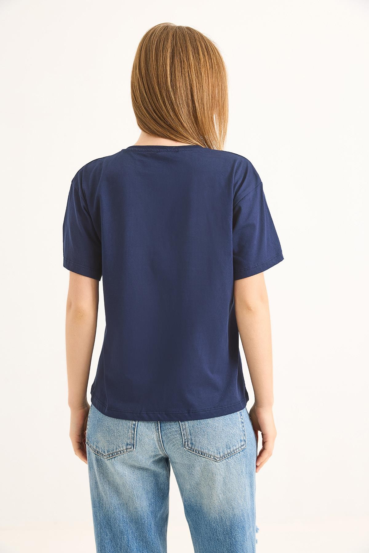 Bisiklet Yaka Kısa Kollu Fit Tshirt İndigo
