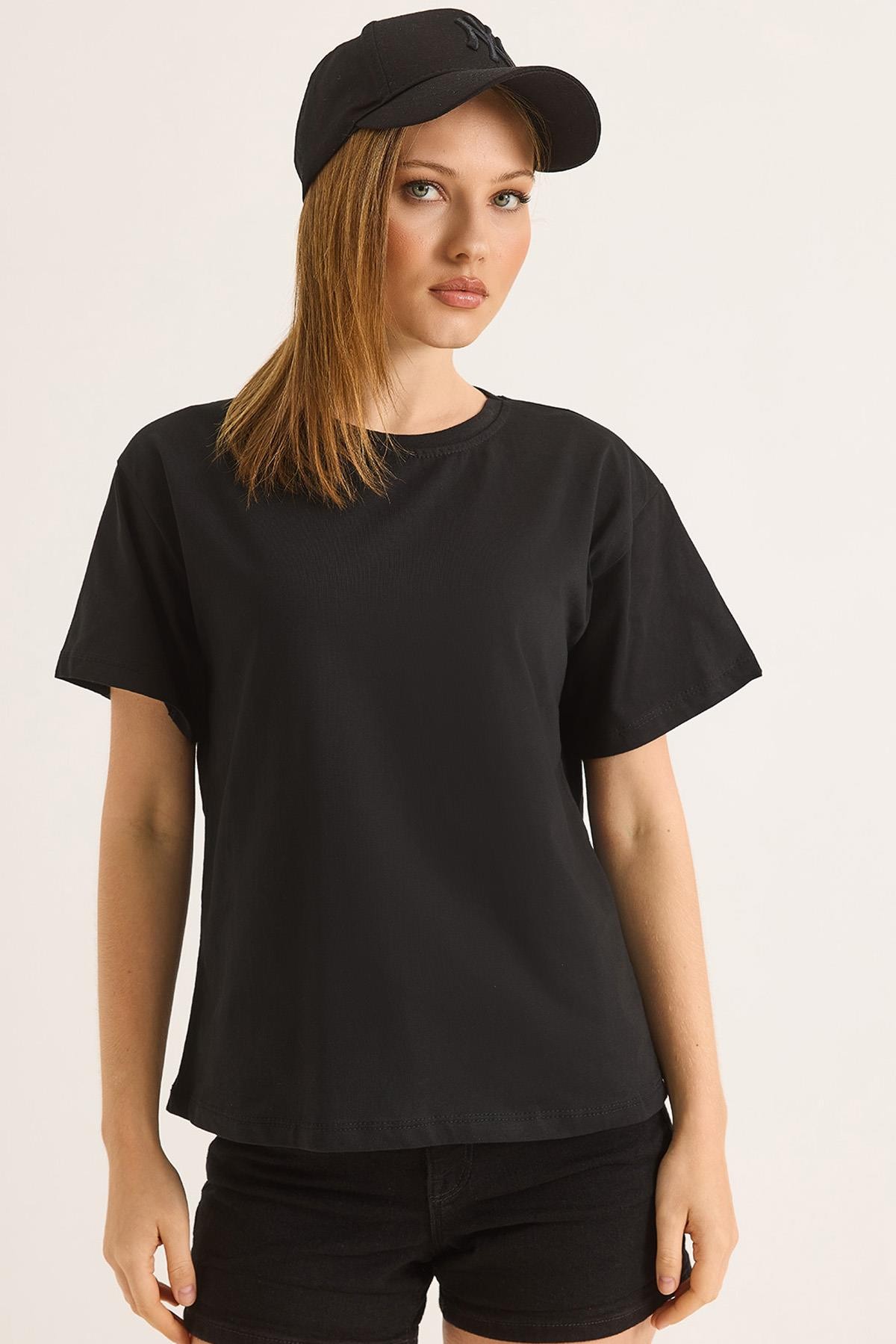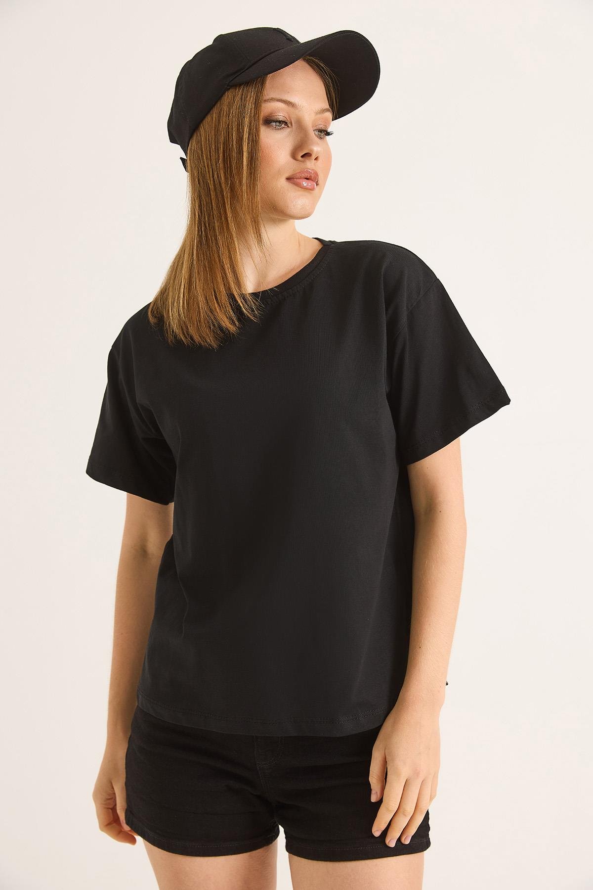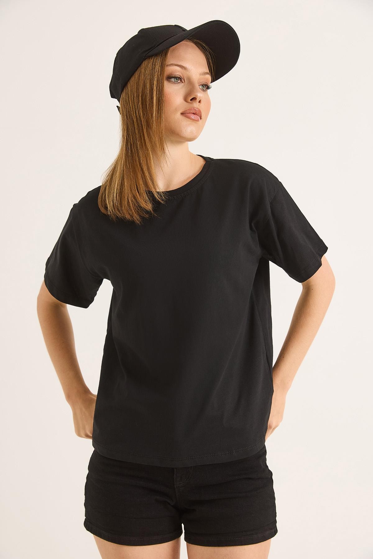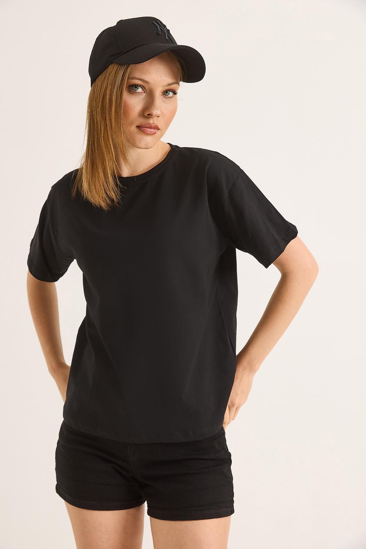 Bisiklet Yaka Kısa Kollu Fit Tshirt Siyah (250698TSHXSYH)