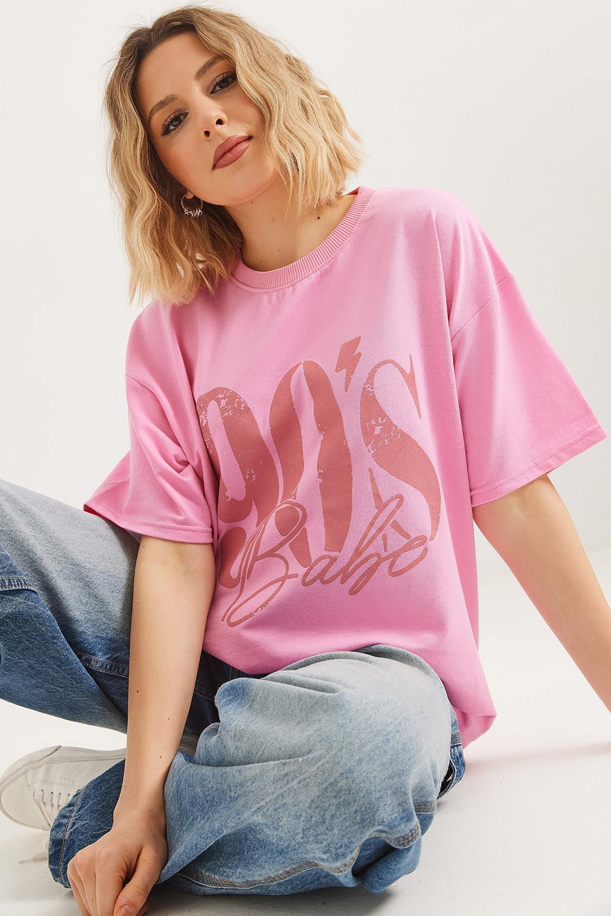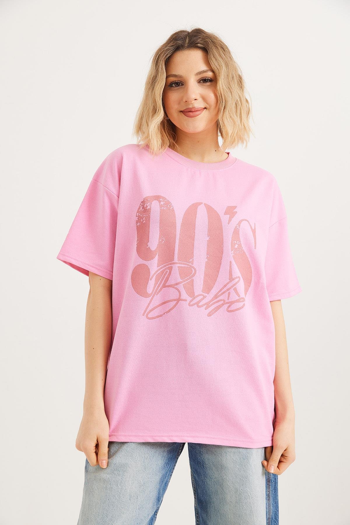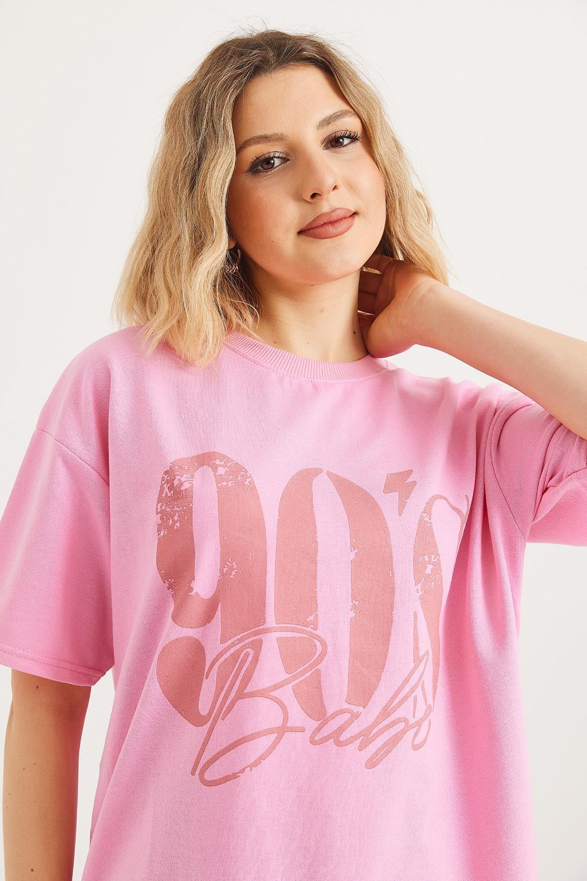 Bisiklet Yaka Kısa Kollu Tshirt Pembe (250581TSHXPMB)