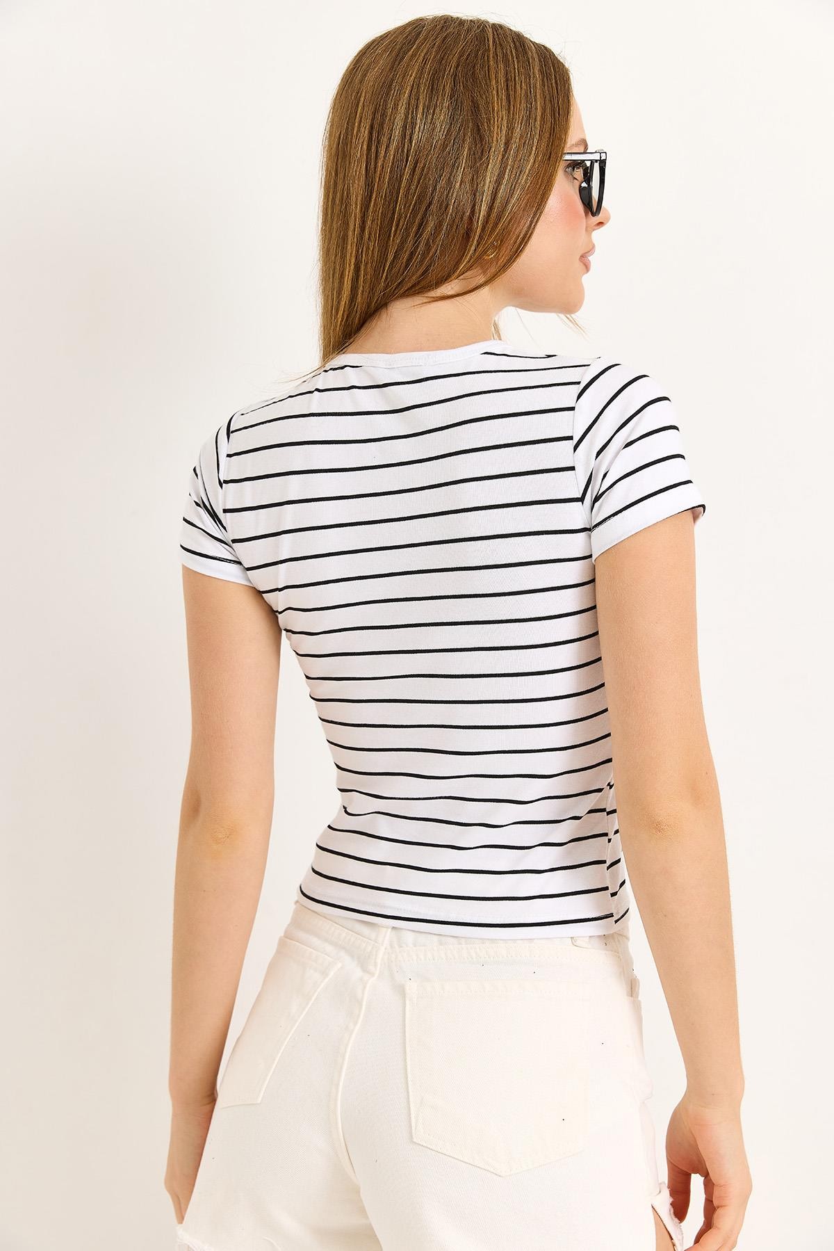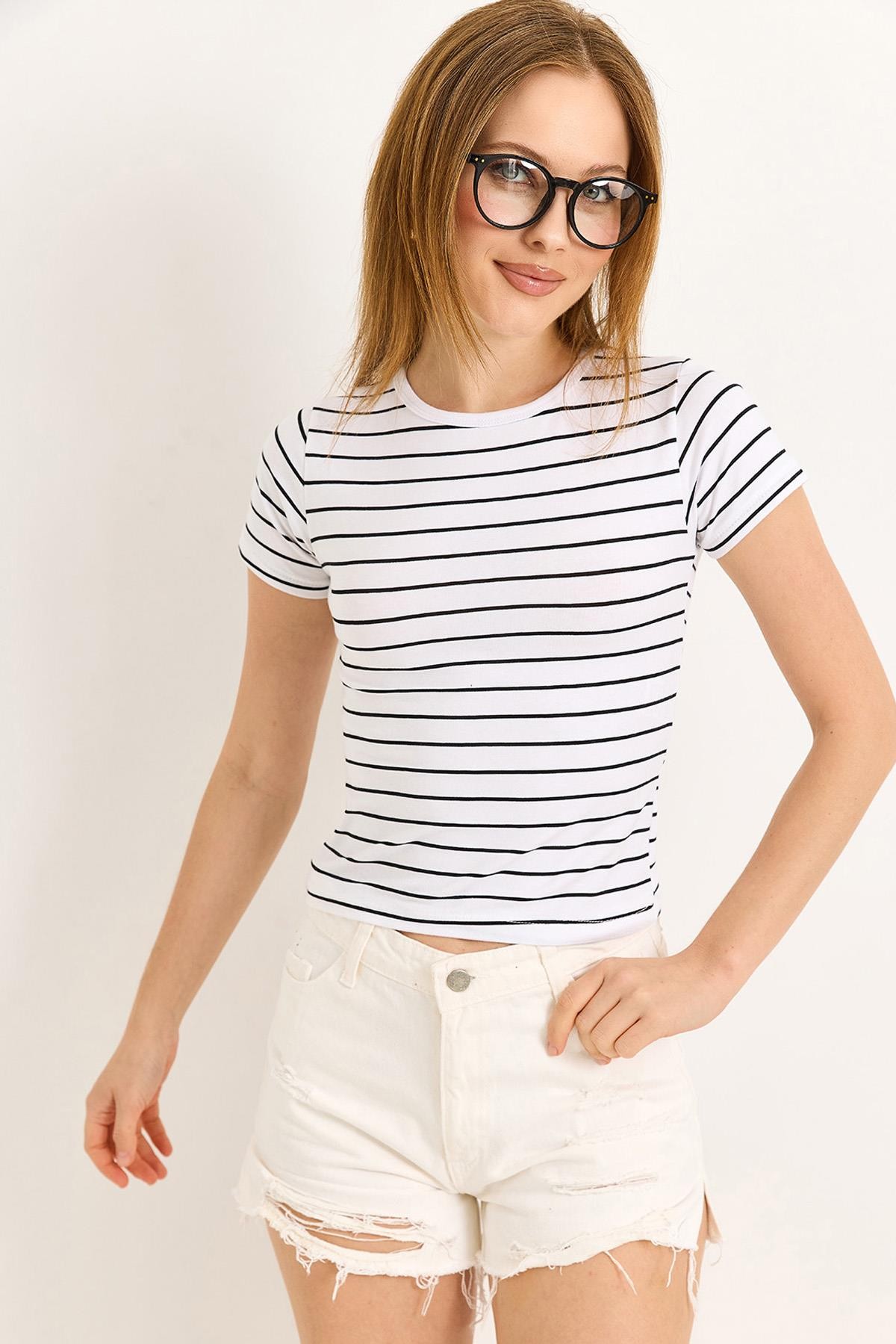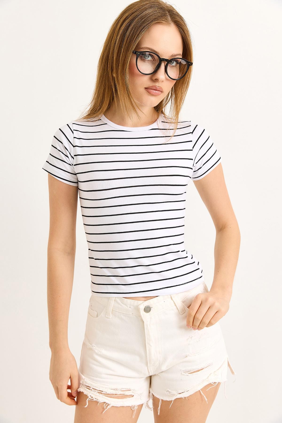 Bisiklet Yaka Likralı Pamuk Tshirt Beyaz (500184TSHXBYZ)