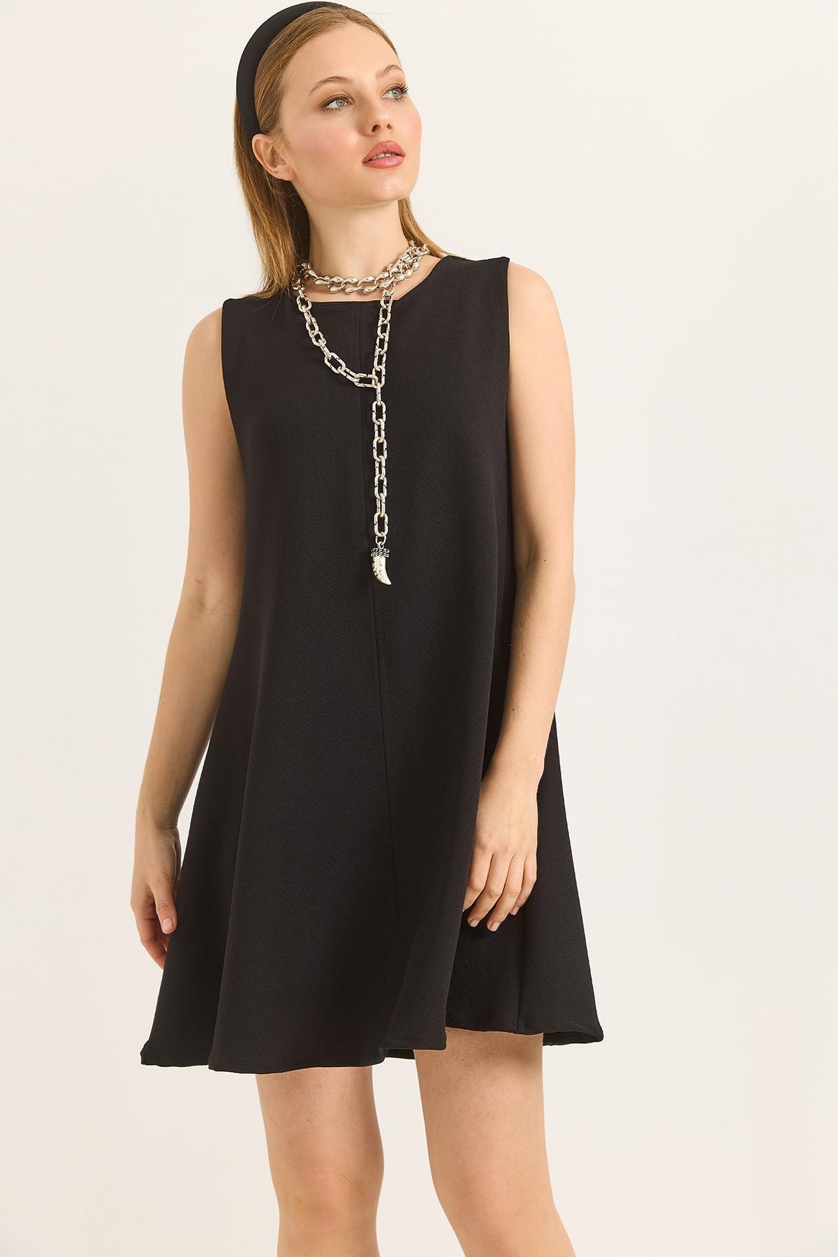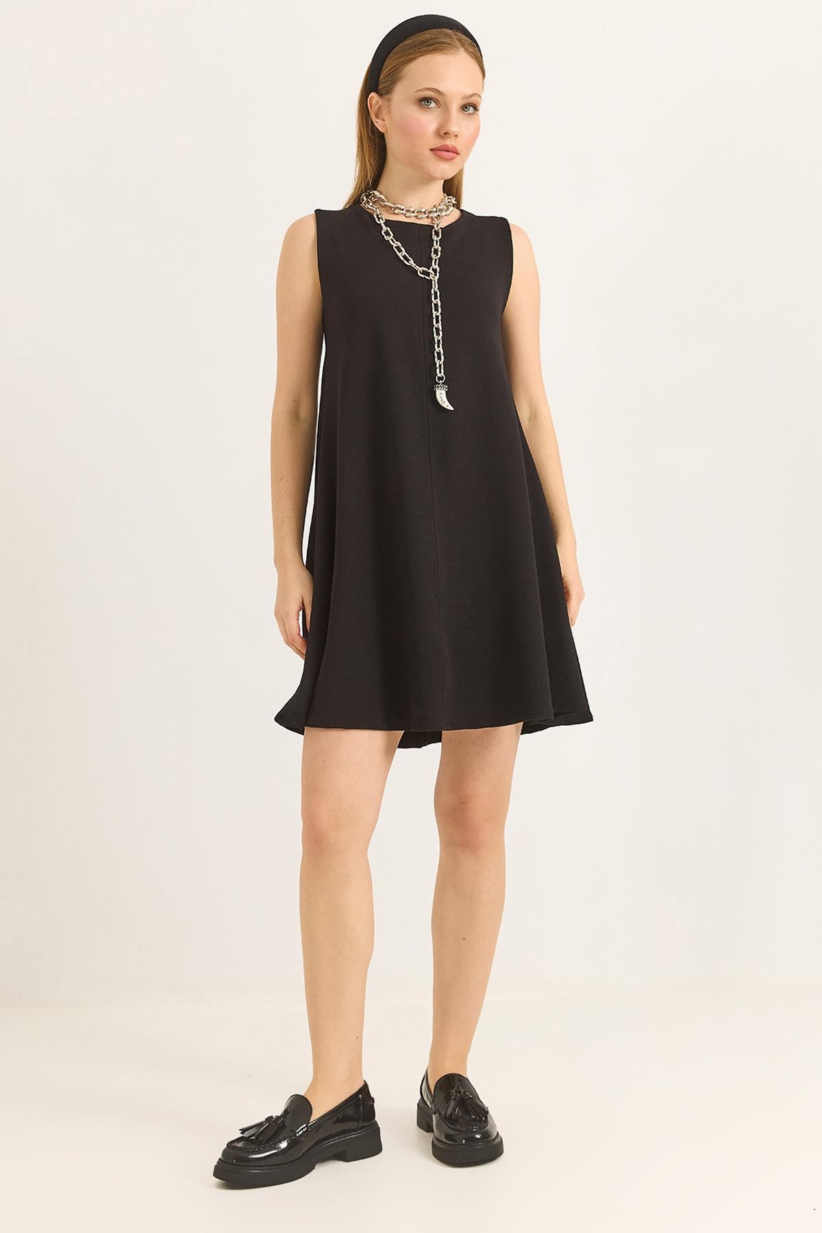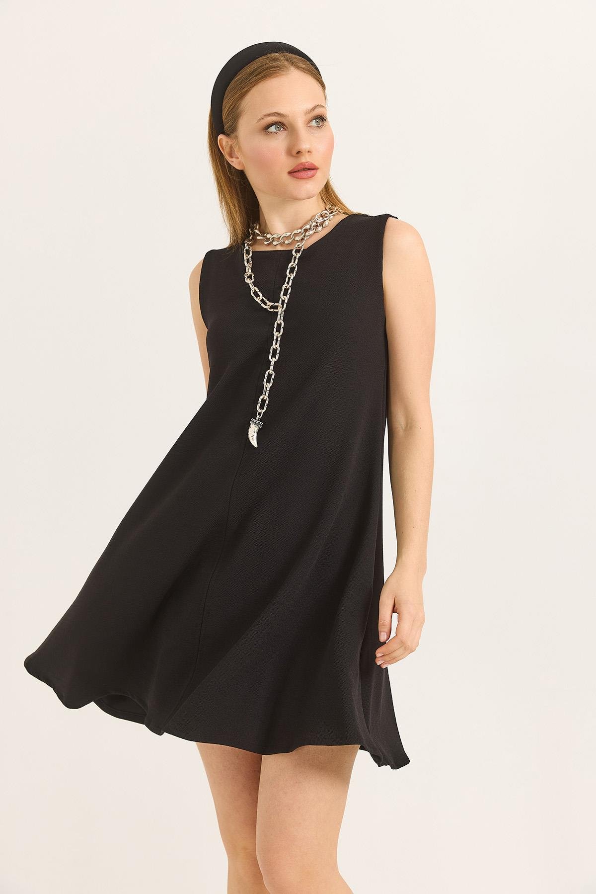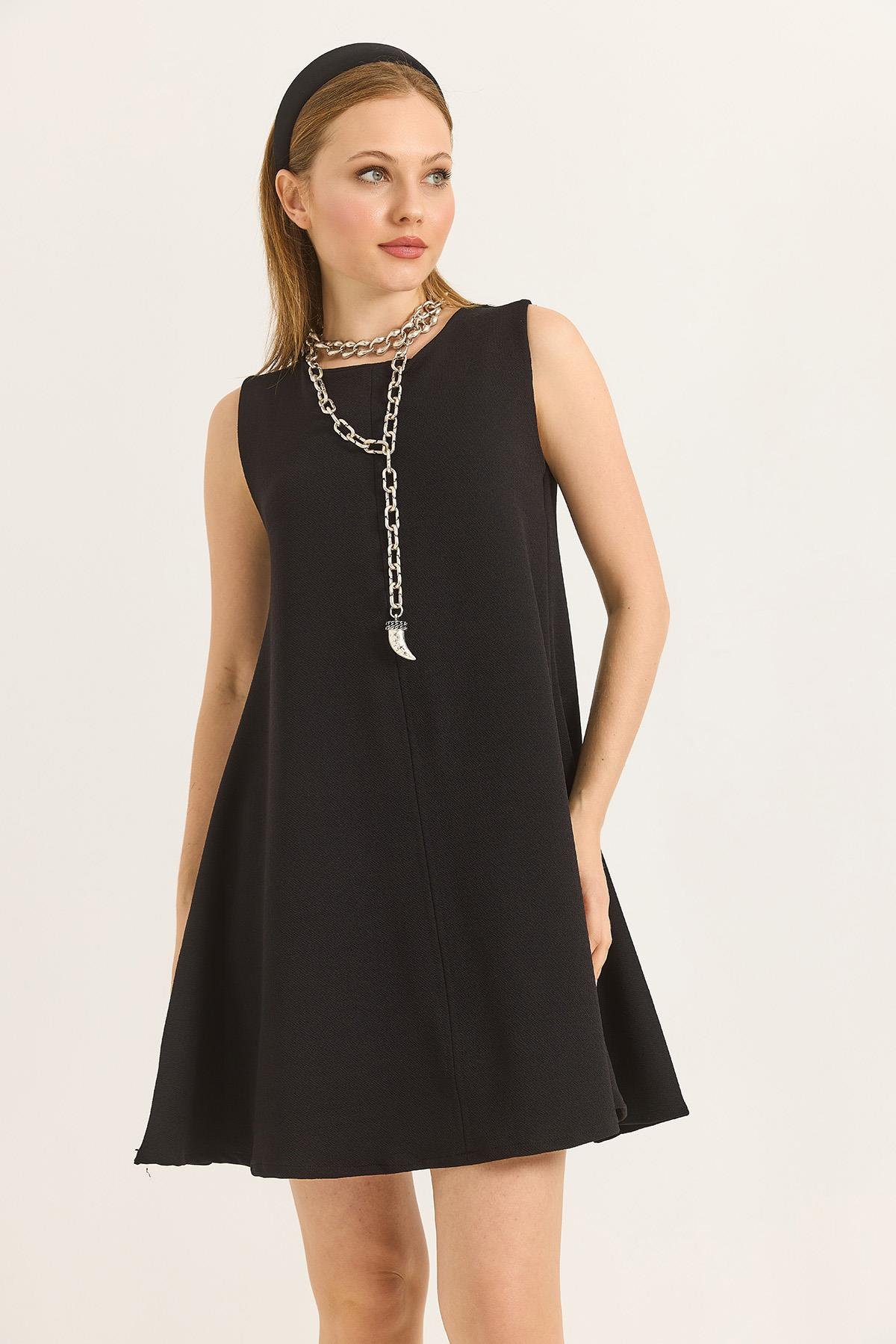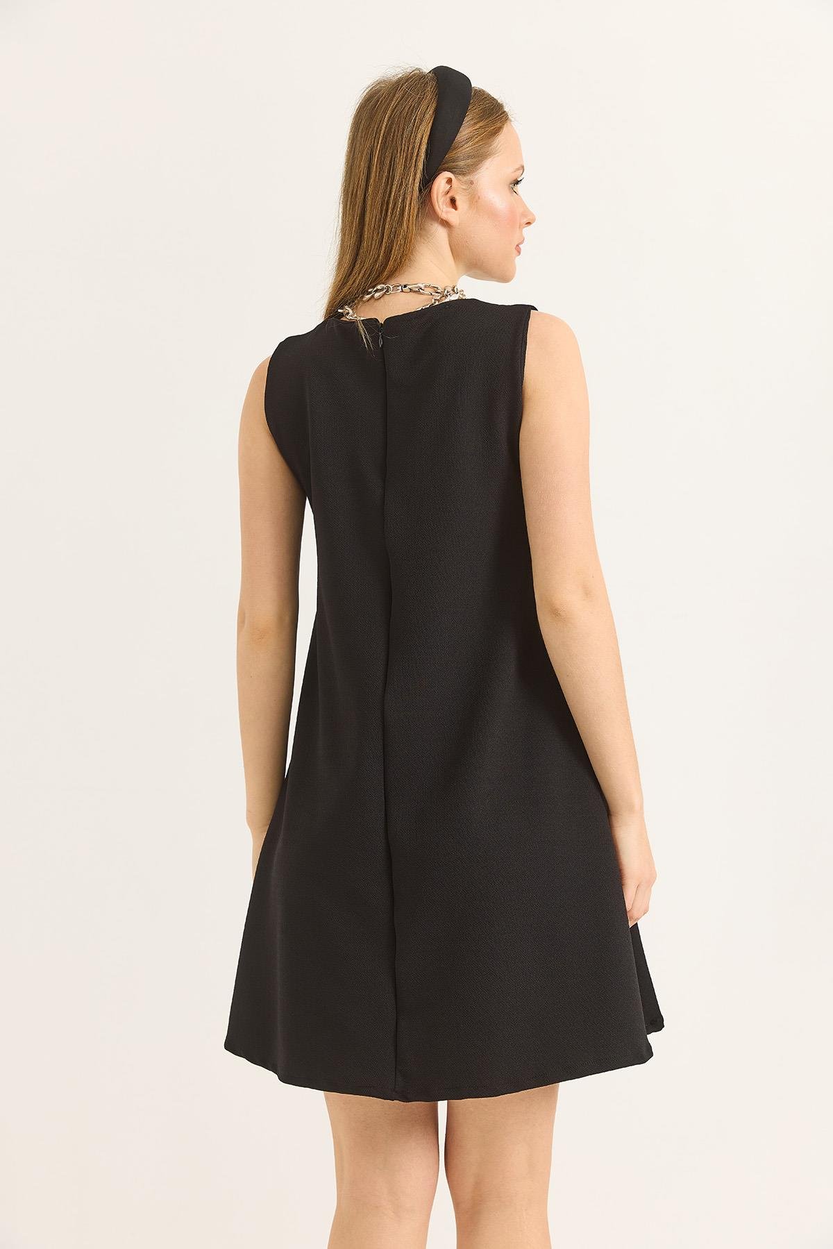 Bisiklet Yaka Önü Dikişli Mini Örme Elbise Siyah