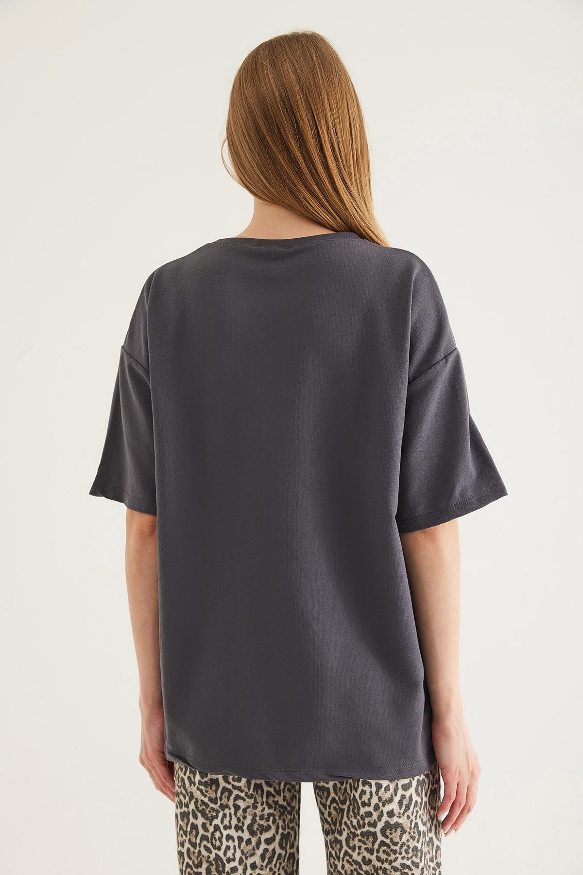 Bisiklet Yaka Oversize Baskılı Tshirt Füme (250457TSHXFME)