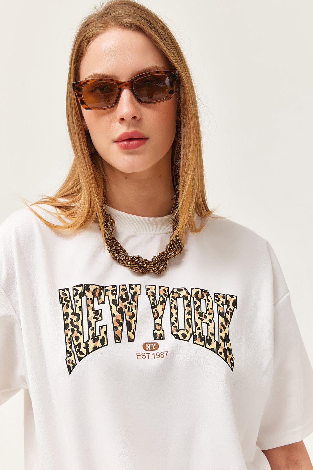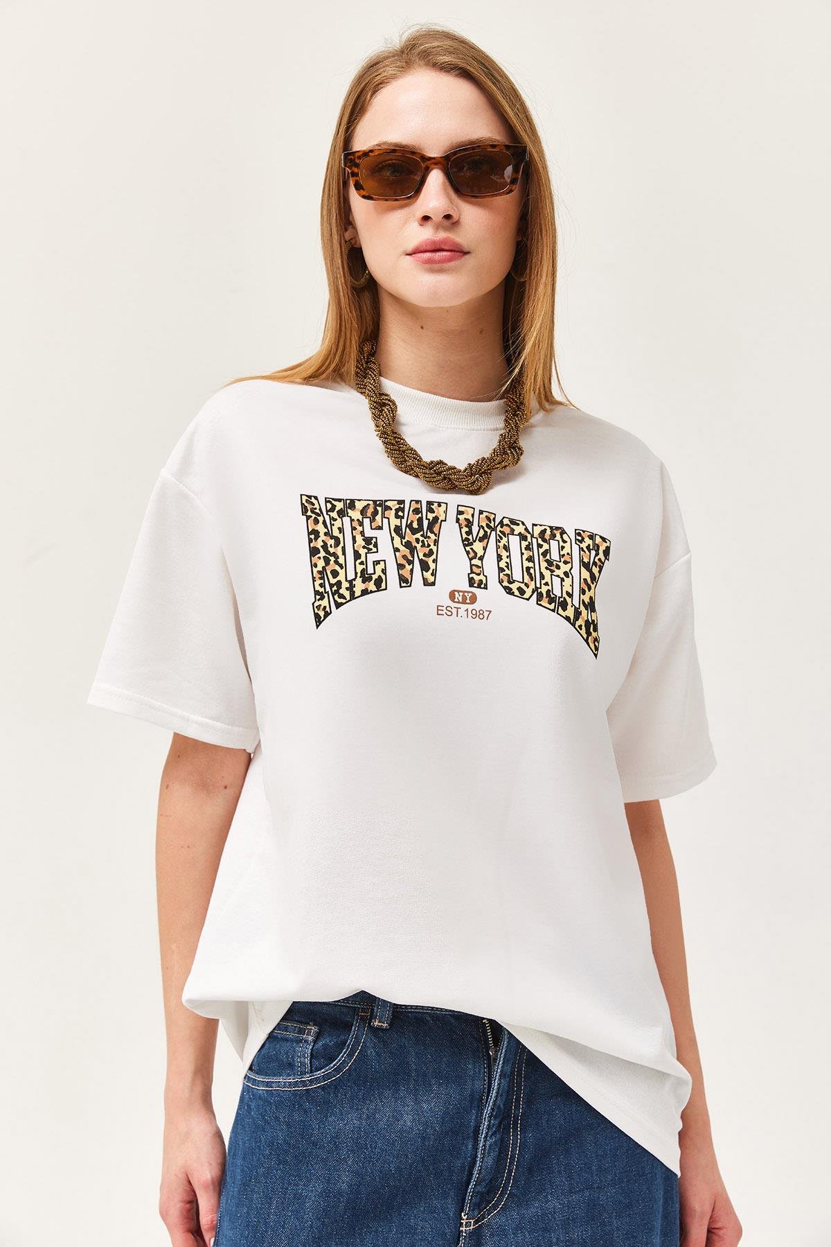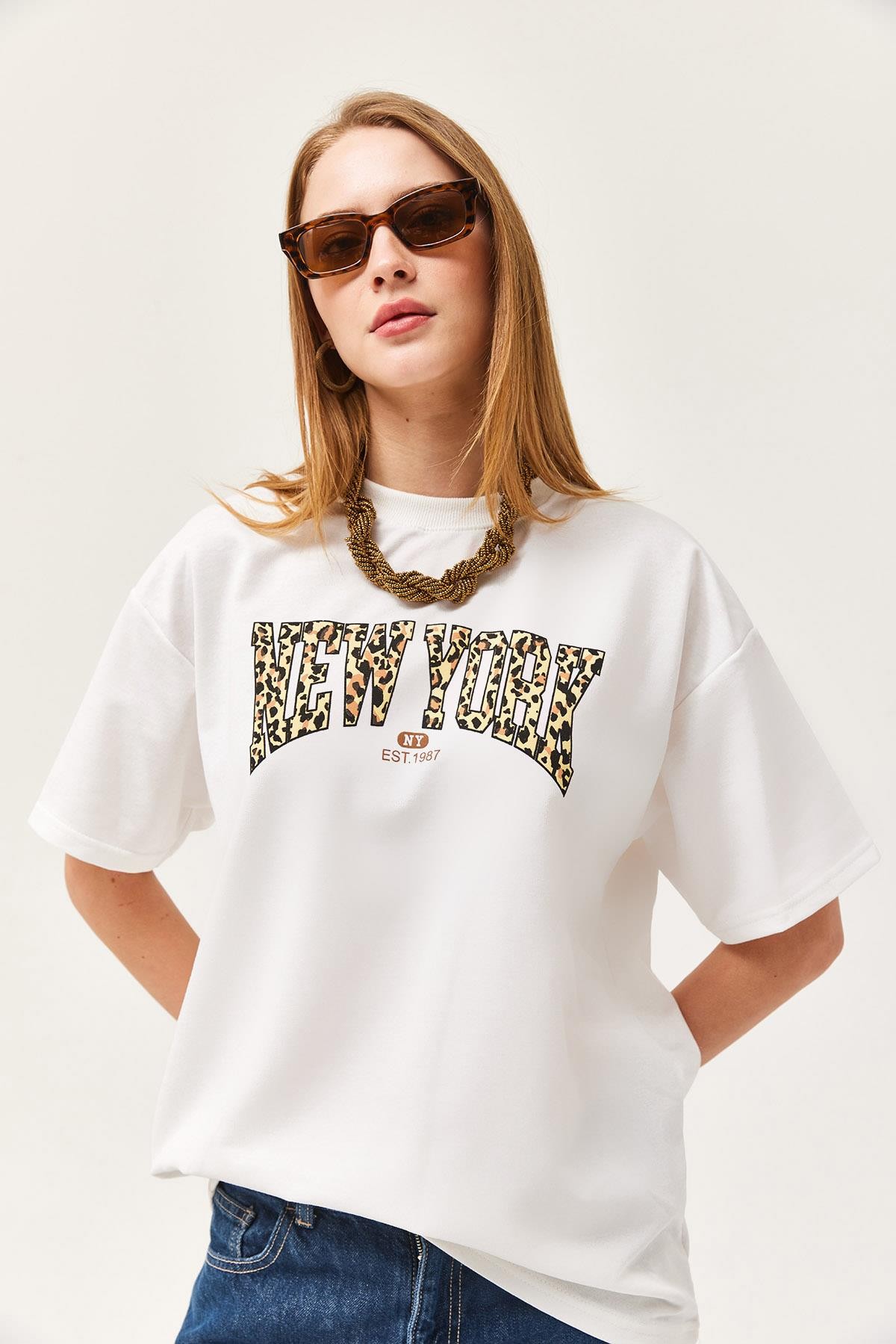 Bisiklet Yaka Oversize Tshirt Beyaz