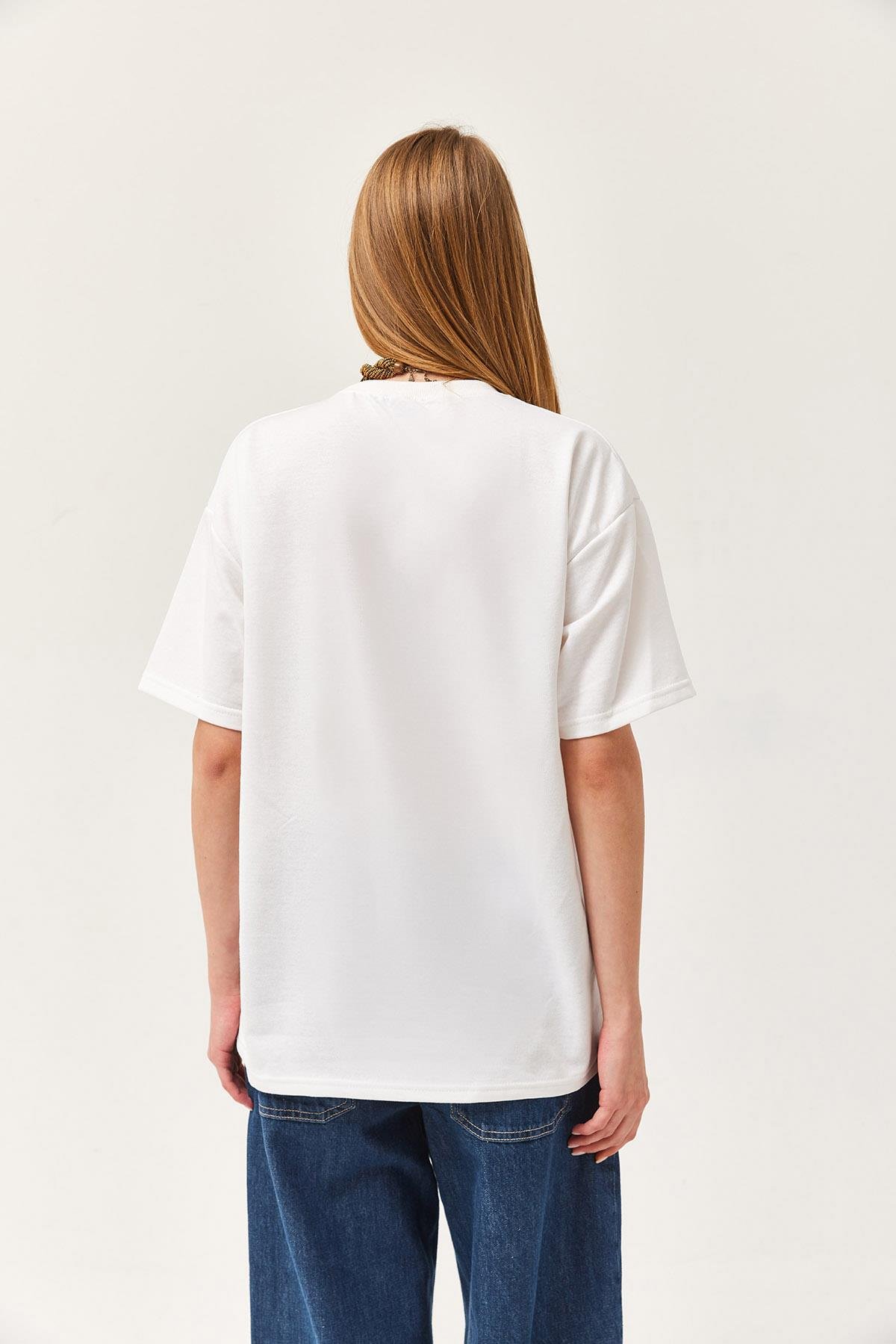 Bisiklet Yaka Oversize Tshirt Beyaz (250373TSHXBYZ)