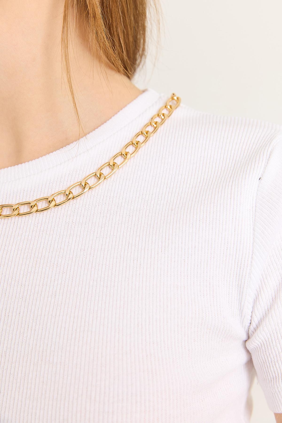 Bisiklet Yaka Zincir Detaylı Kaşkorse Bluz Beyaz