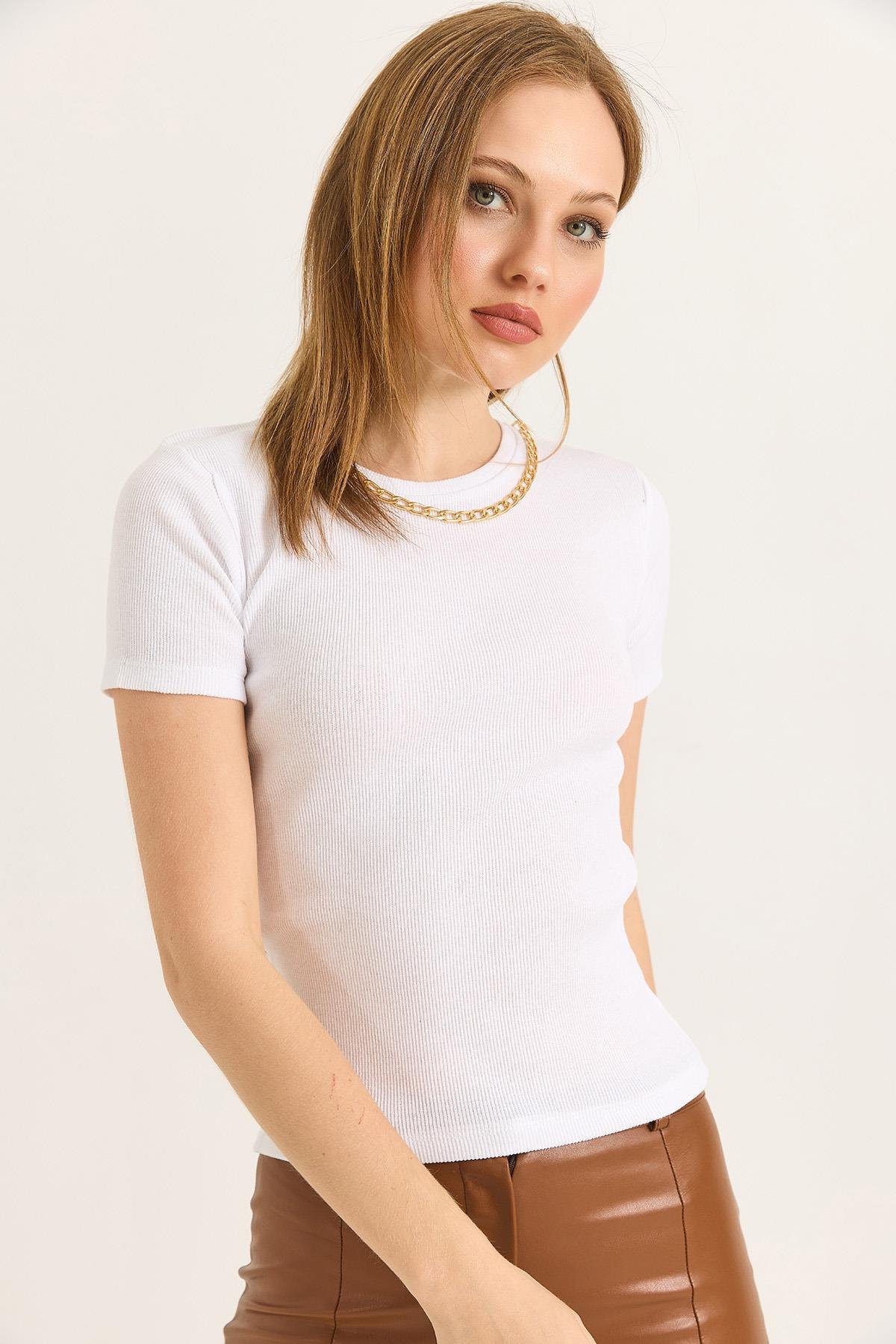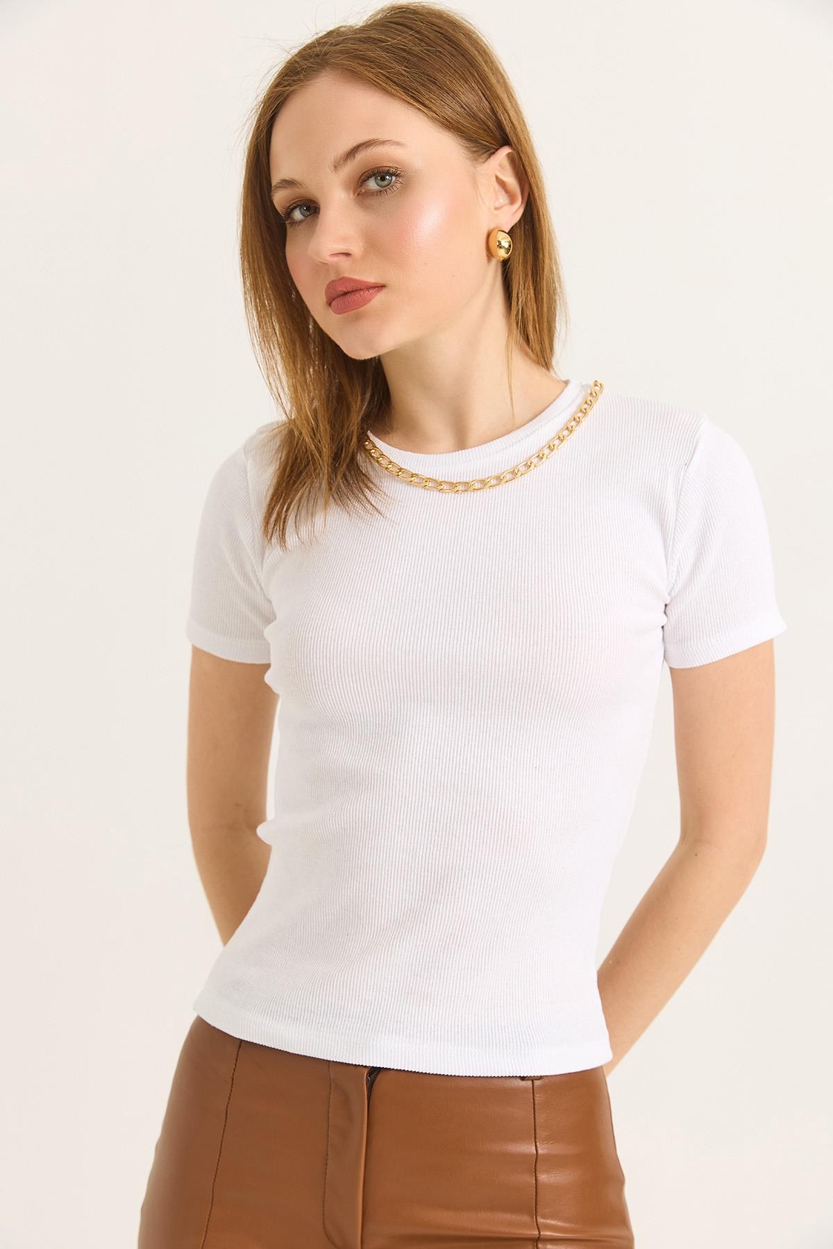 Bisiklet Yaka Zincir Detaylı Kaşkorse Bluz Beyaz (500167BLZXBYZ)