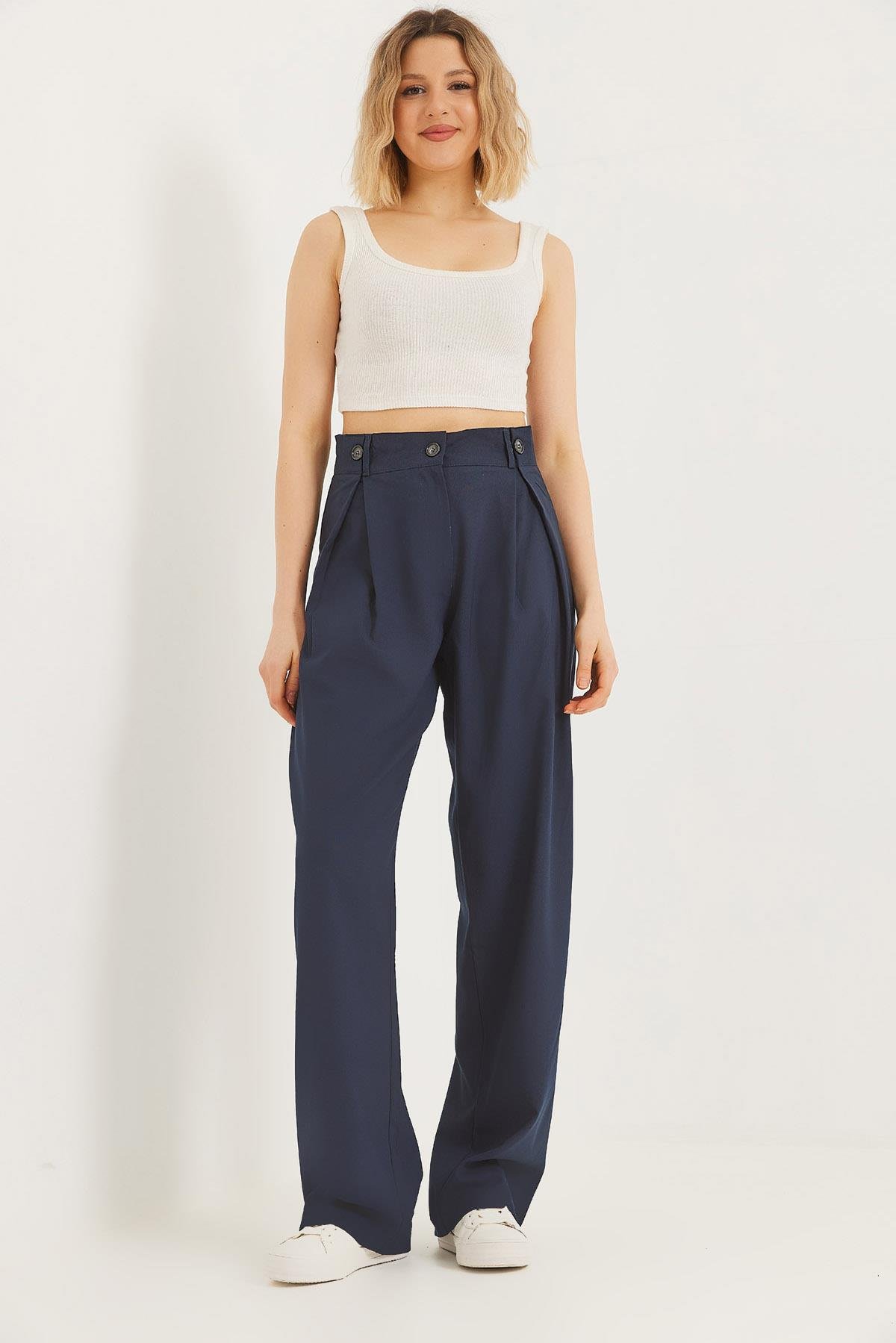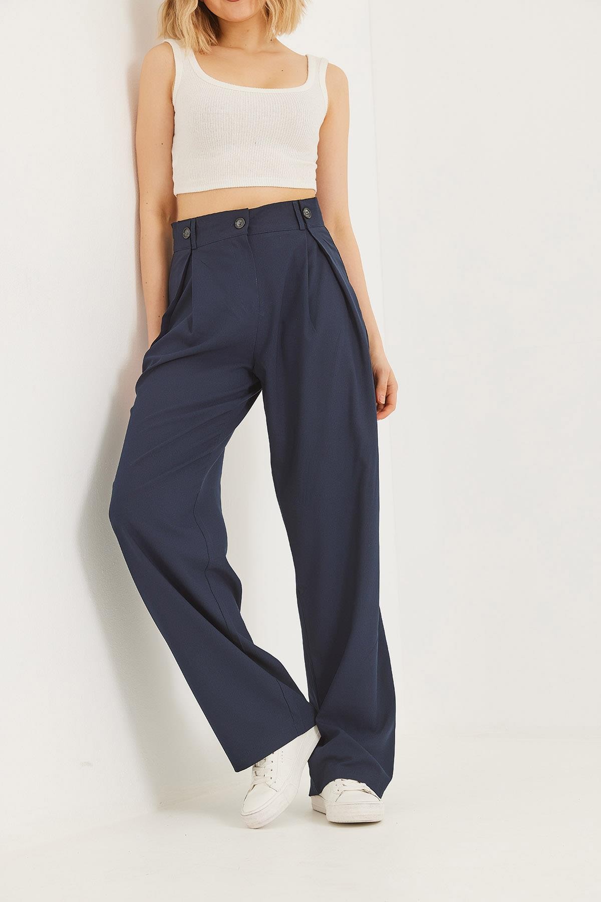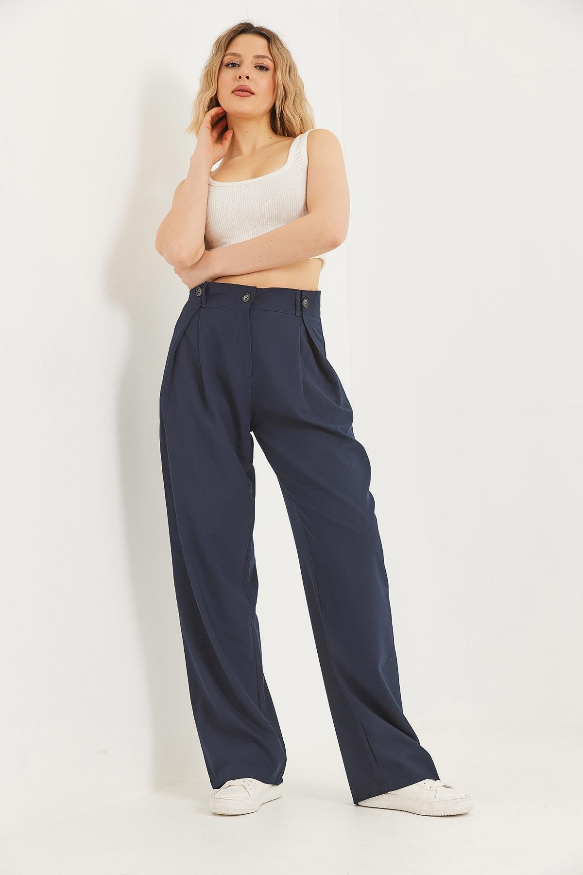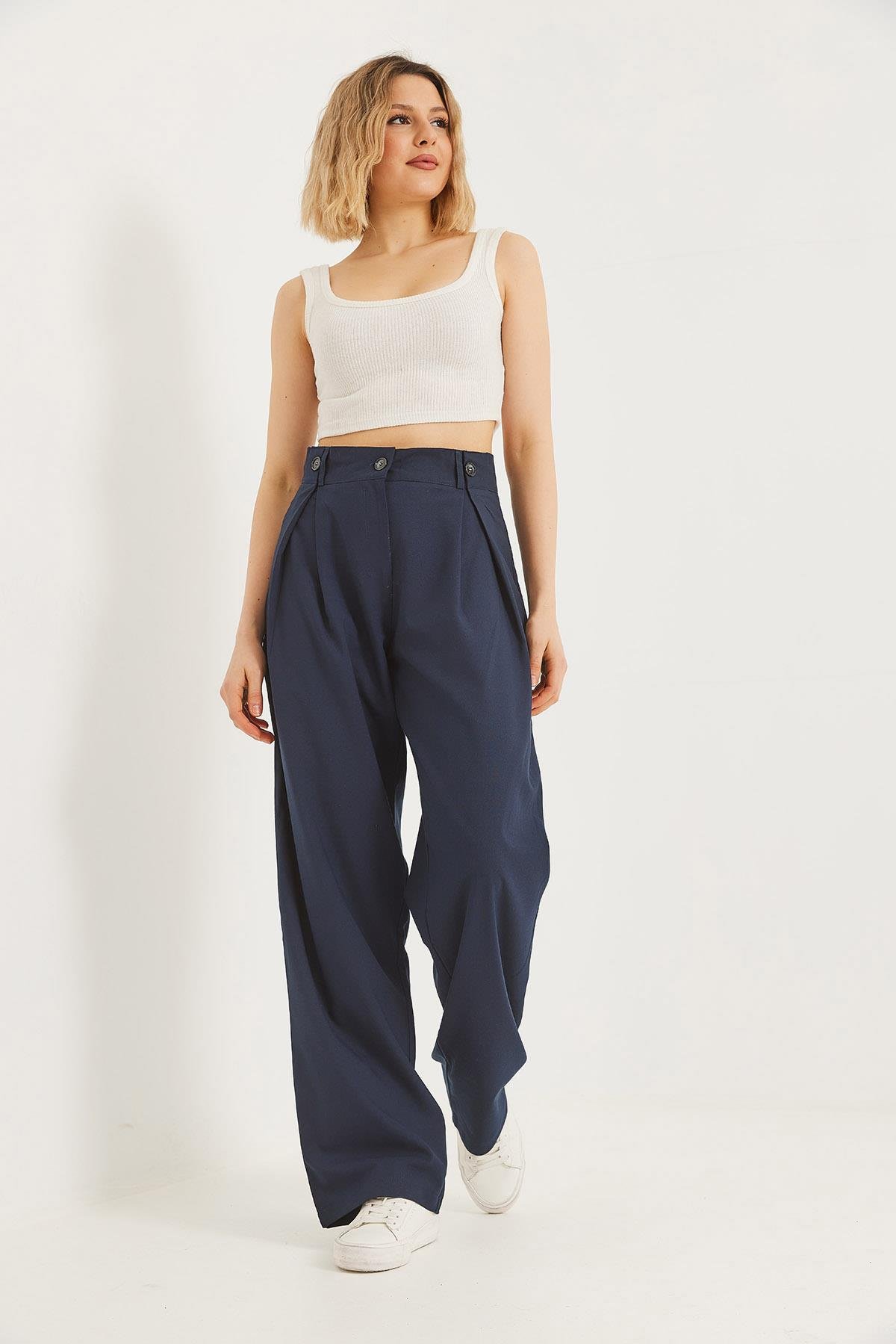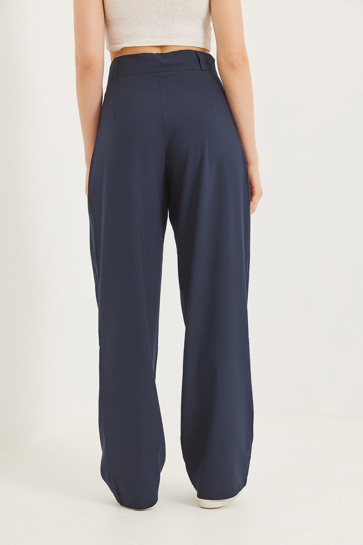 Bol Kesim Dökümlü Palazzo Pantolon Lacivert (250571PNTXLACİ)