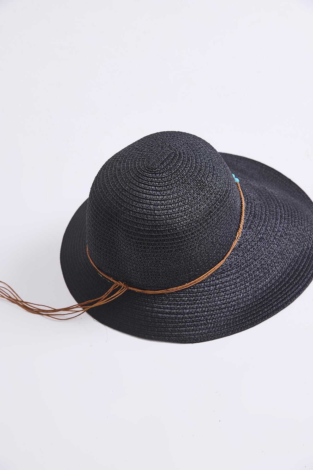 Boncuk Detaylı Hasır Kadın Plaj Şapkası Siyah (250776SPKXSYH)