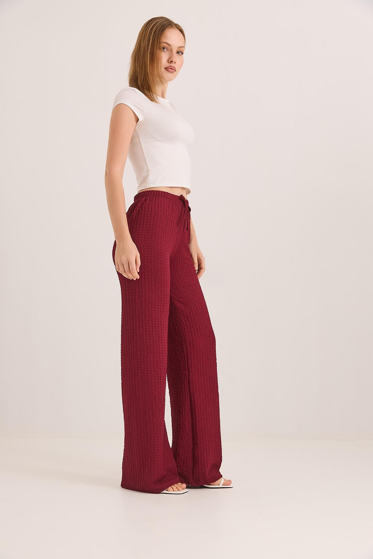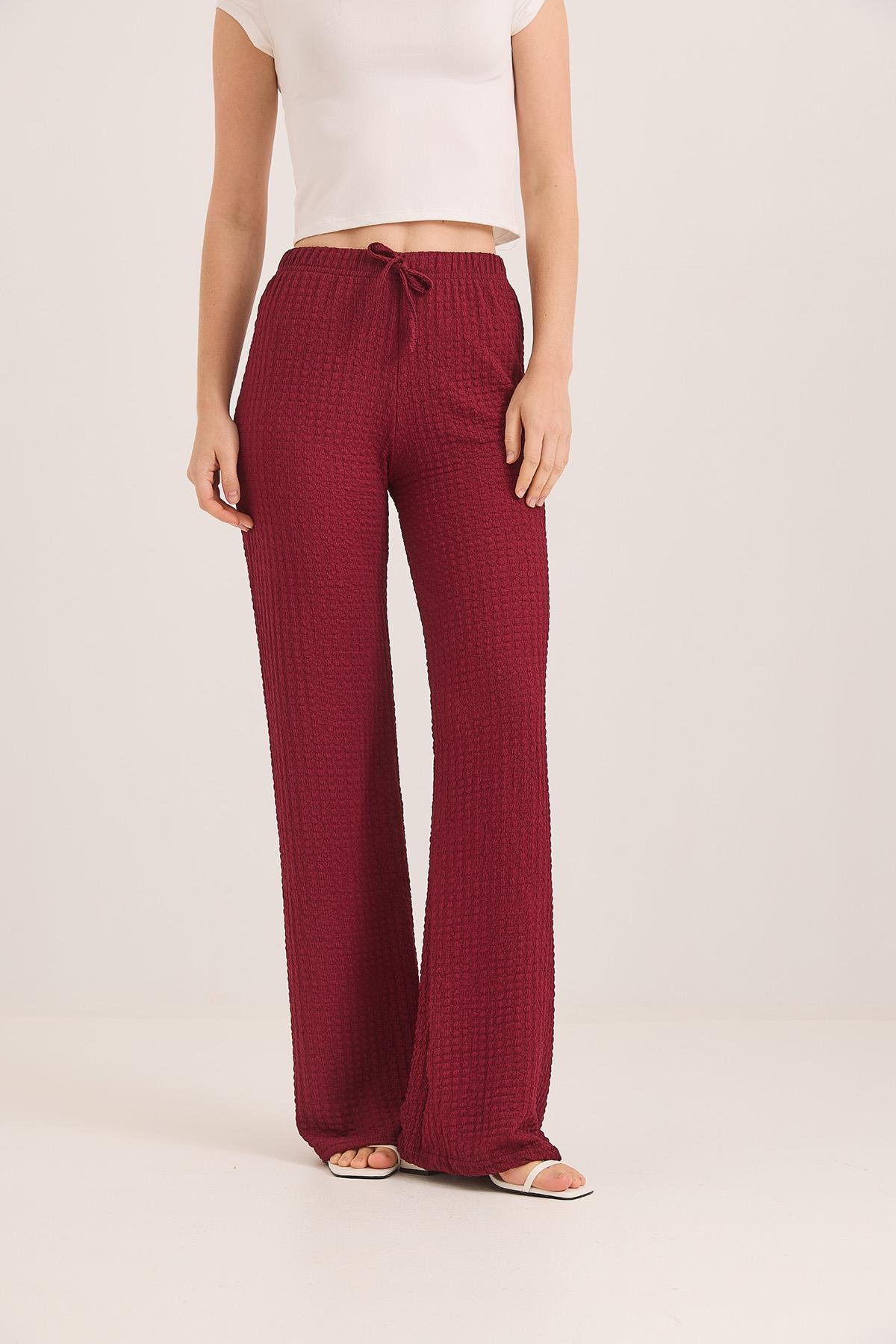 Bubble Örme Kumaş Rahat Kalıp Pantolon Bordo