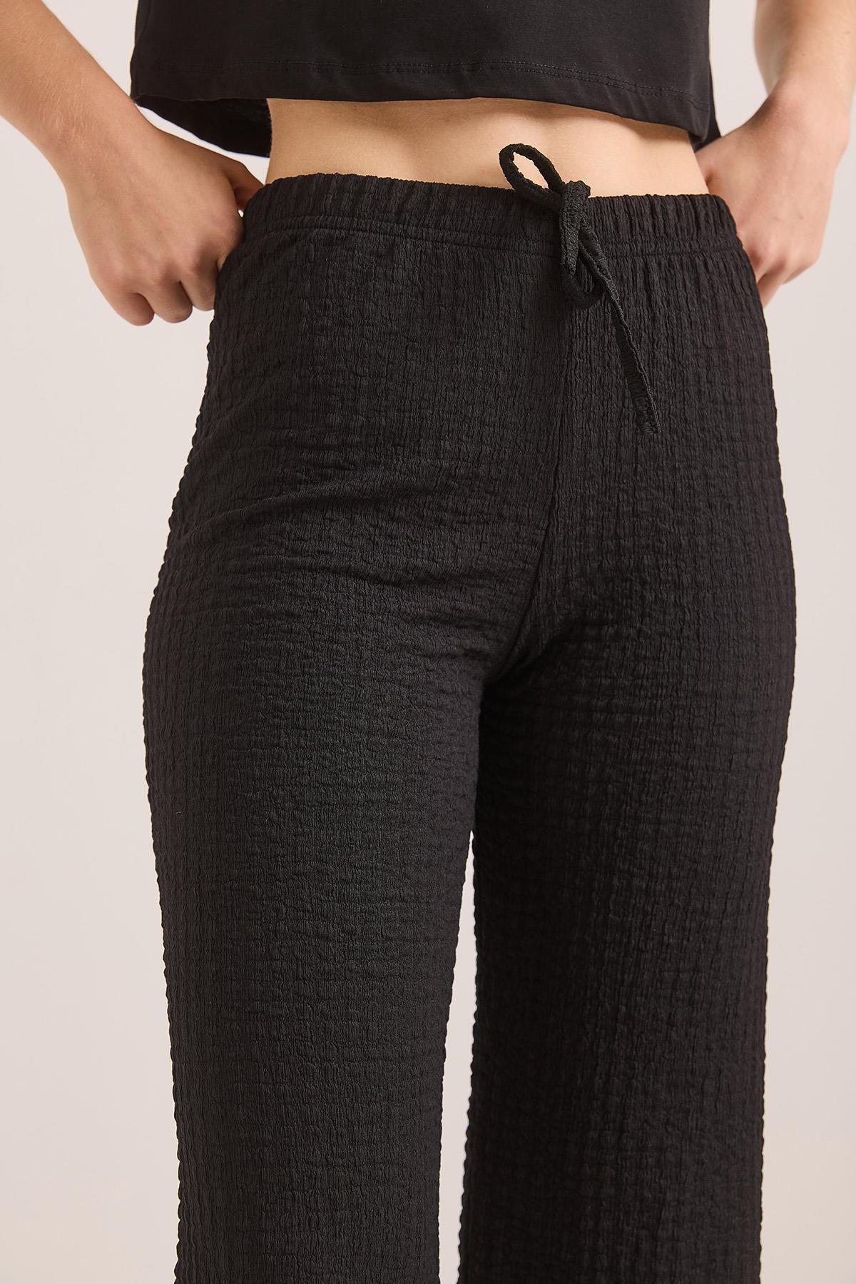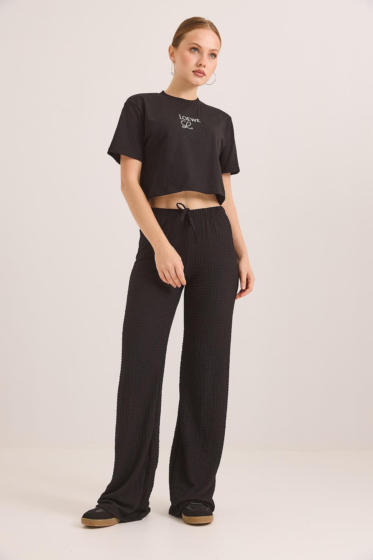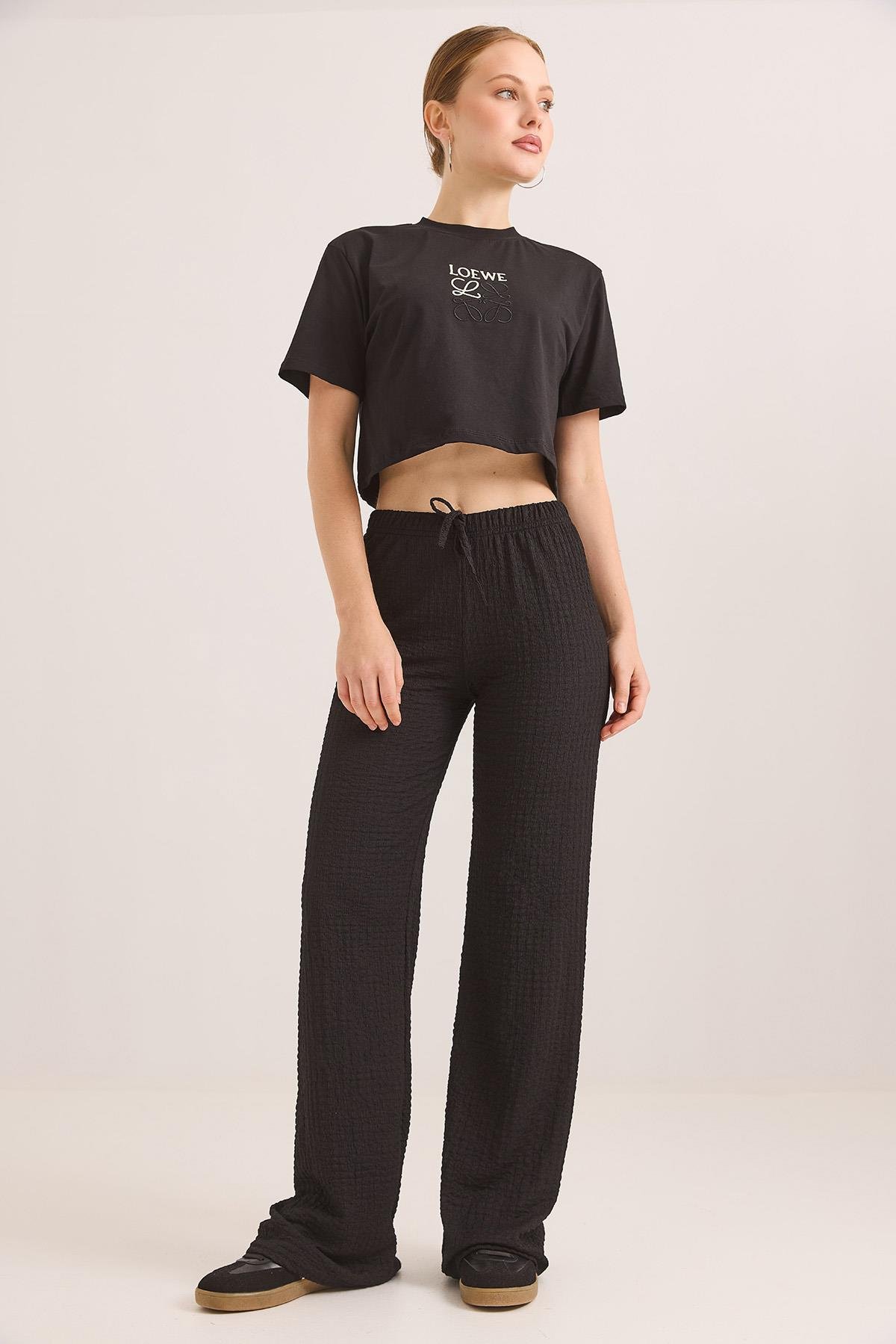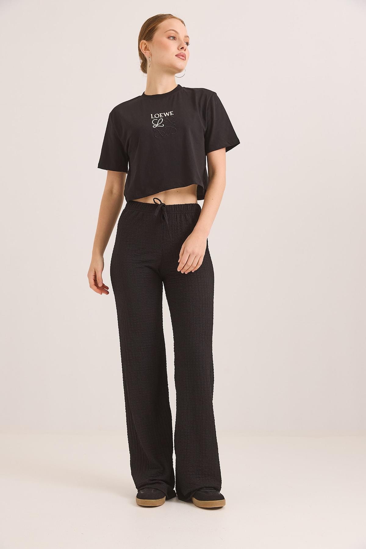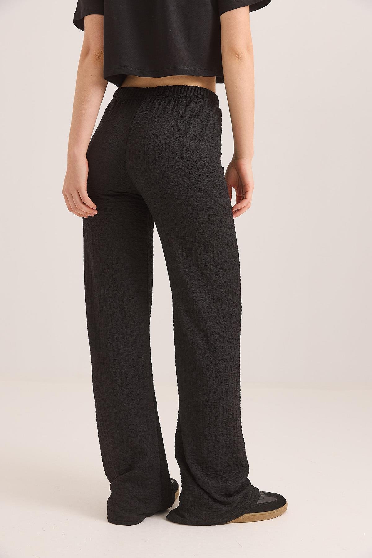 Bubble Örme Kumaş Rahat Kalıp Pantolon Siyah (250723PNTXSYH)