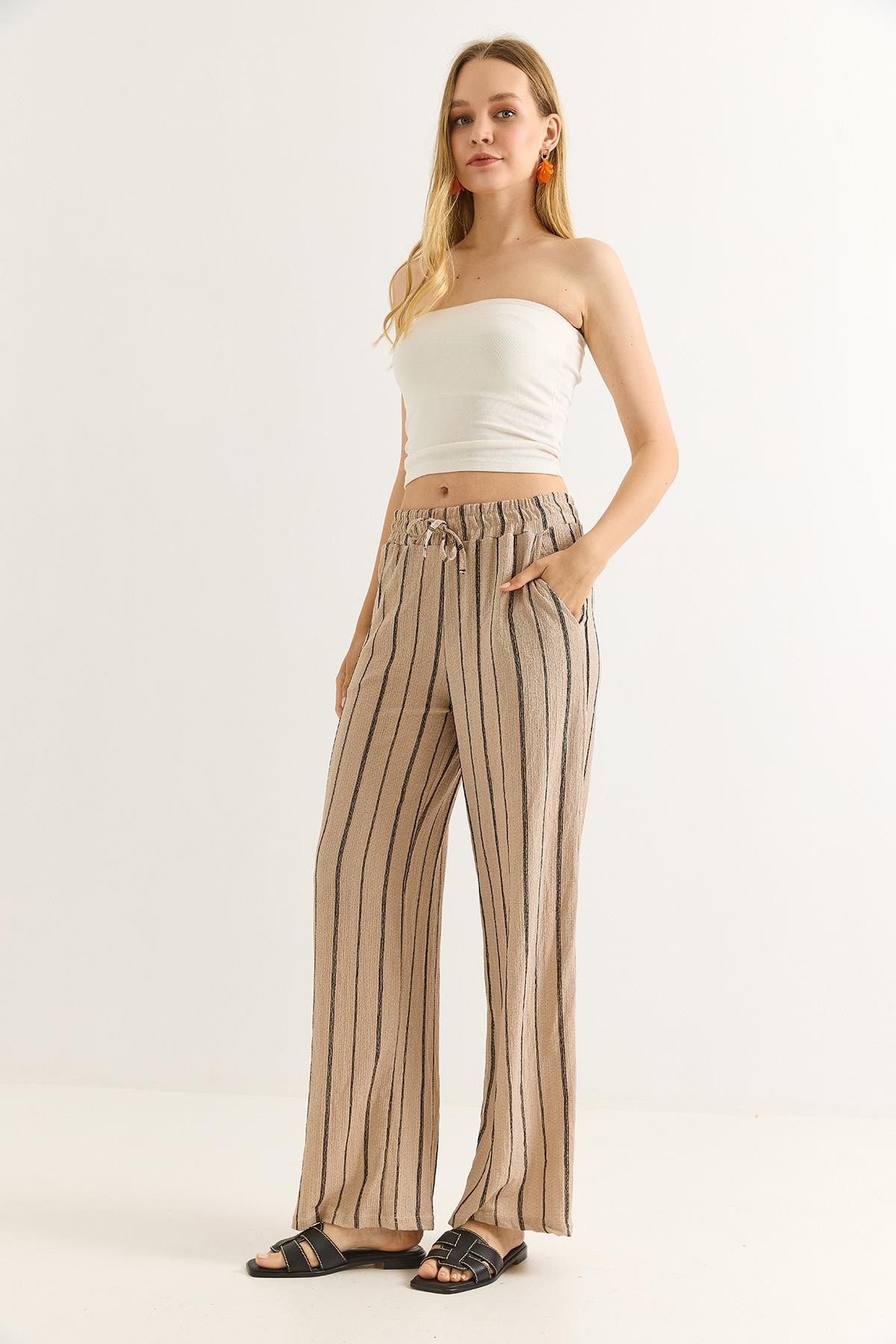 Bürümcük Çizgili Rahat Kesim Pantalon Vizon (500253PNTXVZN)