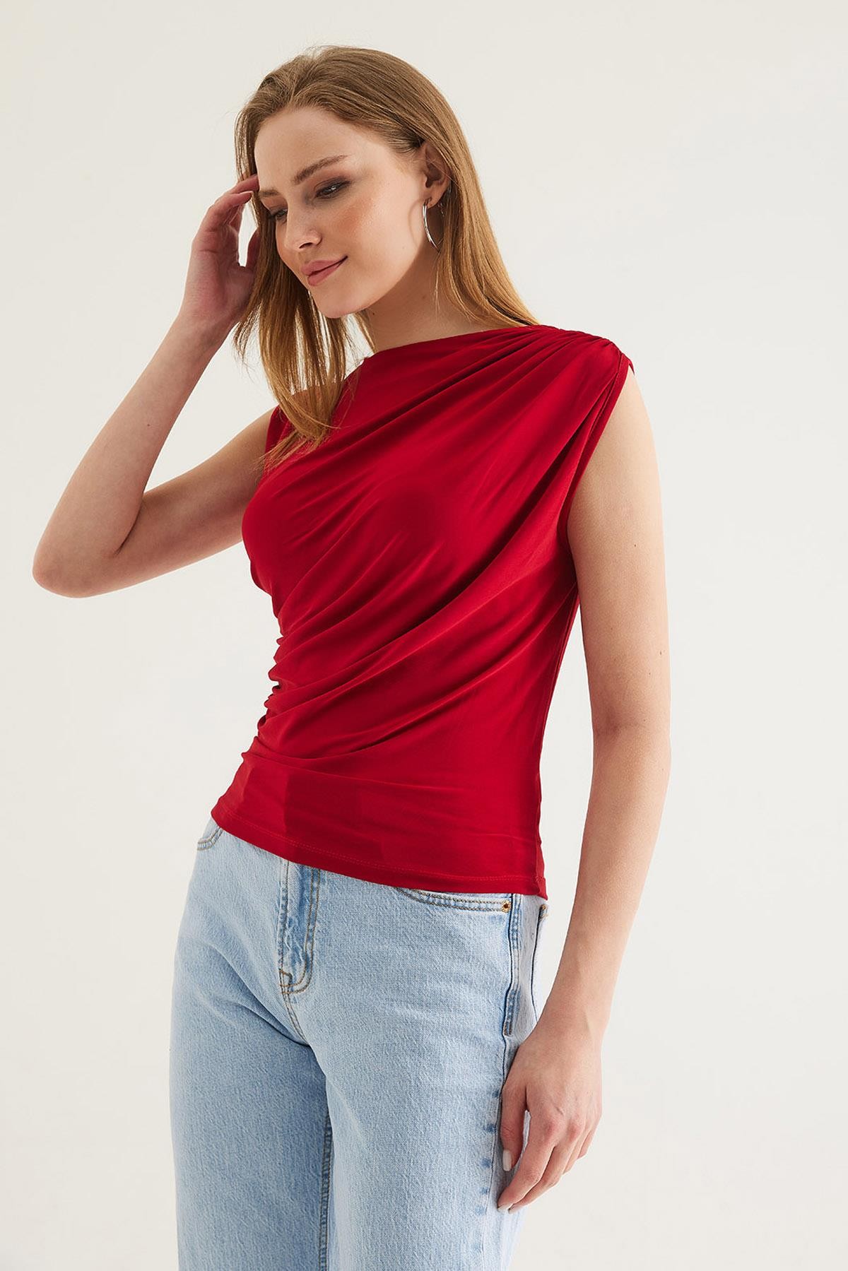 Çapraz Büzgü Detaylı Kolsuz Bluz Bordo