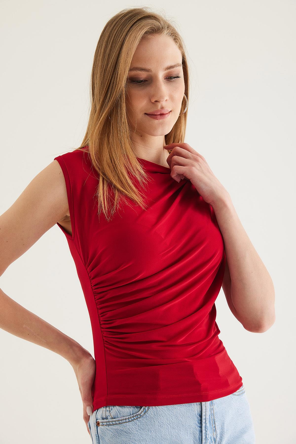 Çapraz Büzgü Detaylı Kolsuz Bluz