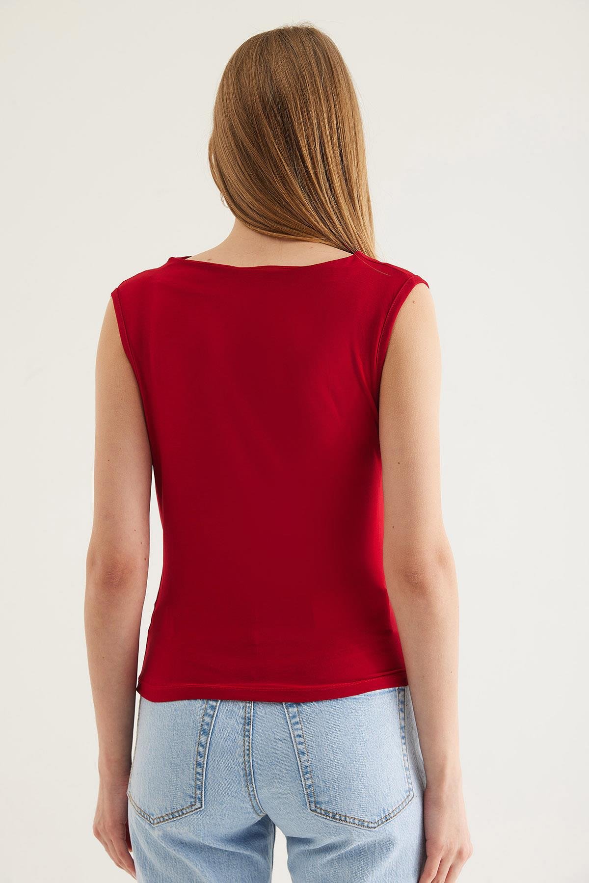 Çapraz Büzgü Detaylı Kolsuz Bluz Bordo (250463BLZXBRD)
