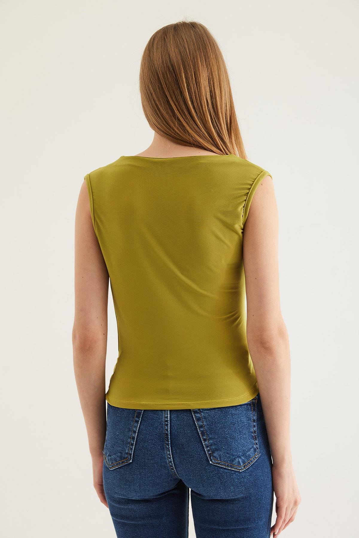 Çapraz Büzgü Detaylı Kolsuz Bluz Yeşil