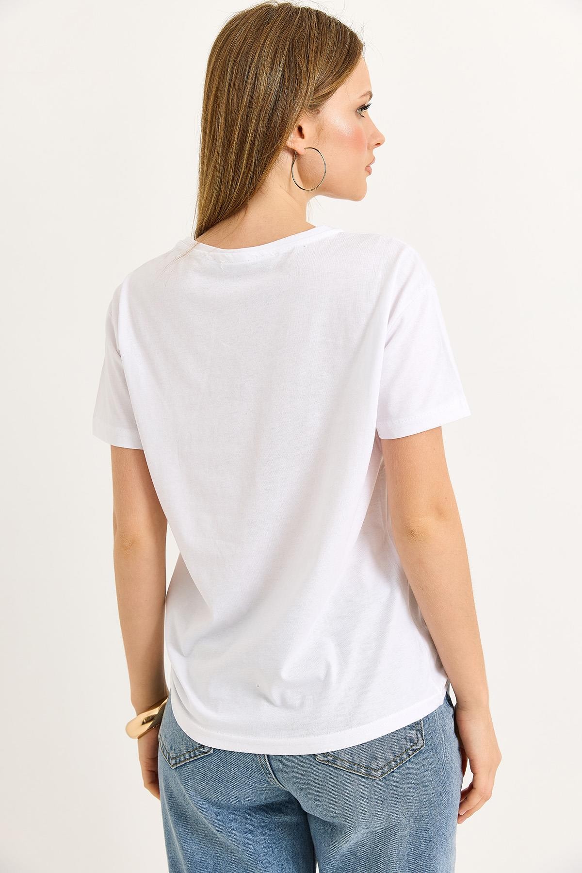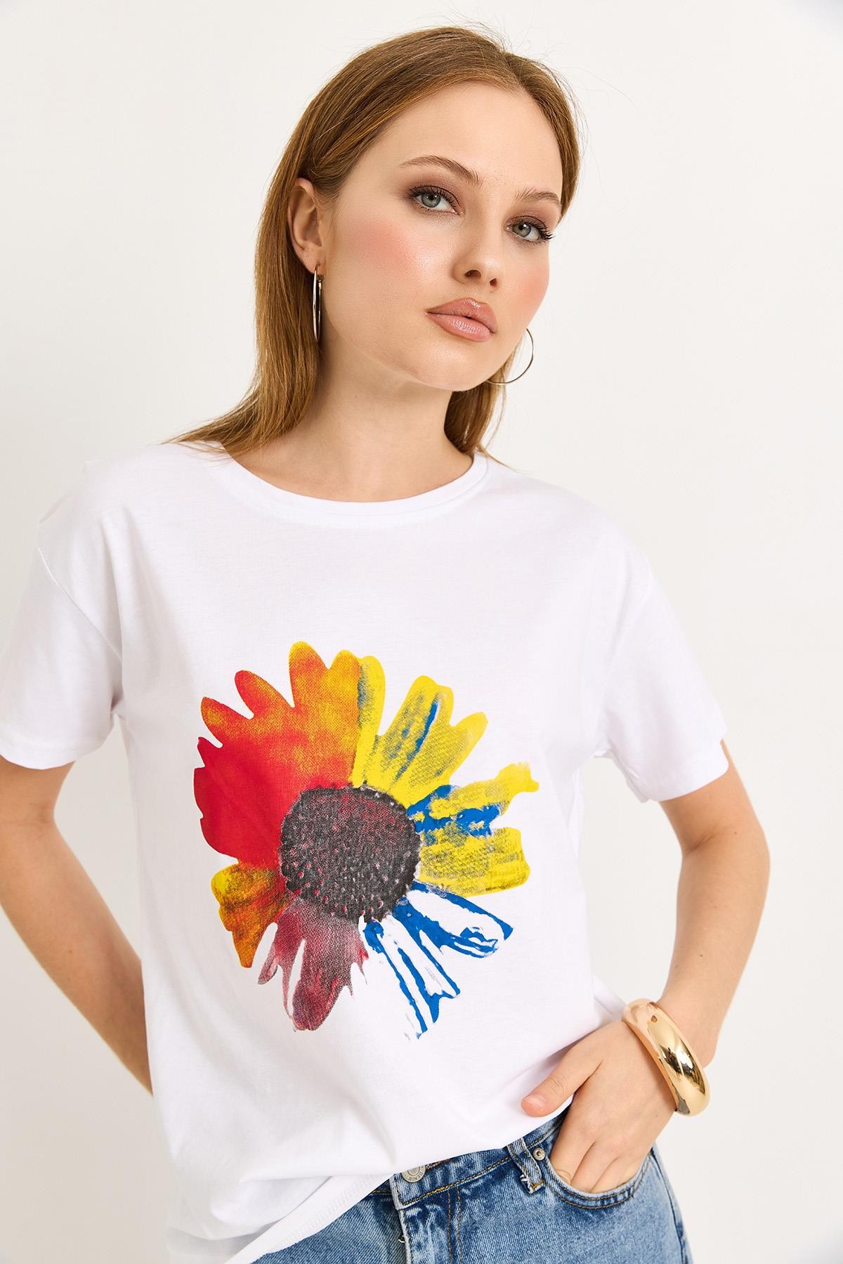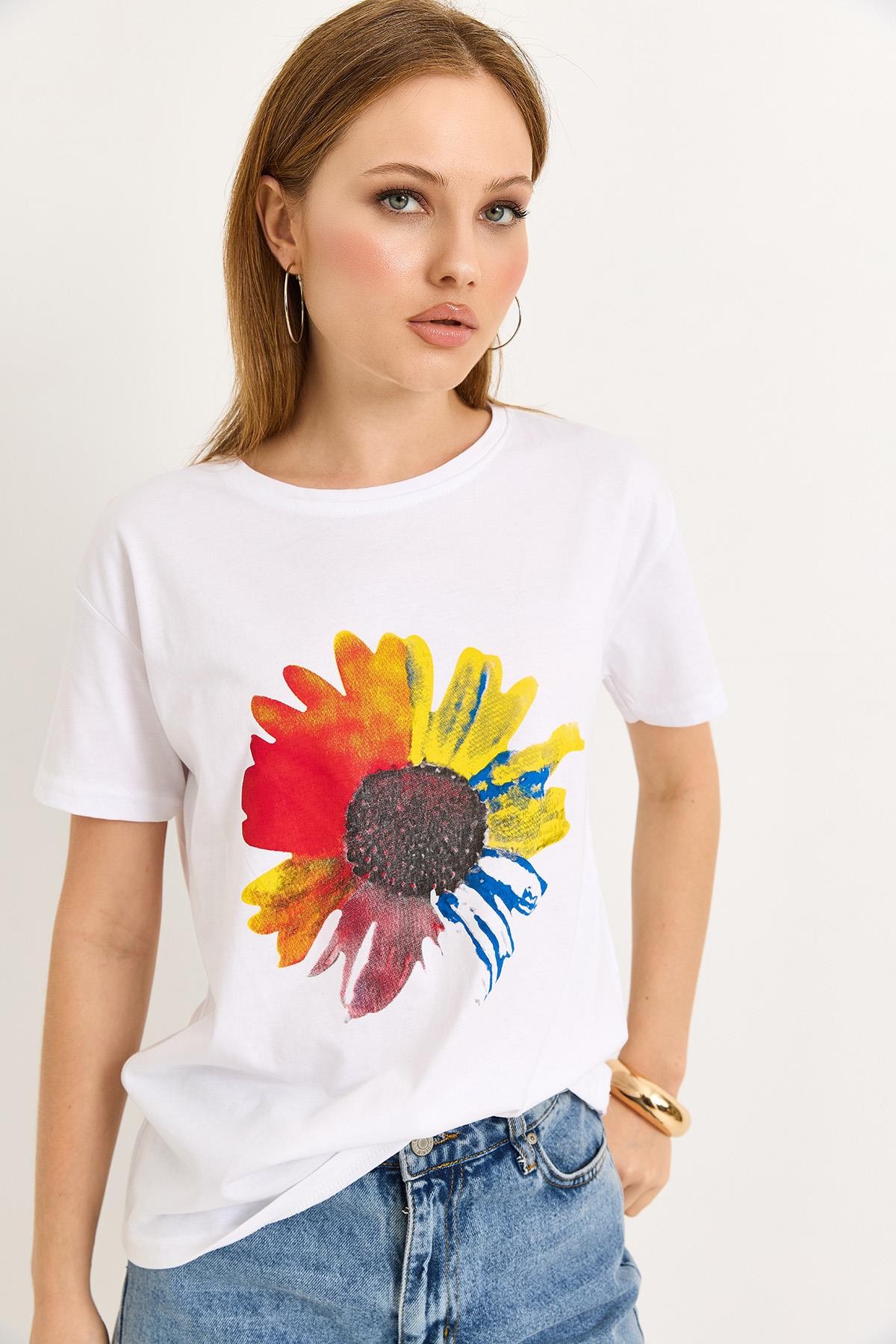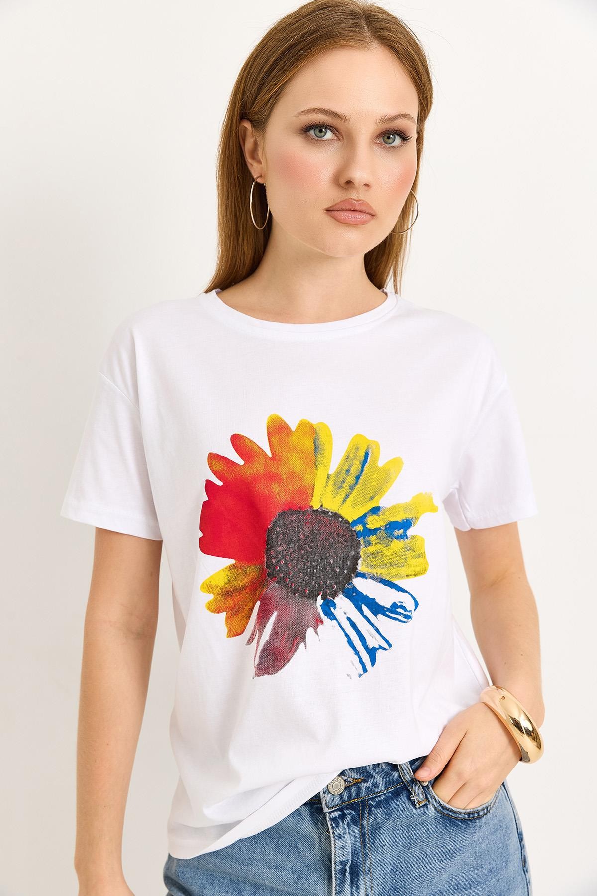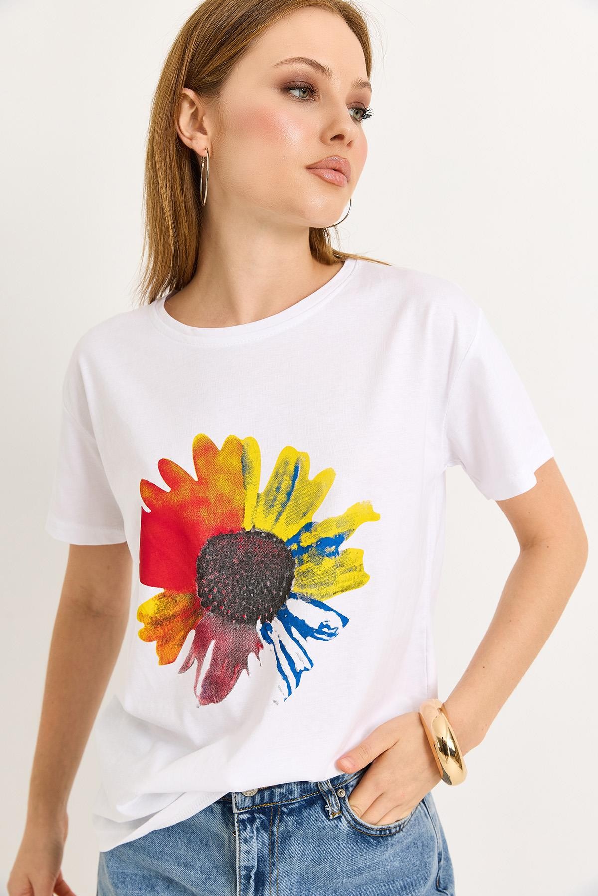 Çiçek Baskılı Pamuk Örme Tshirt (500192TSXBYZ)