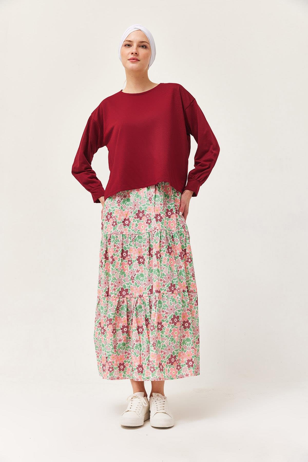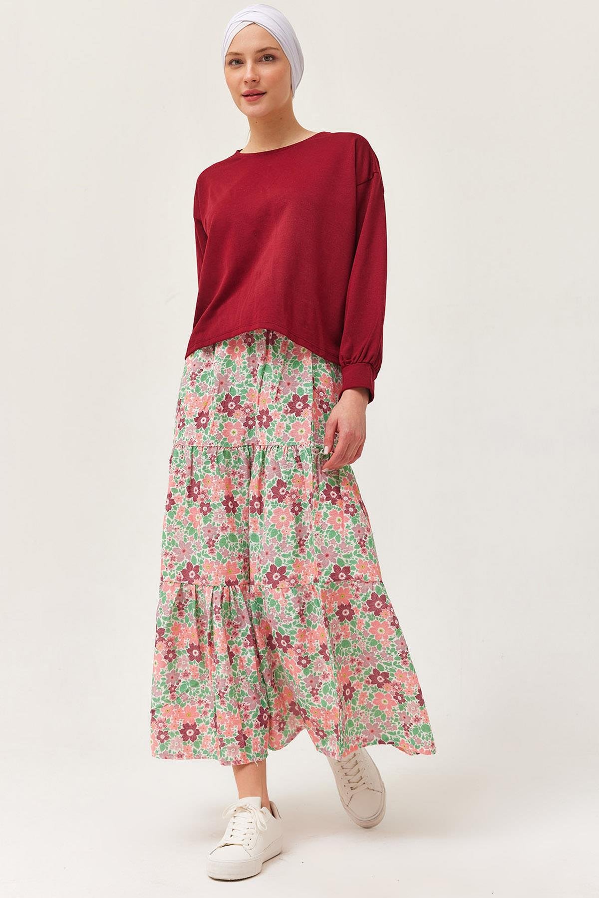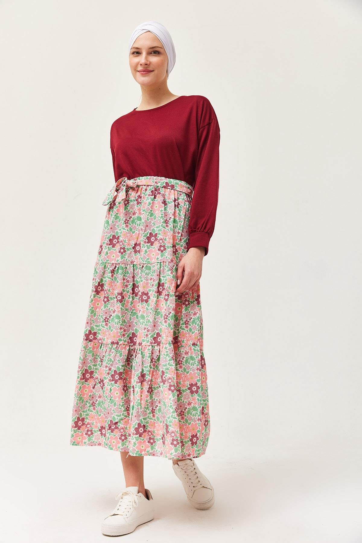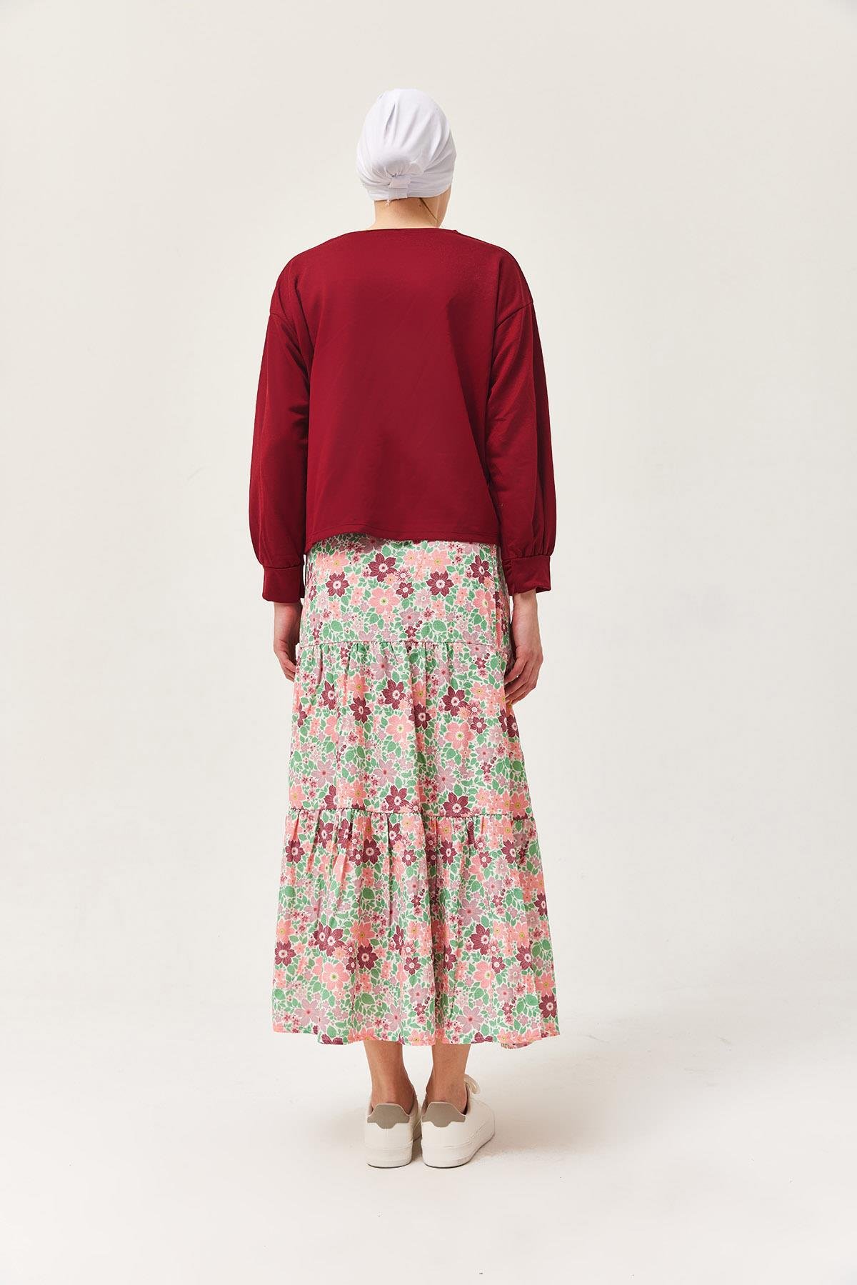 Çiçek Desenli Etekli İkili Takım Bordo (250406TKMXBRD)