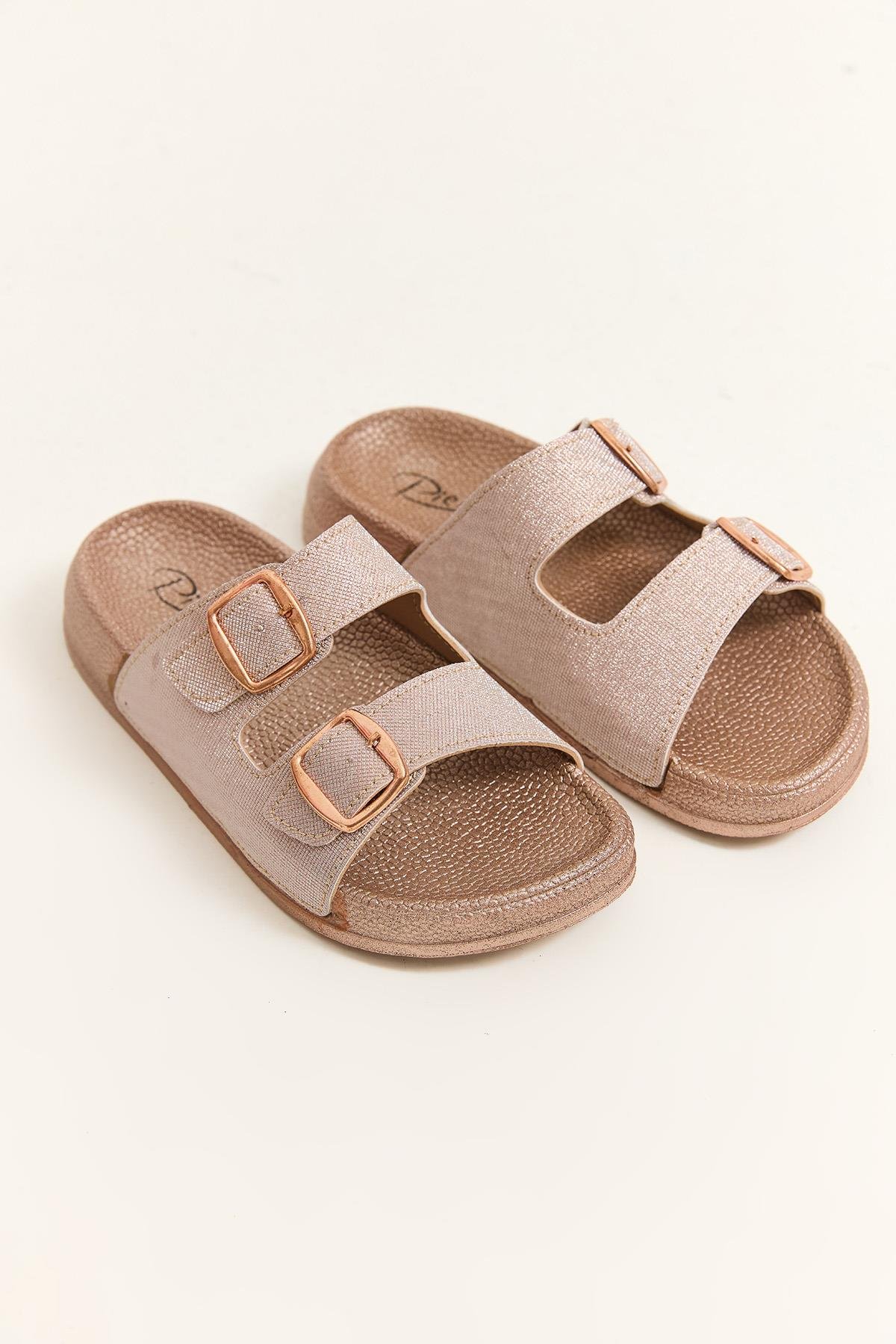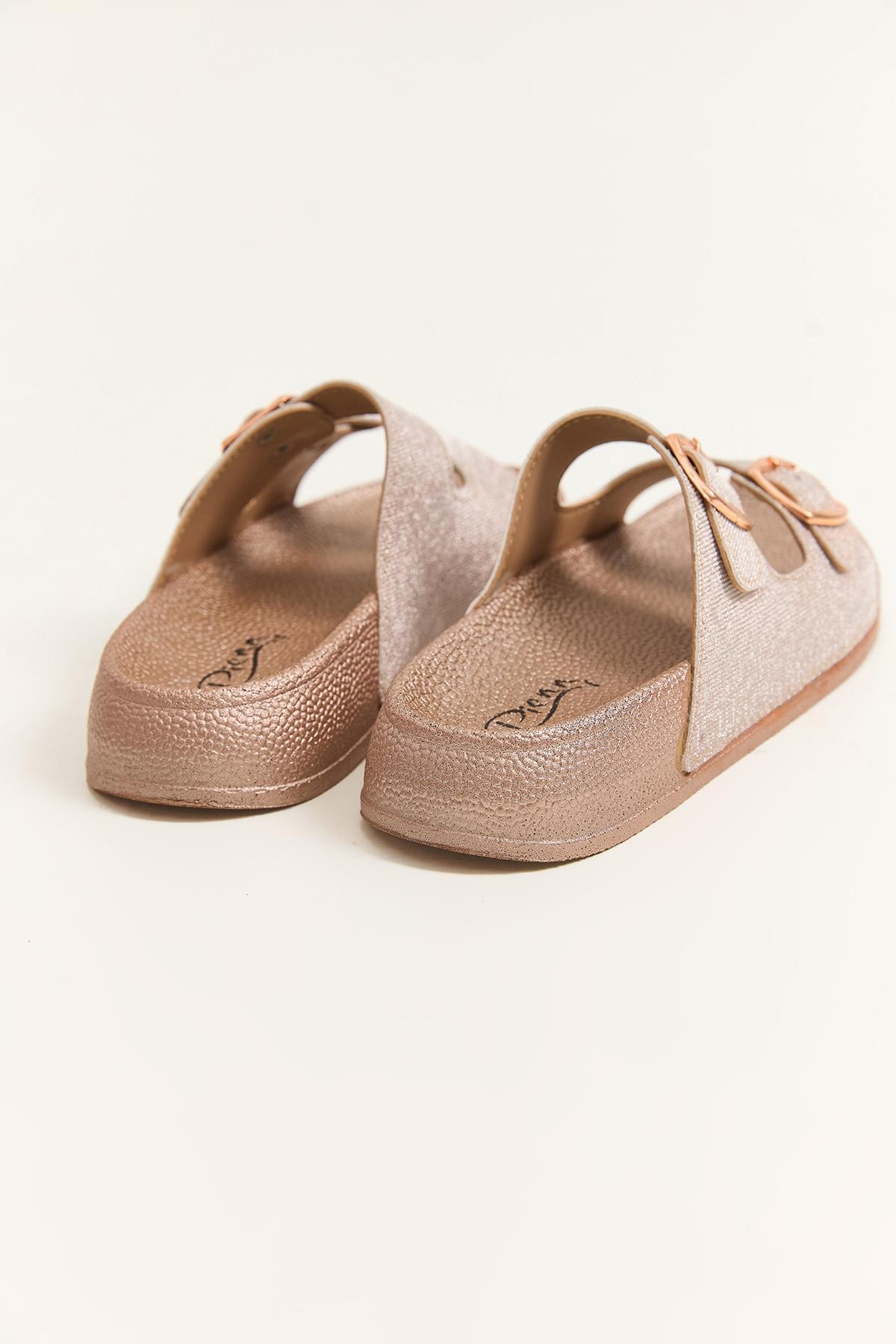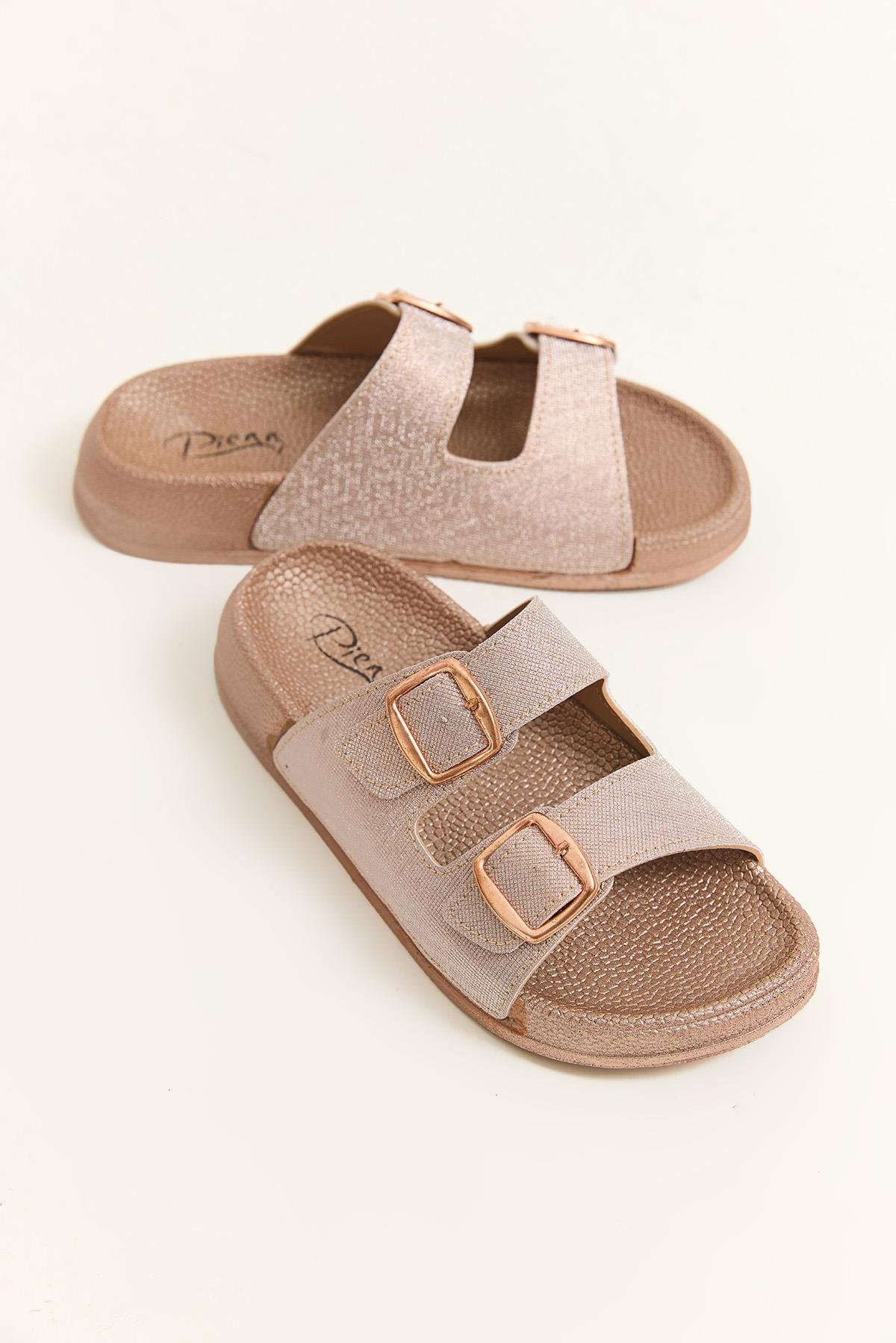 Çift Bant Tokalı Rahat Taban Terlik Pudra