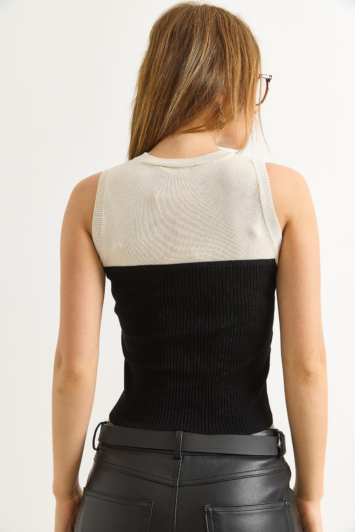 Çift Renk Bisiklet Yaka Triko Bluz Siyah (251050BLZXSYH)
