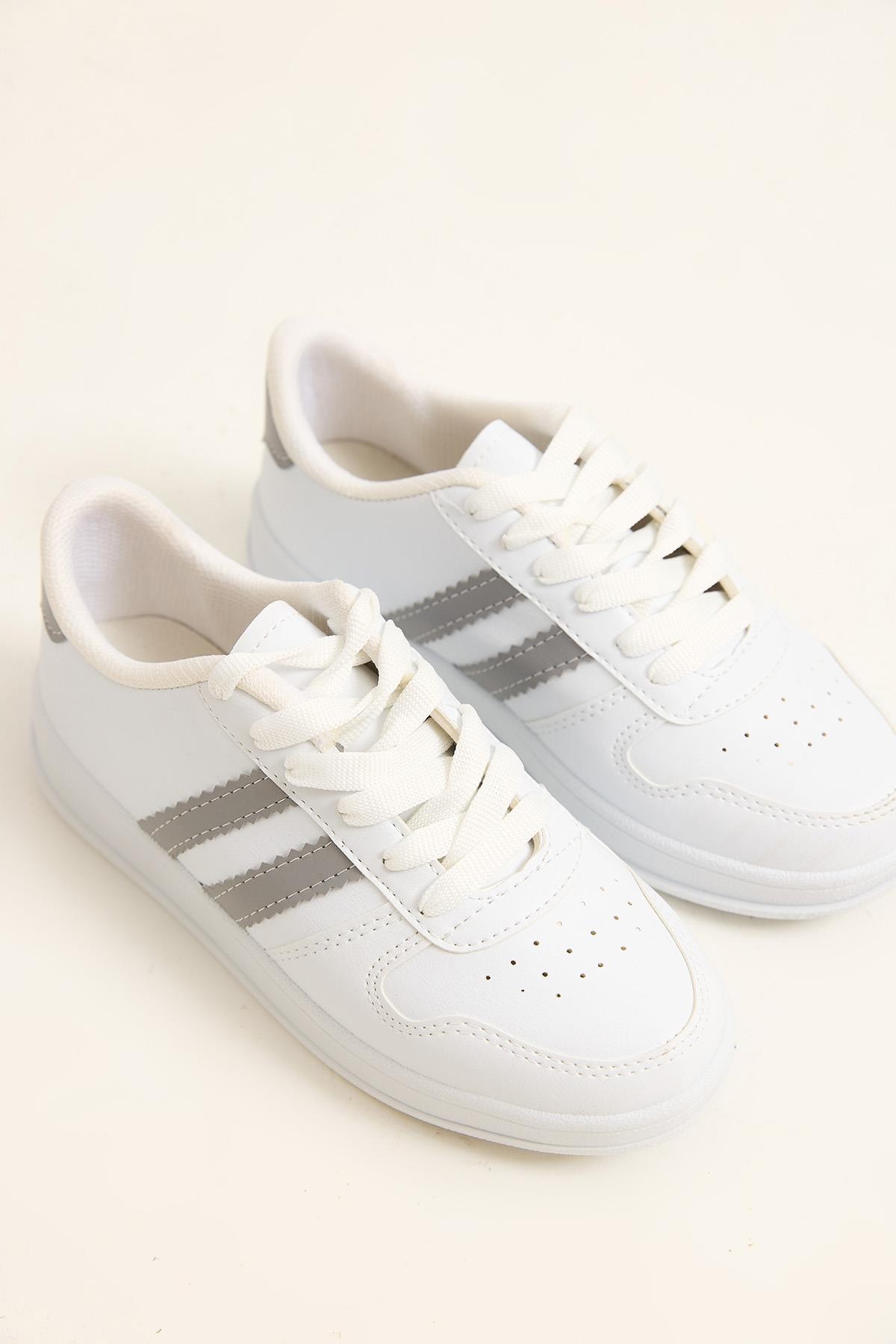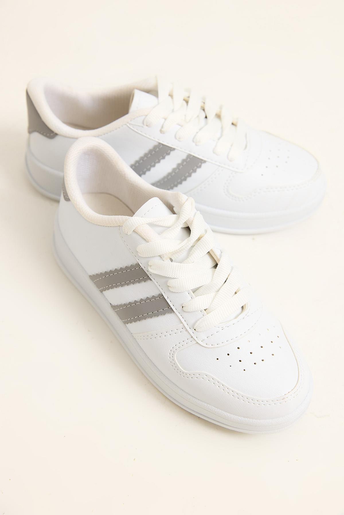 Çift Şerit Bağcıklı Spor Ayakkabı Gri (252104AYKXBG)