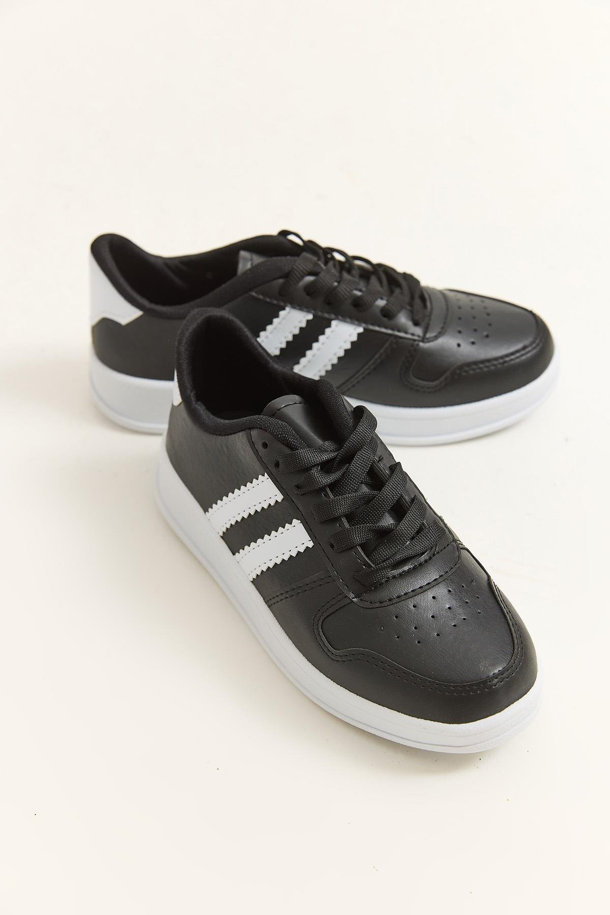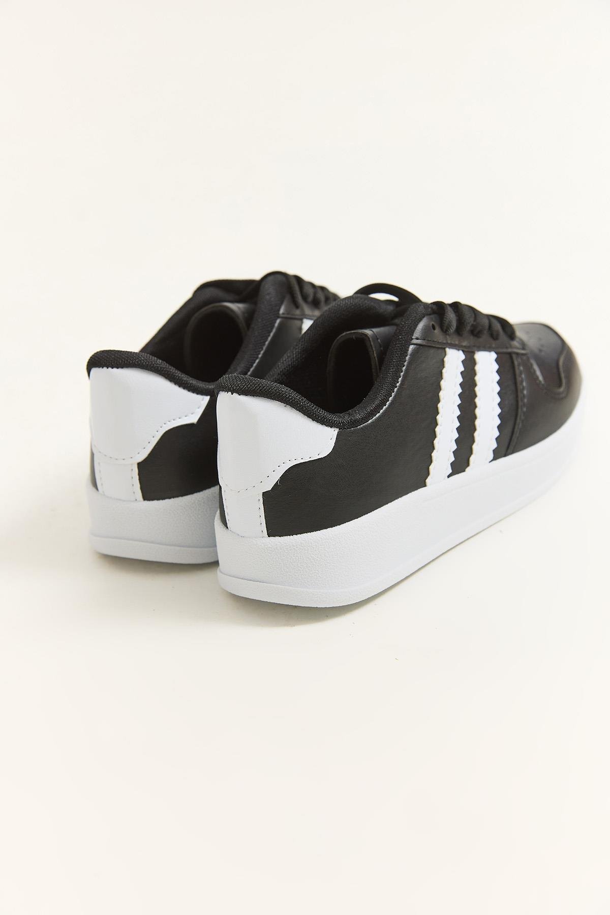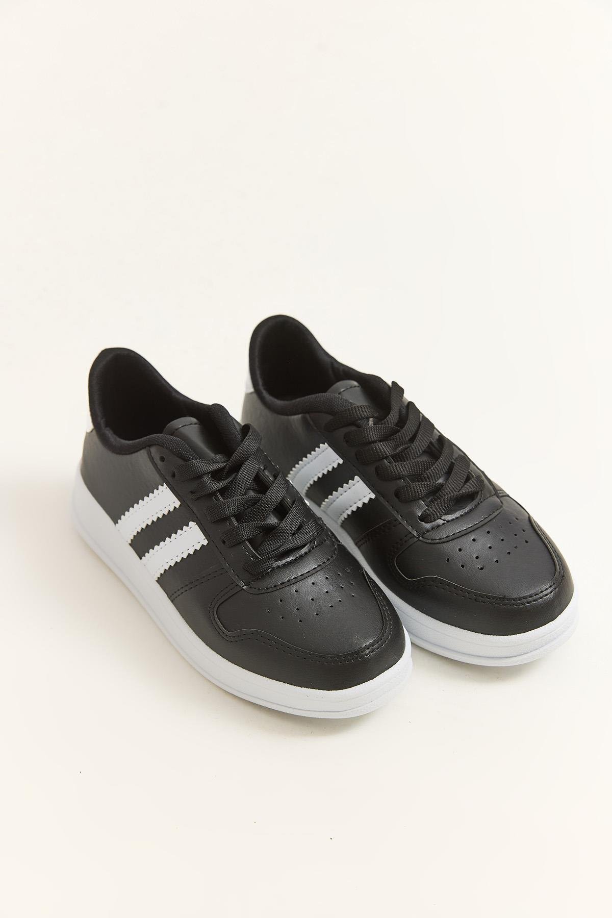 Çift Şerit Bağcıklı Spor Ayakkabı Siyah (252104AYKXSYH)