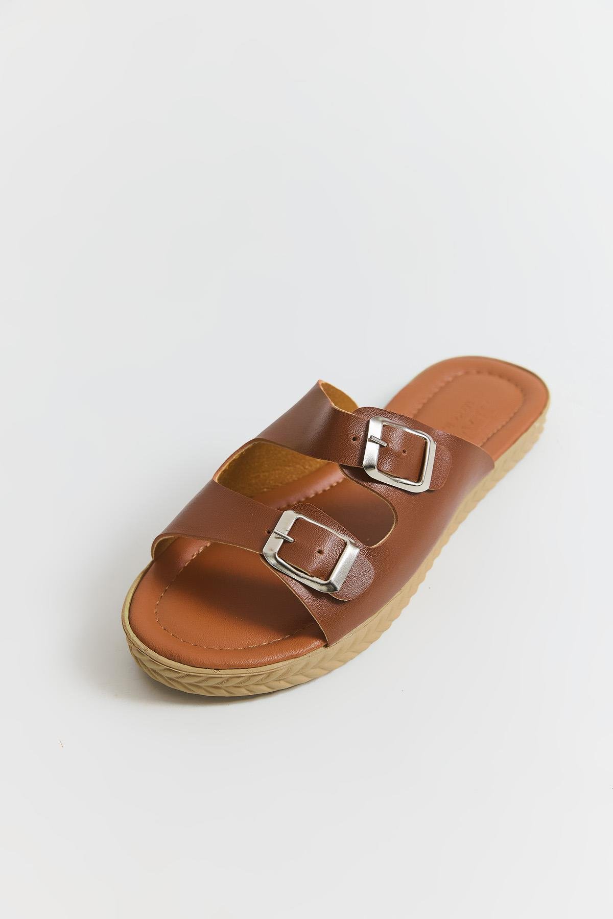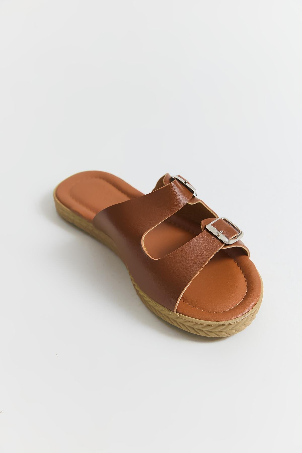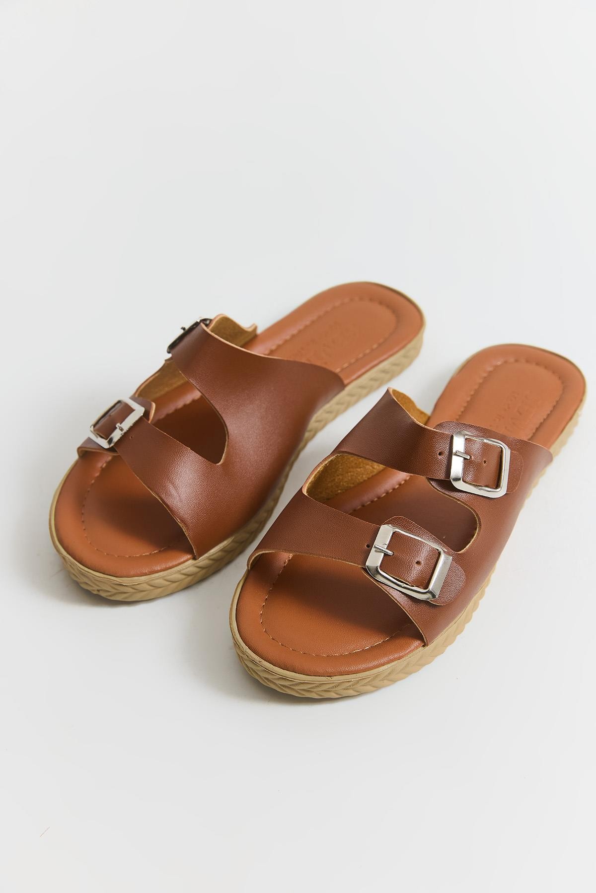 Çift Tokalı Yumuşak Taban Kadın Terlik Taba (250904TRLXTBA)
