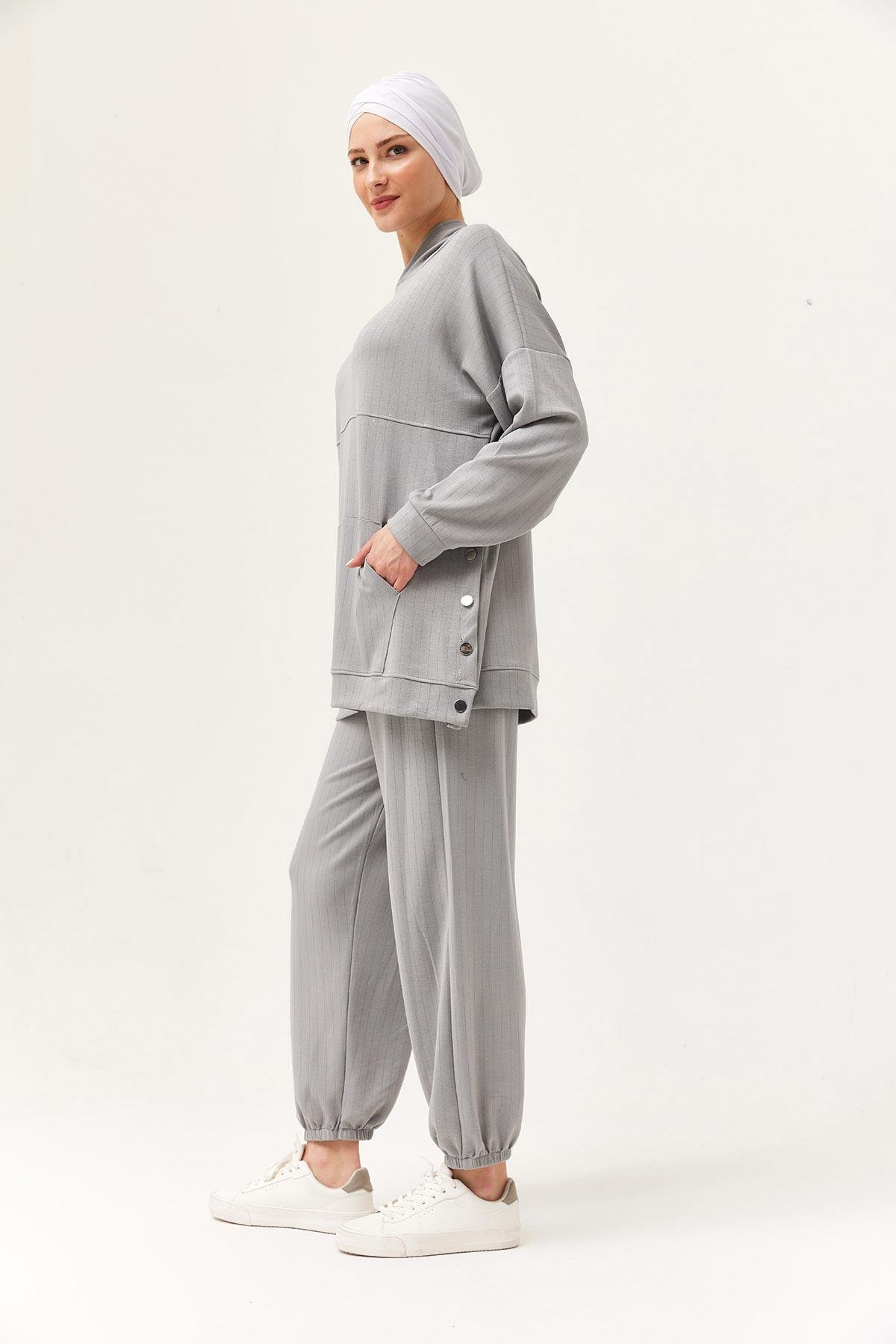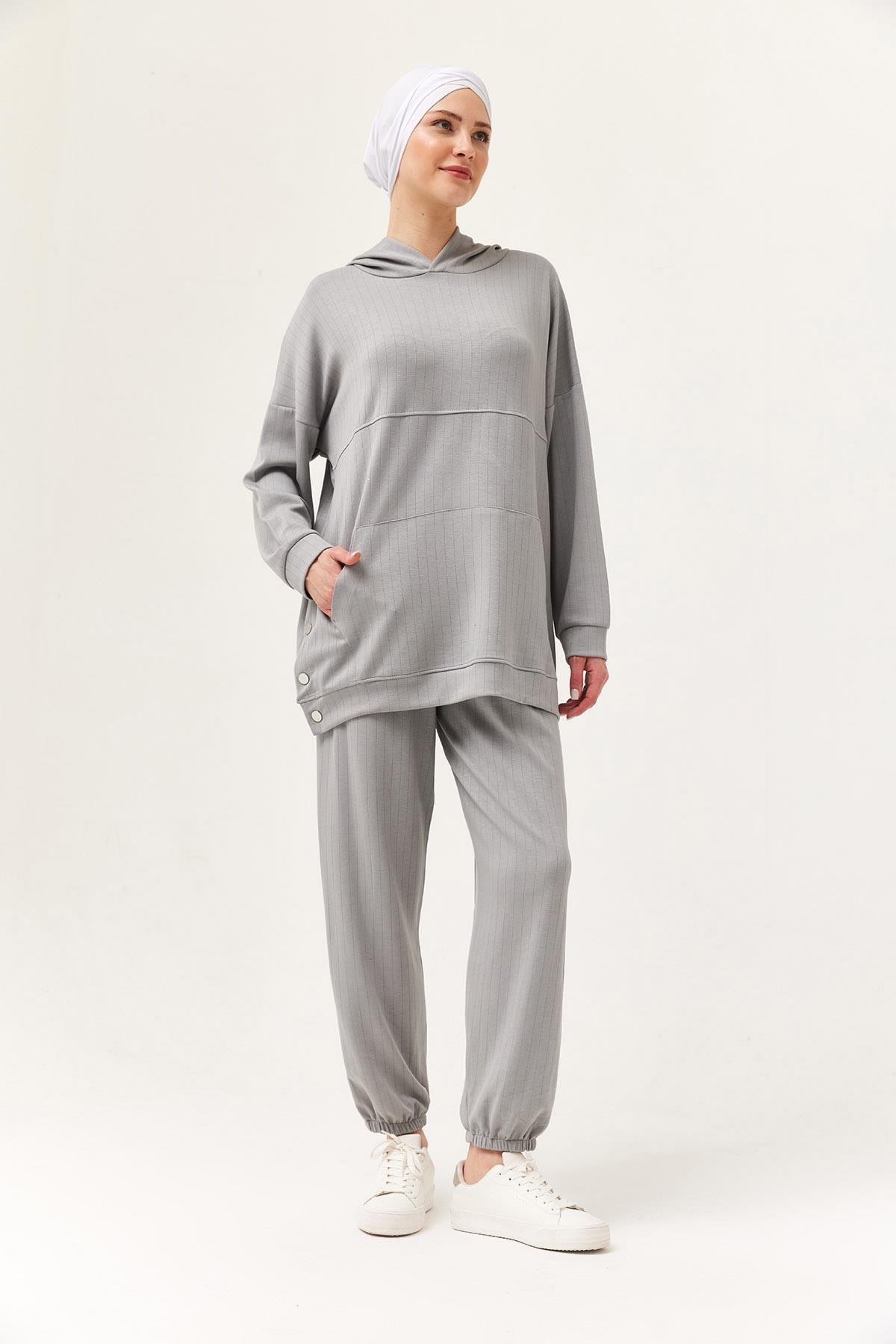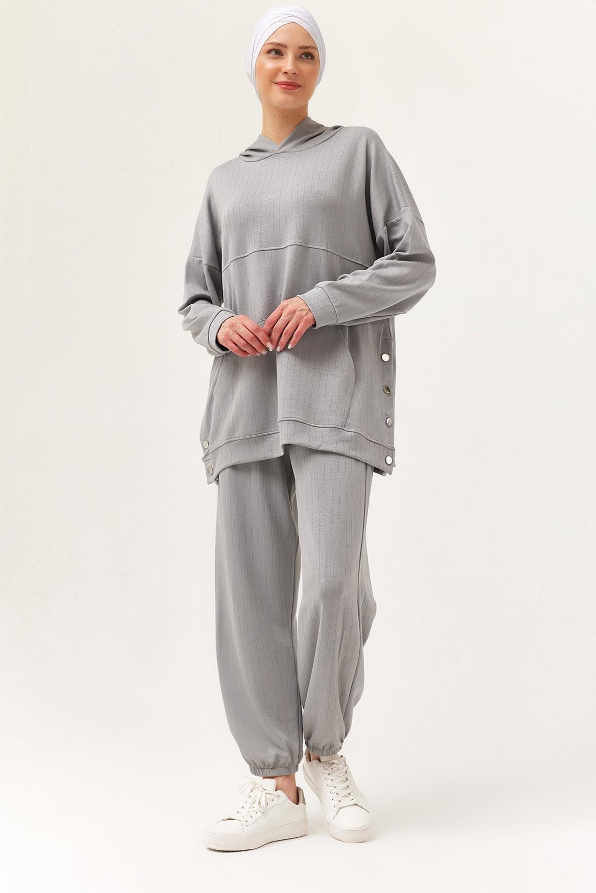 Çıtçıt Detay Kapüşonlu İkili Takım Gri (250396TKMXGRİ)