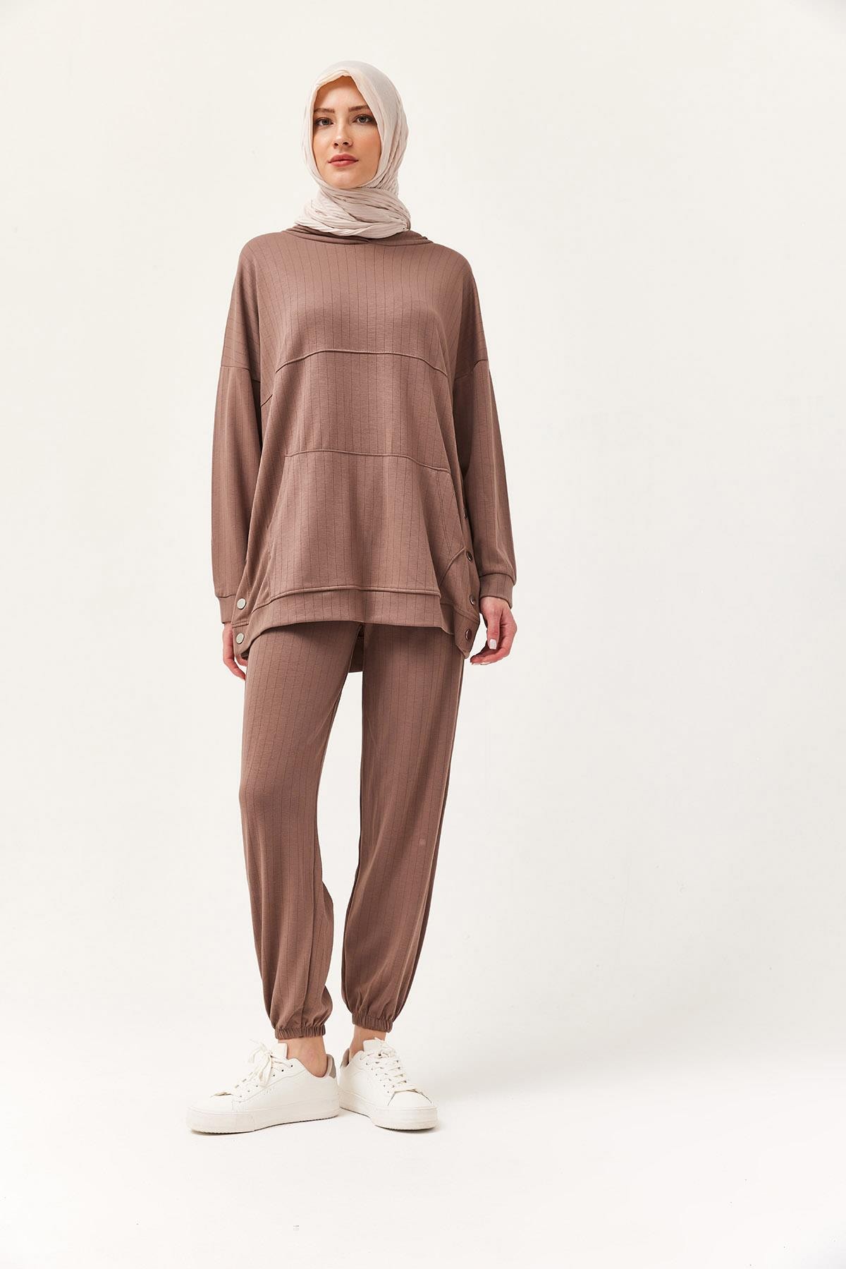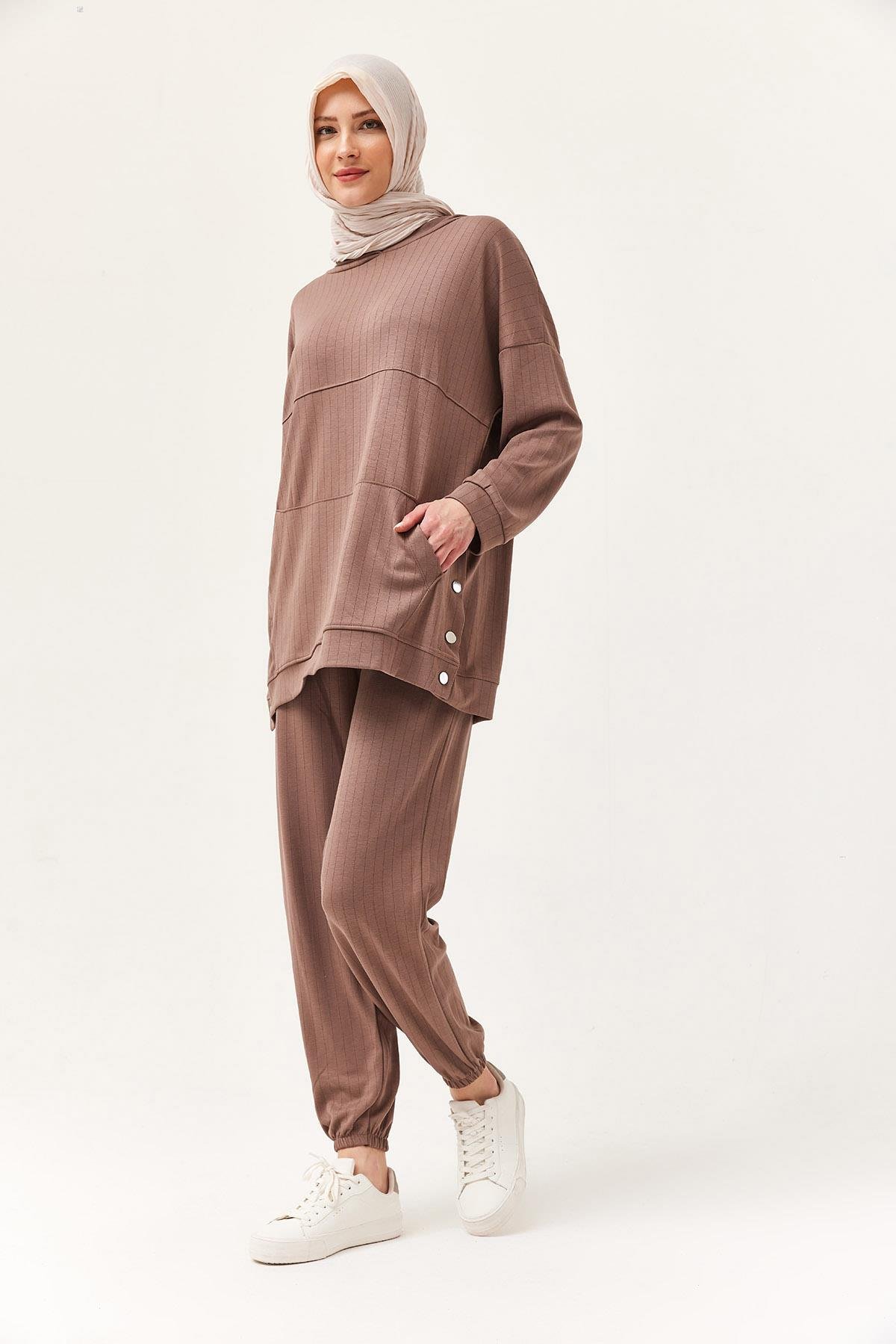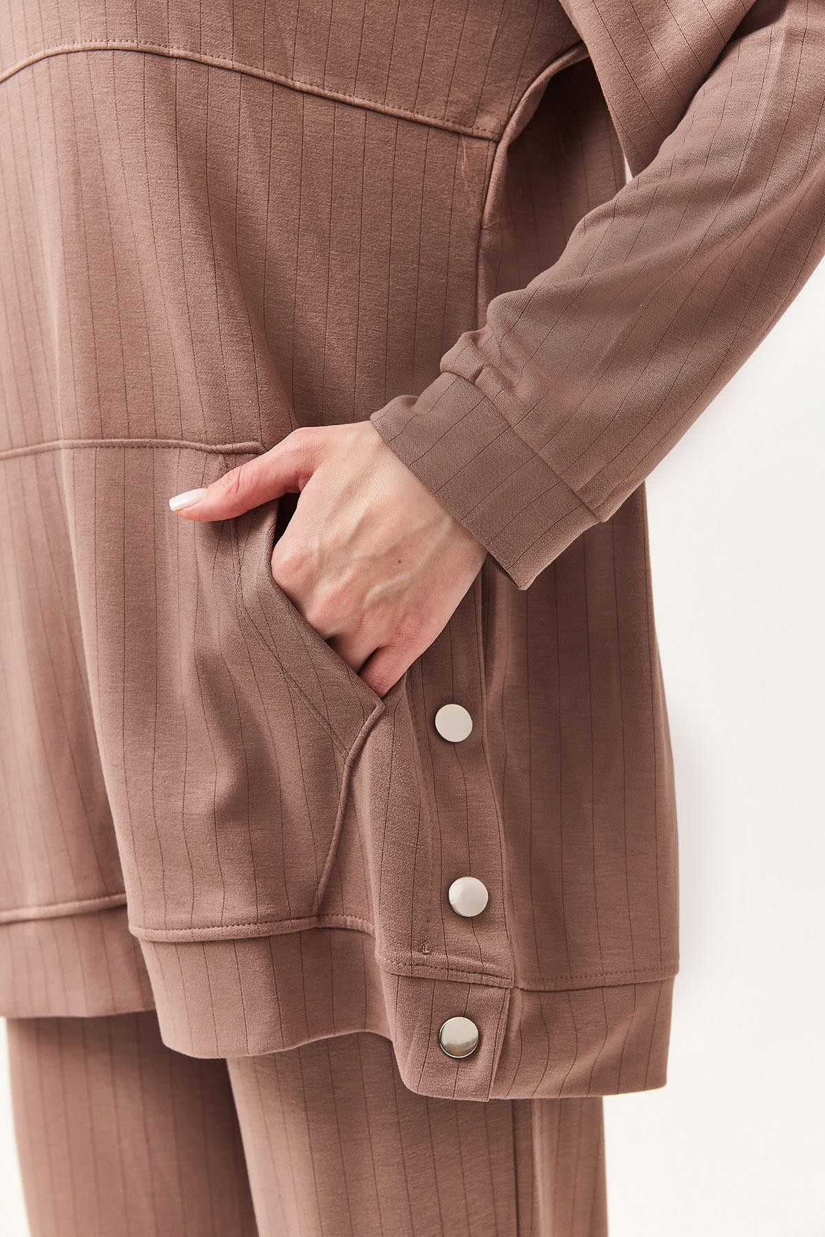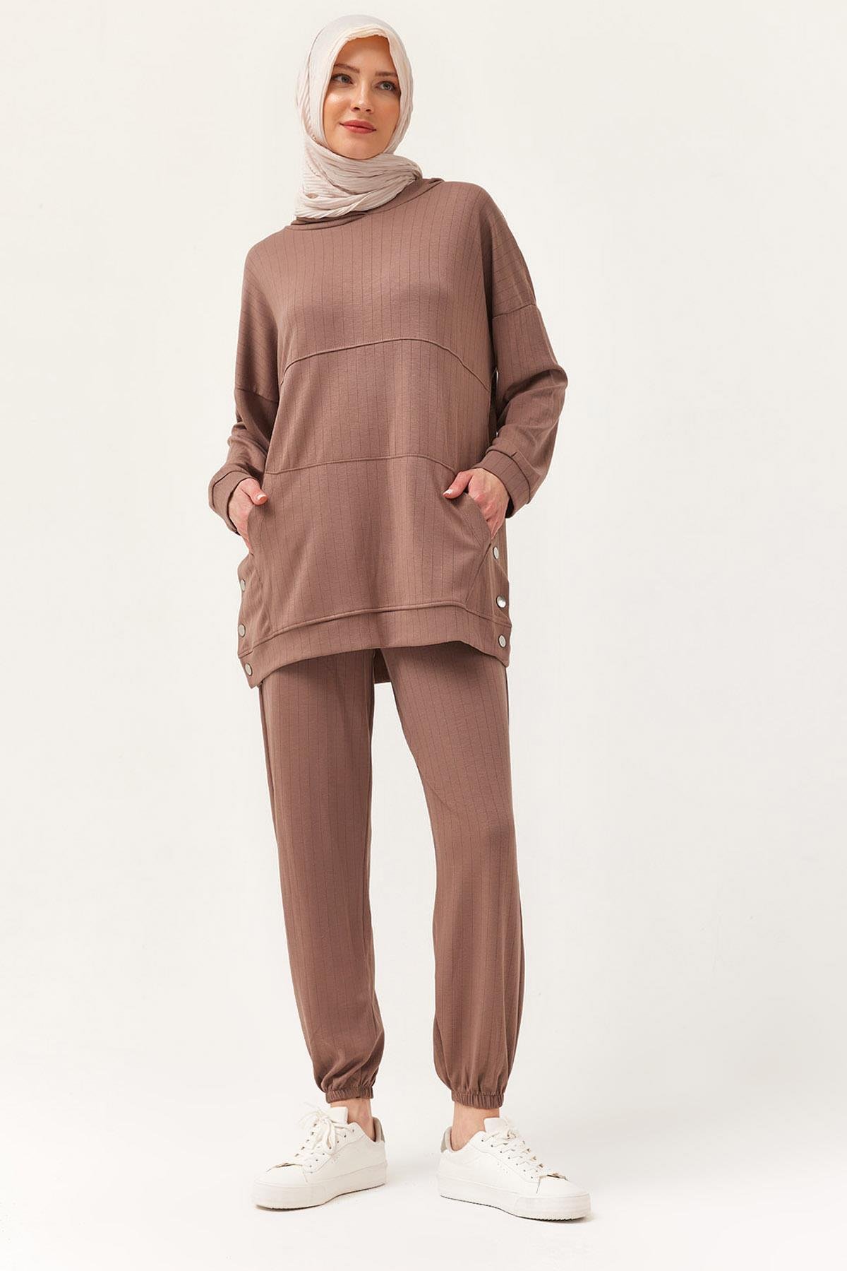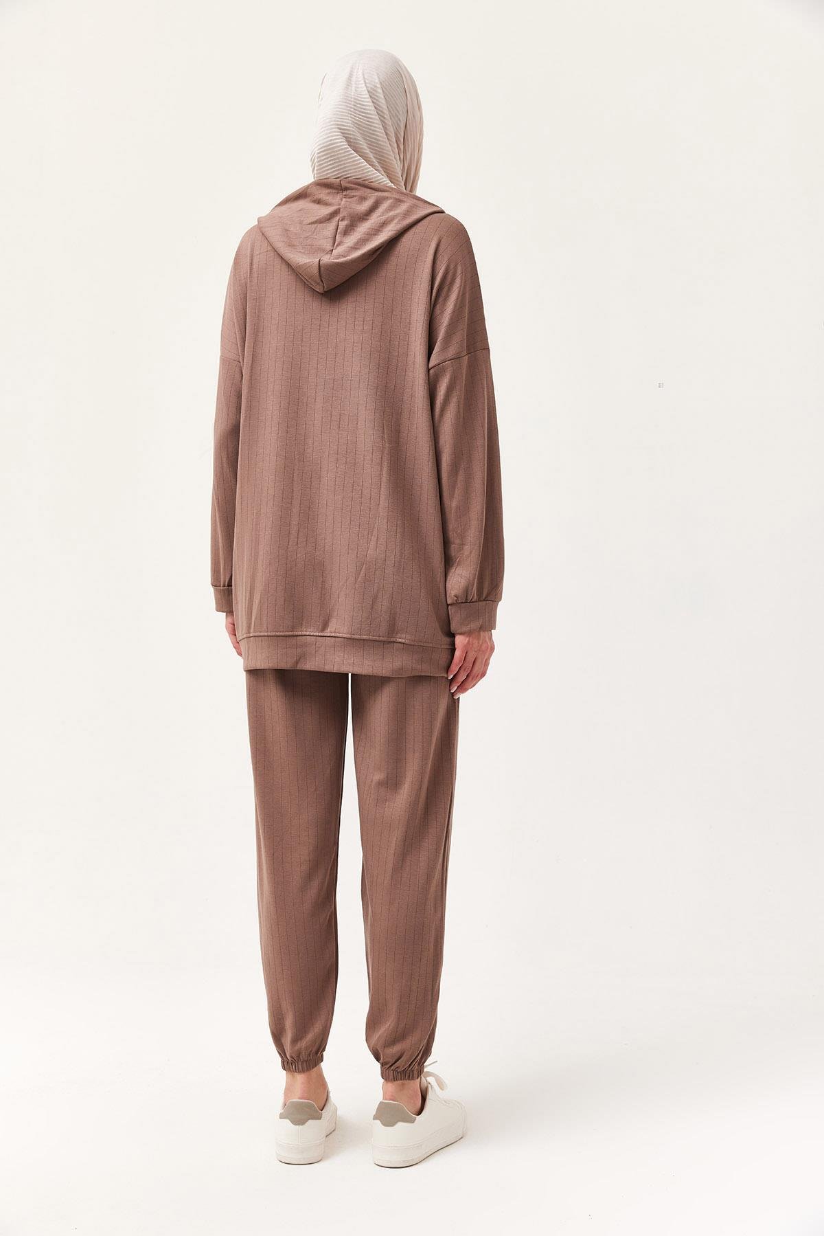 Çıtçıt Detay Kapüşonlu İkili Takım Kahverengi (250396TKMXKHV)