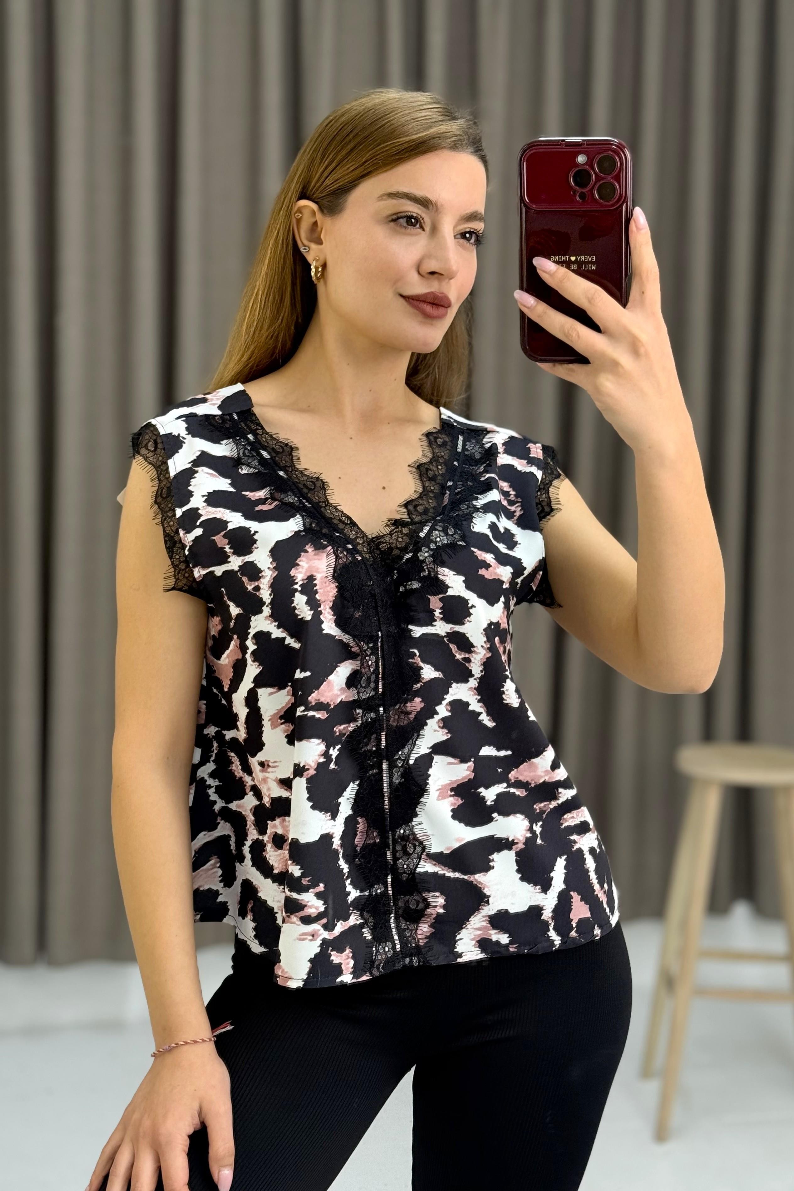 Dantel Detaylı V Yaka Bluz