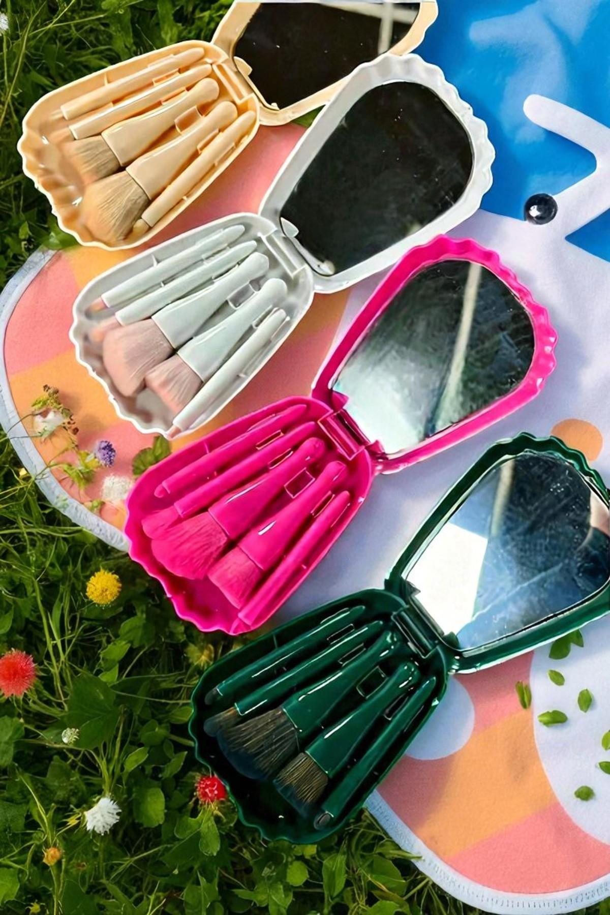 Deniz Kabuğu 5'li Makyaj Fırçası Ve Ayna